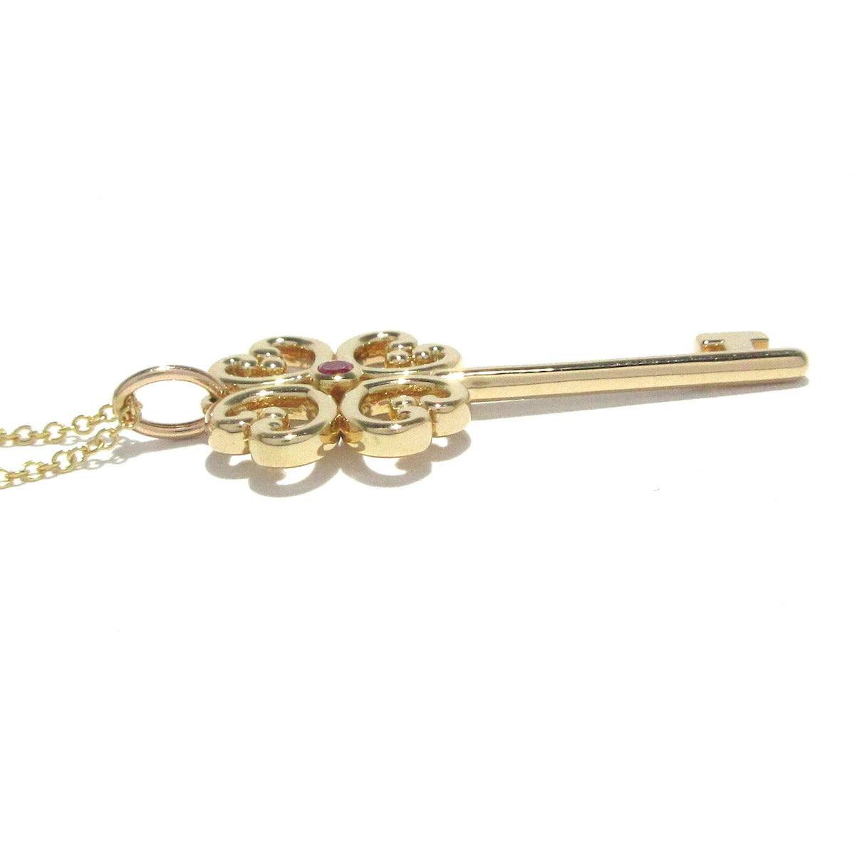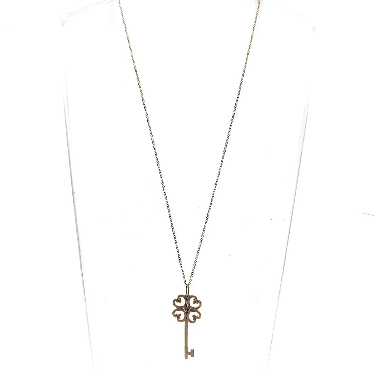 Unlock love with this stunning pre-owned Tiffany & Co. 18K rose gold pink sapphire Quatra heart key necklace. In excellent condition with only slight, barely noticeable scratches that have been re-polished to restore its shine. A perfect gift for someone special or a beautiful addition to your own jewelry collection.