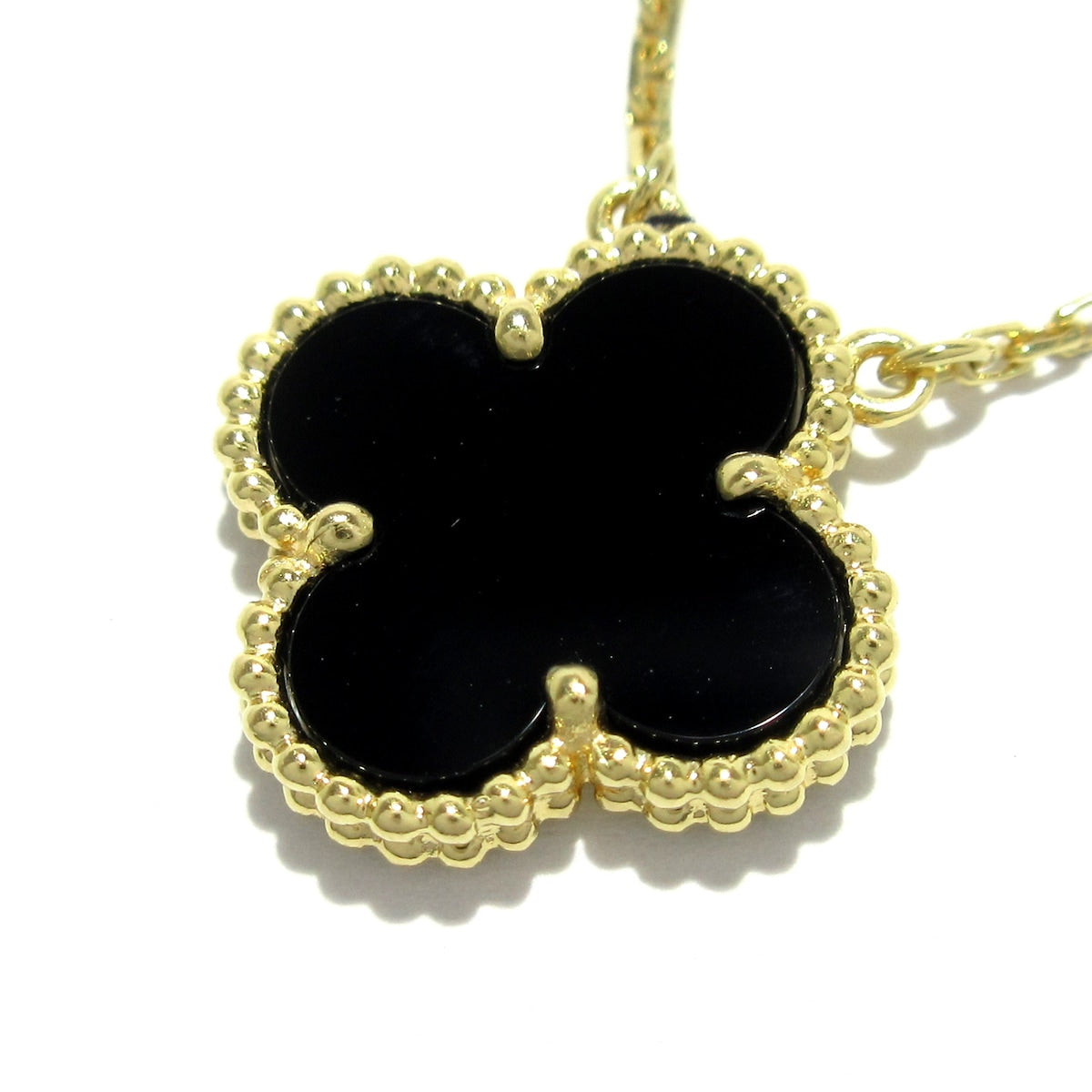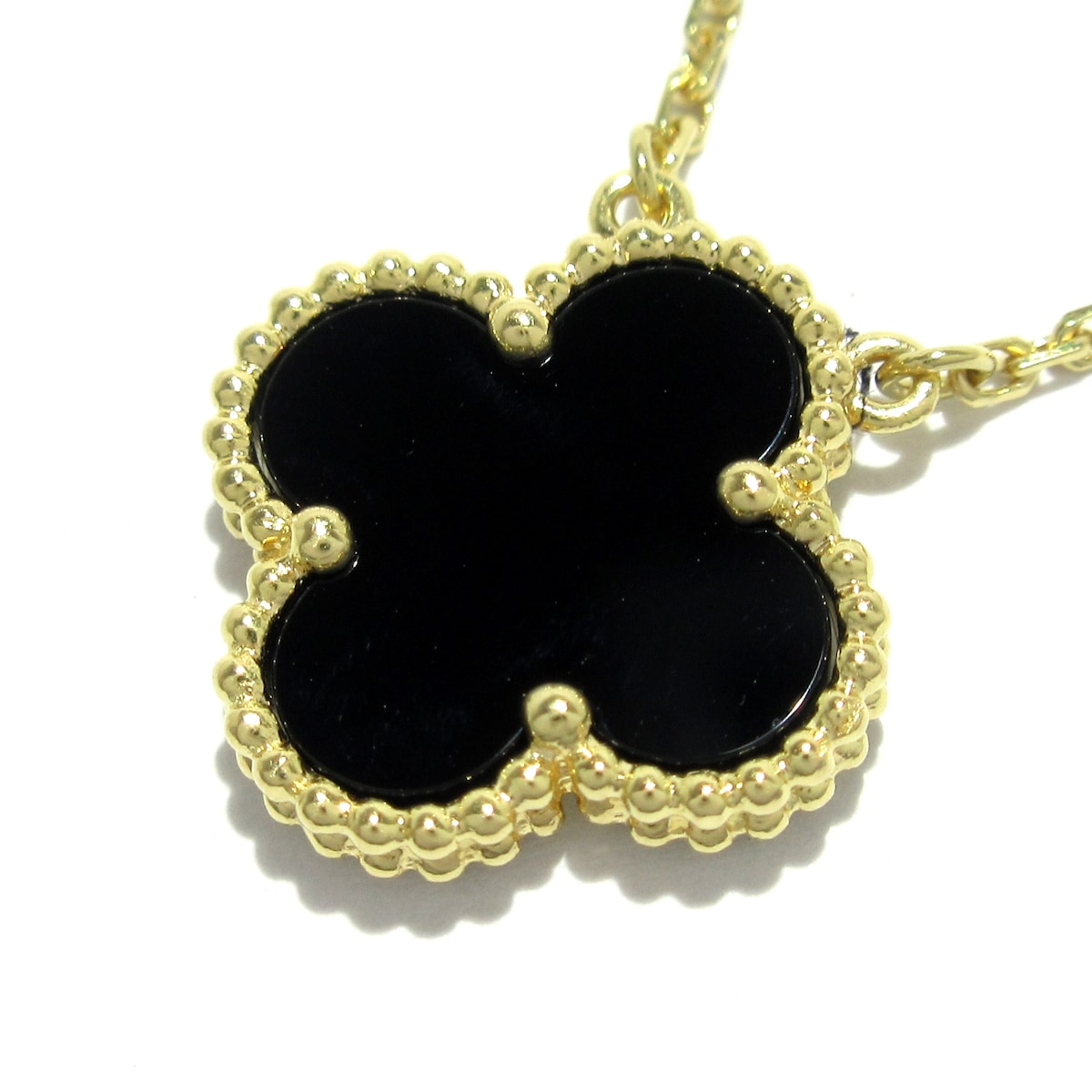 PRE-OWNED 18K Yellow Gold Onyx Vintage Alhambra Necklace