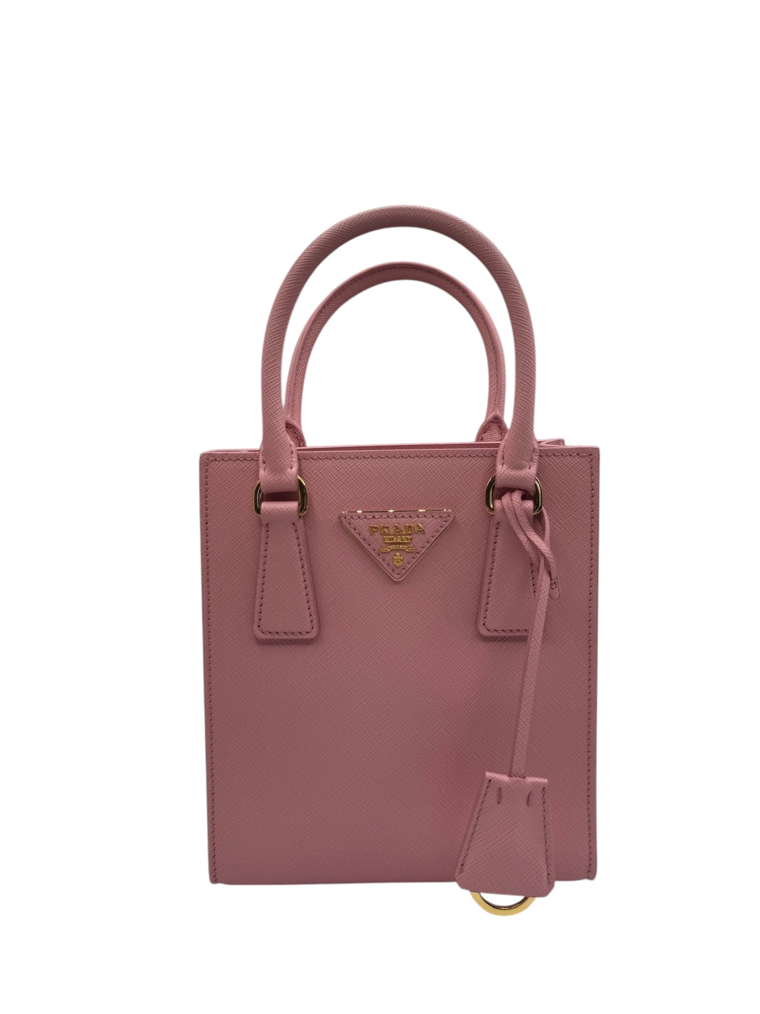 PRADA - Triangle Logo Tote Bag Pink Saffiano Leather Shoulder Bag
