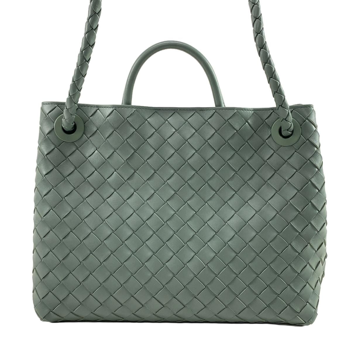 This pre-owned Bottega Veneta Andiamo Medium Light Green Nappa Leather Shoulder Bag is a stylish and practical choice for any fashion enthusiast.