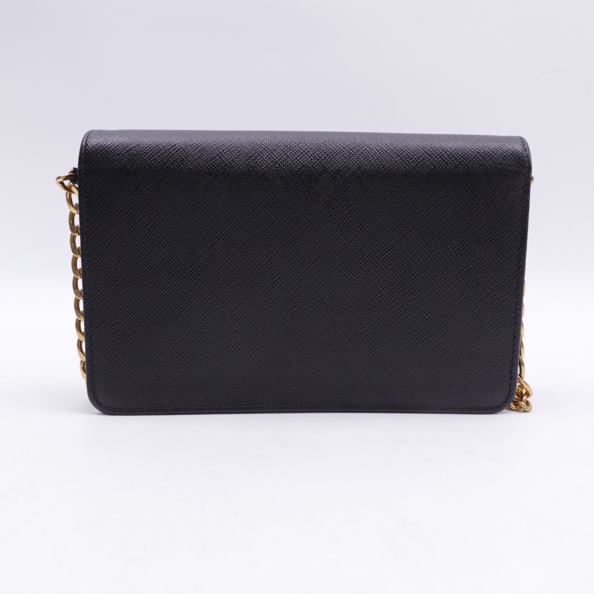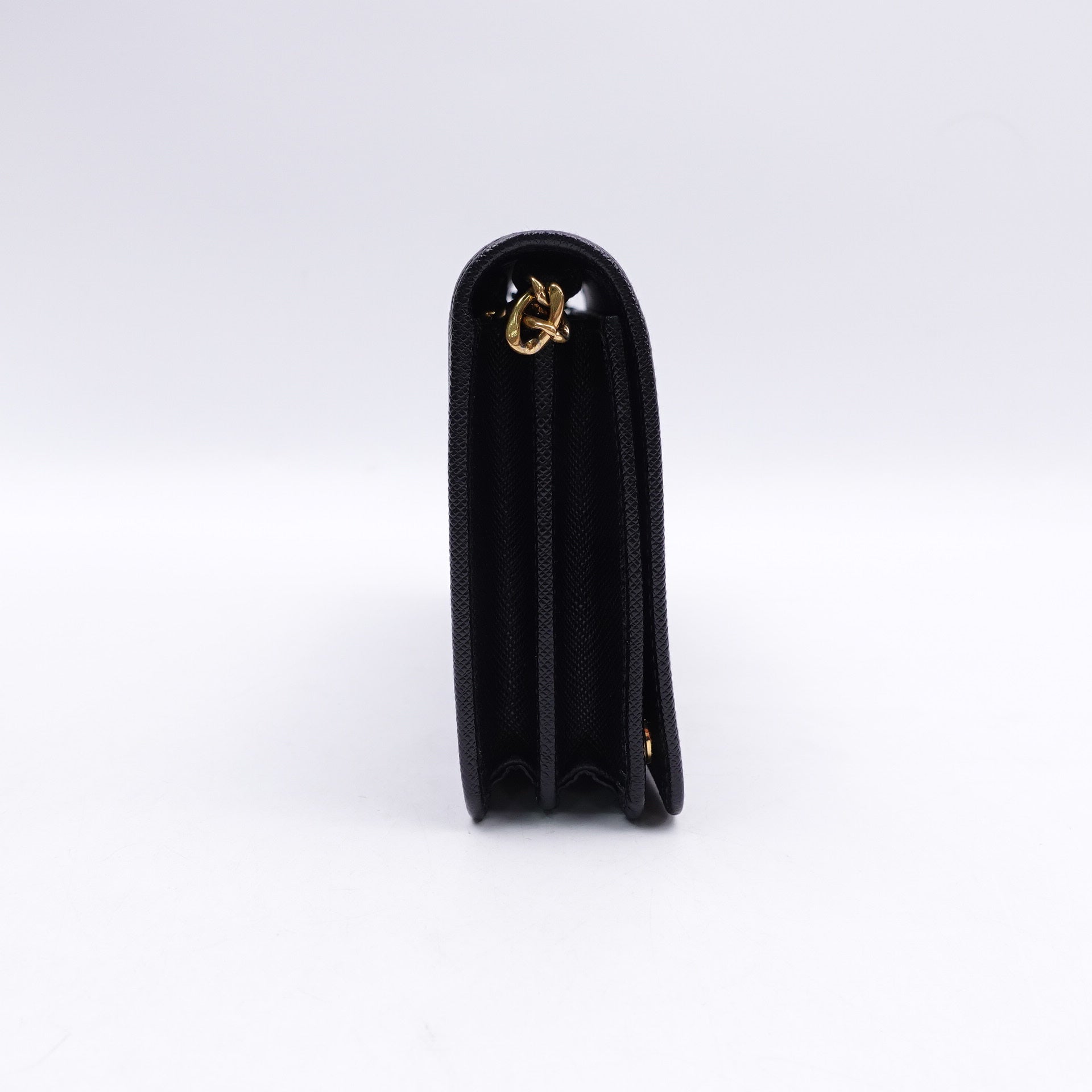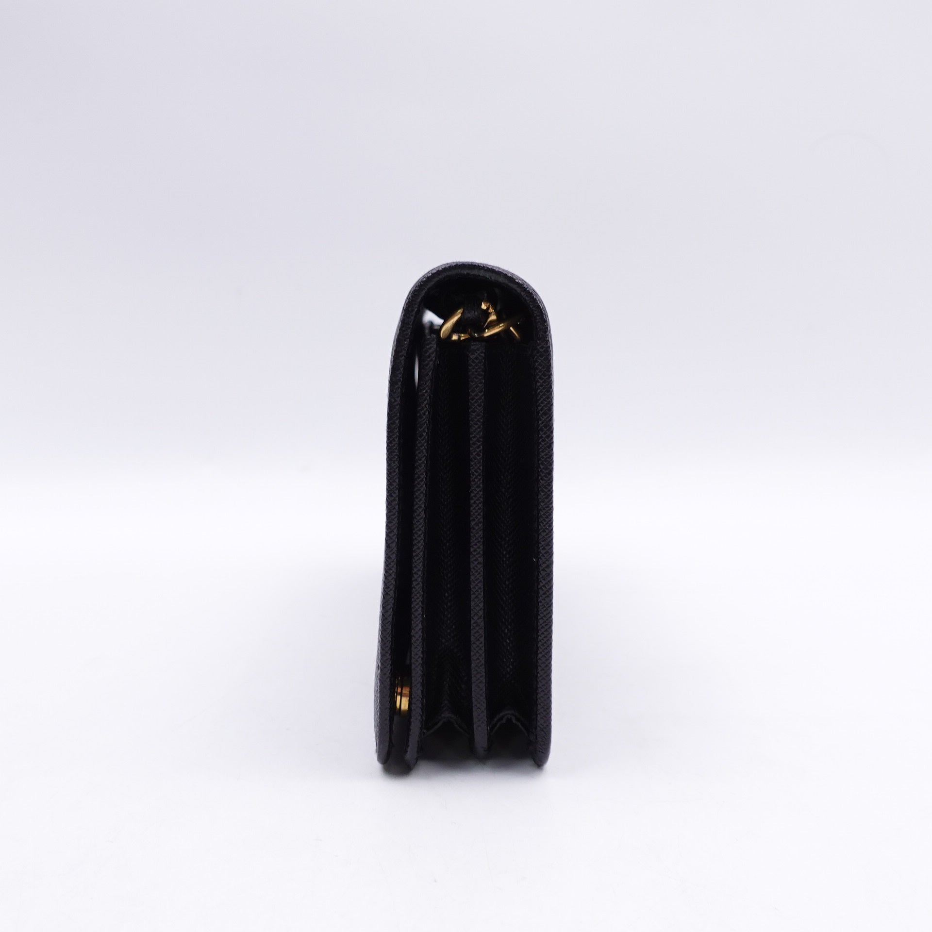 PRE-OWNED Black Saffiano Metal Wallet Crossbody Bag