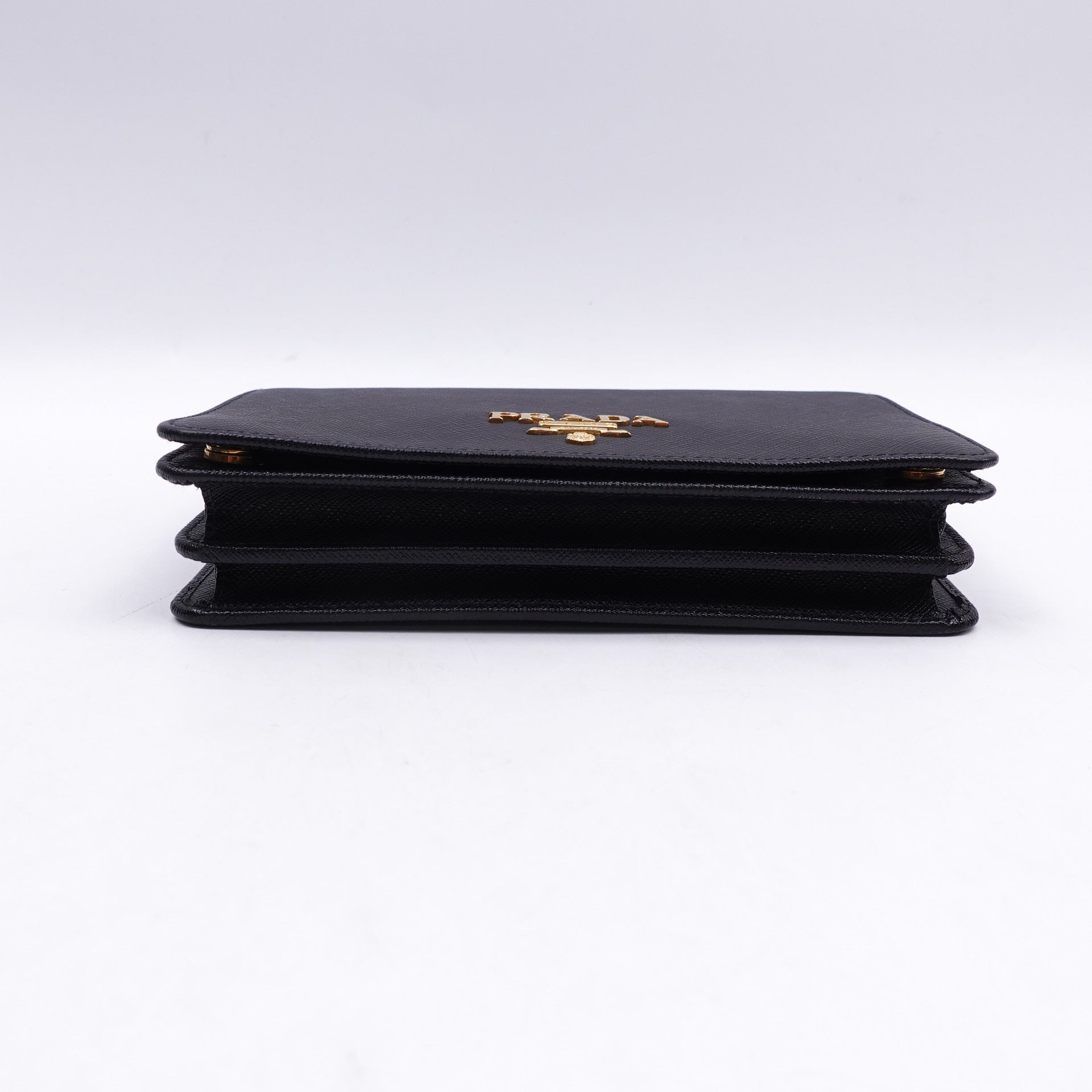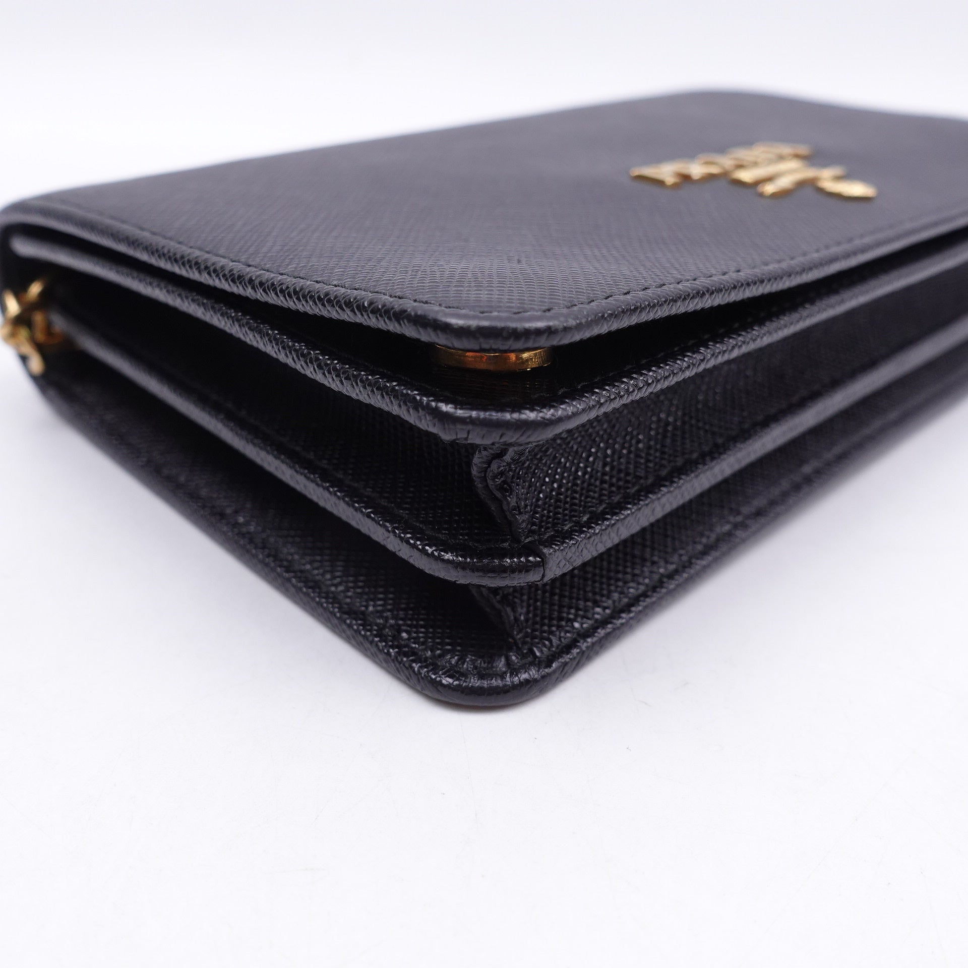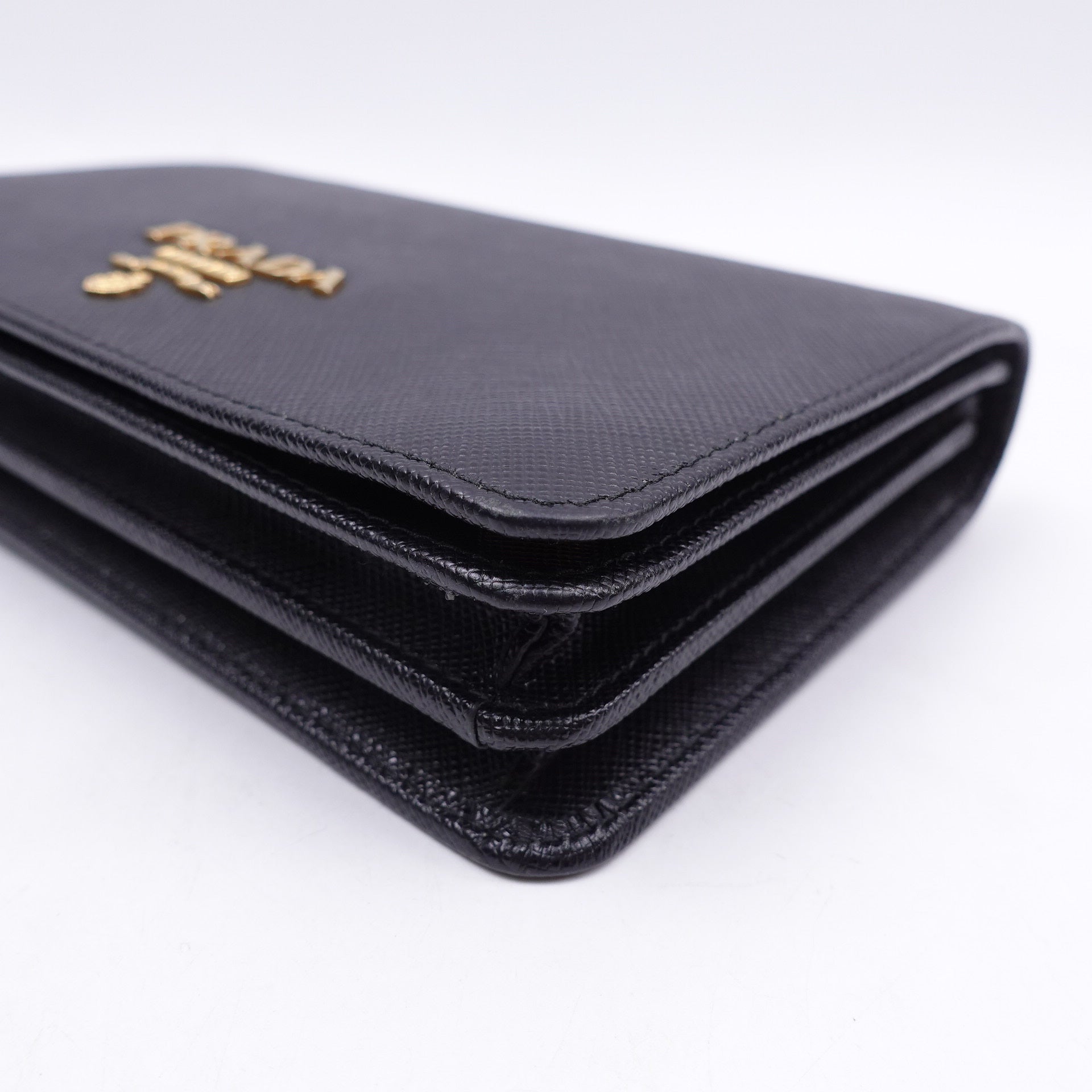 PRE-OWNED Black Saffiano Metal Wallet Crossbody Bag