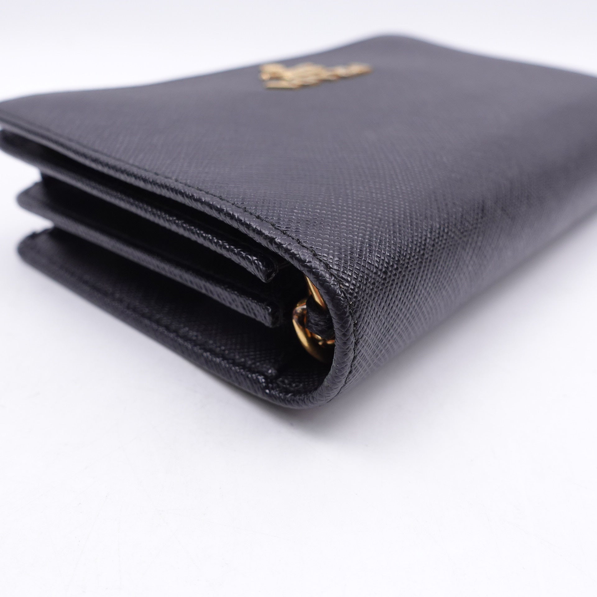 Add the PRADA Black Saffiano Metal Wallet to your collection and enjoy the perfect blend of style and sophistication.