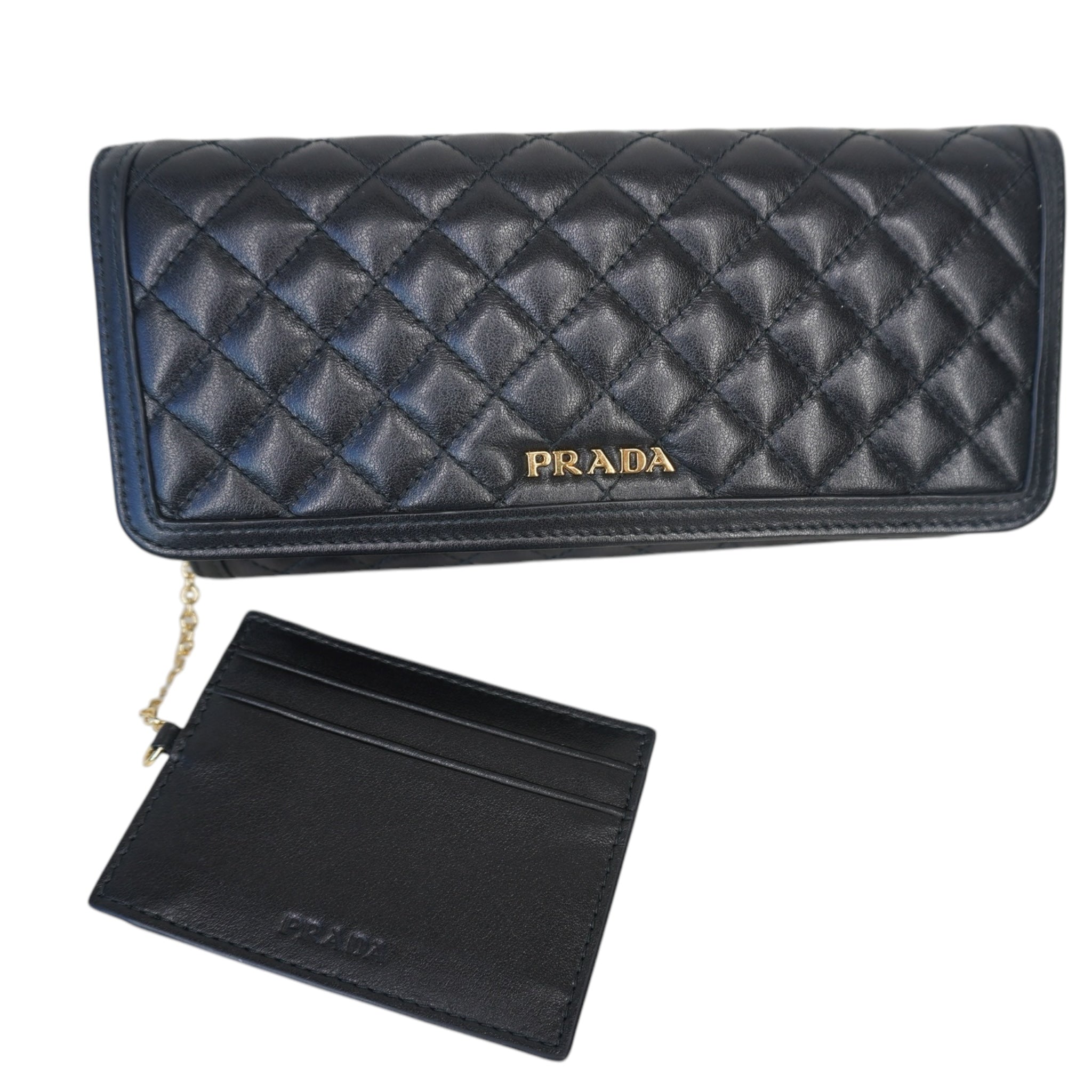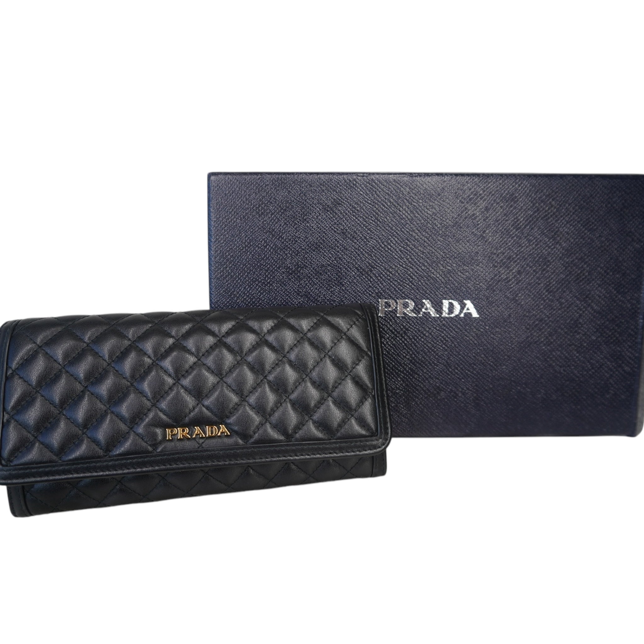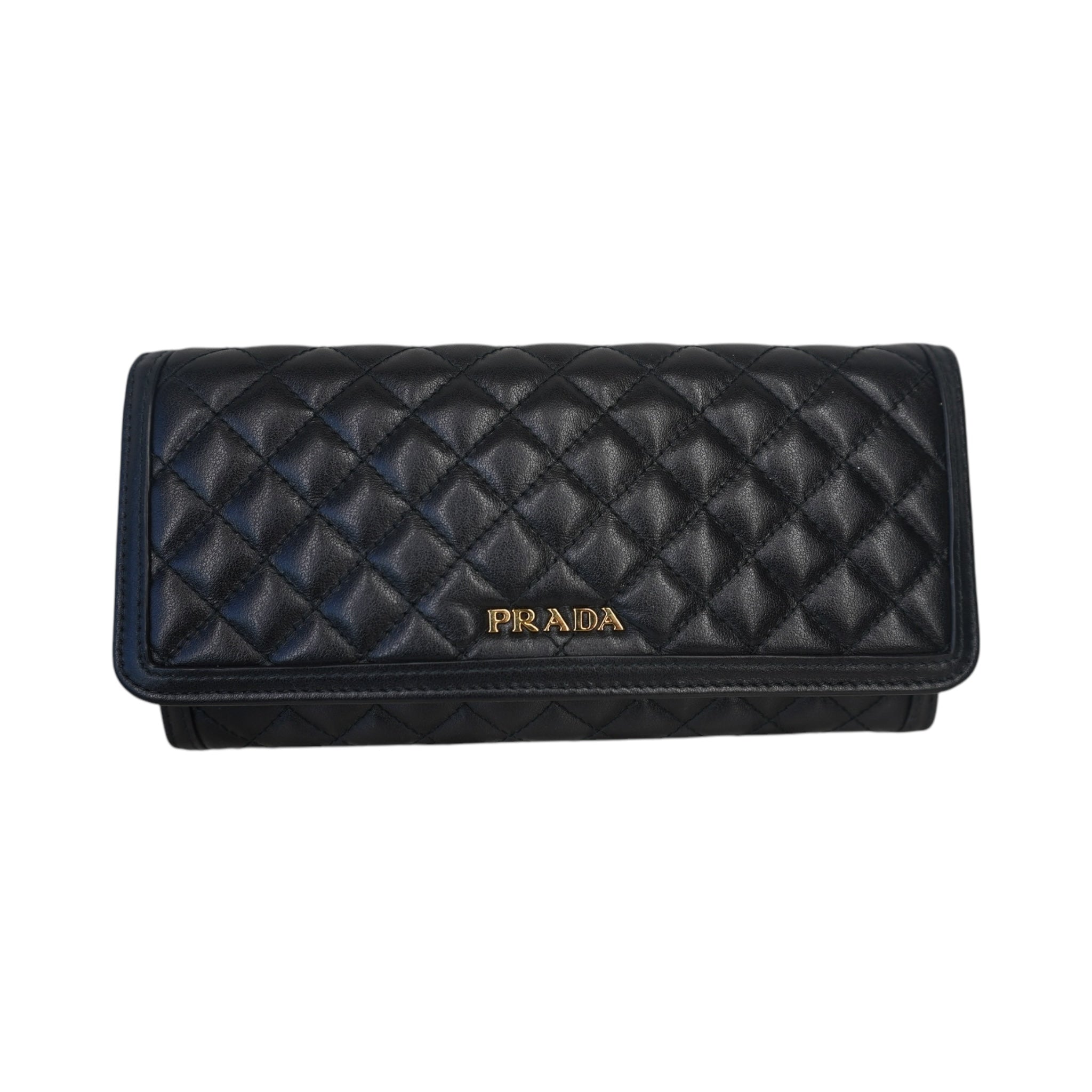 PRADA - Black Tessuto Quilted Continental Flap Wallet