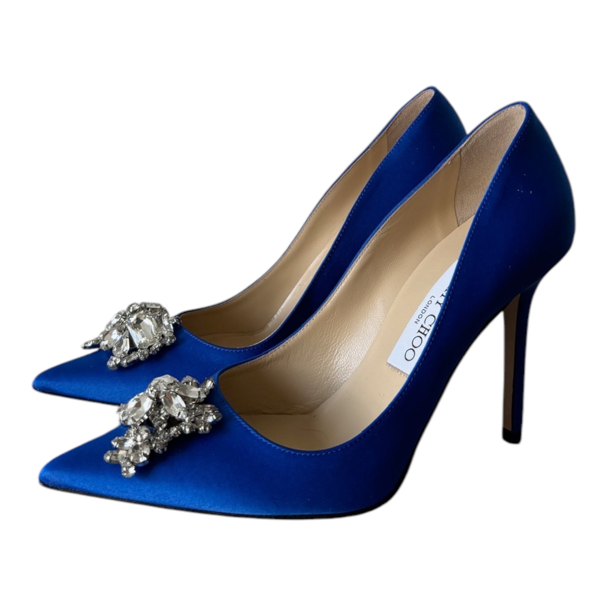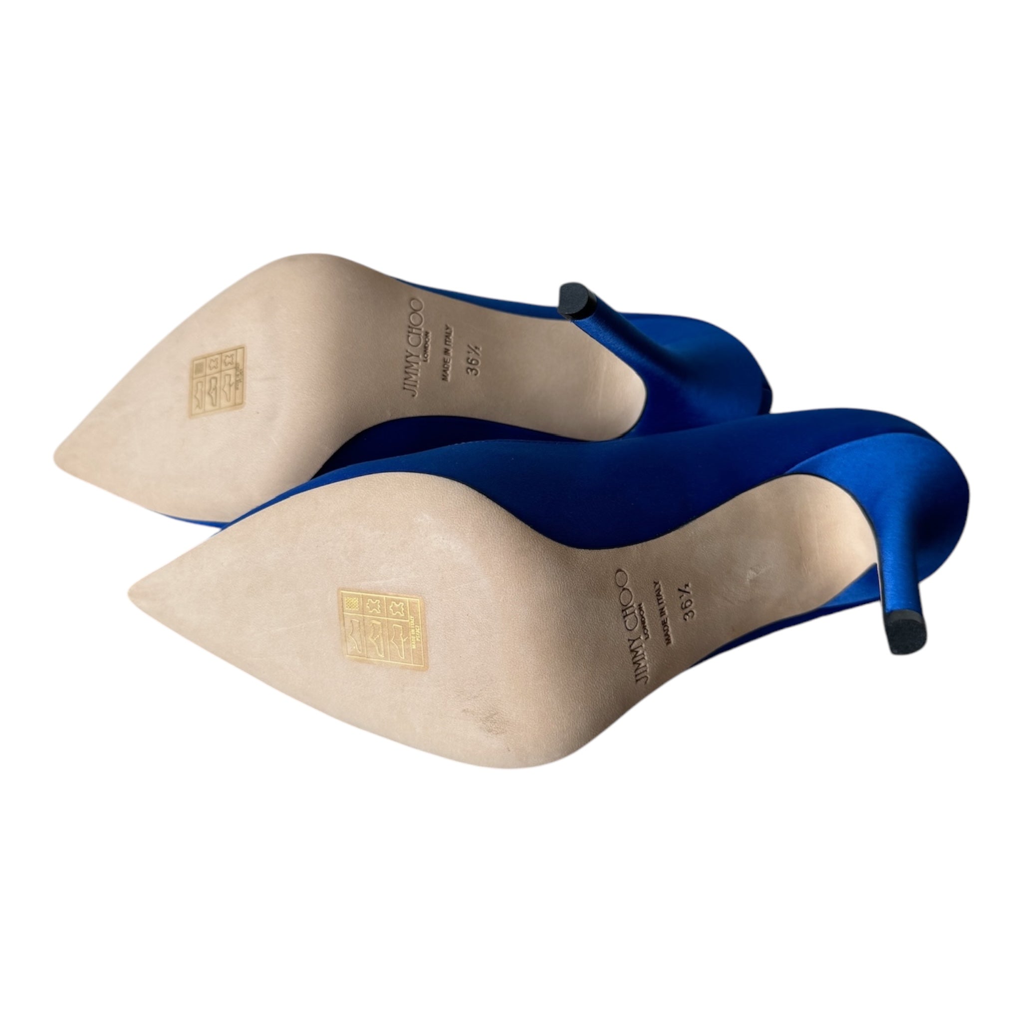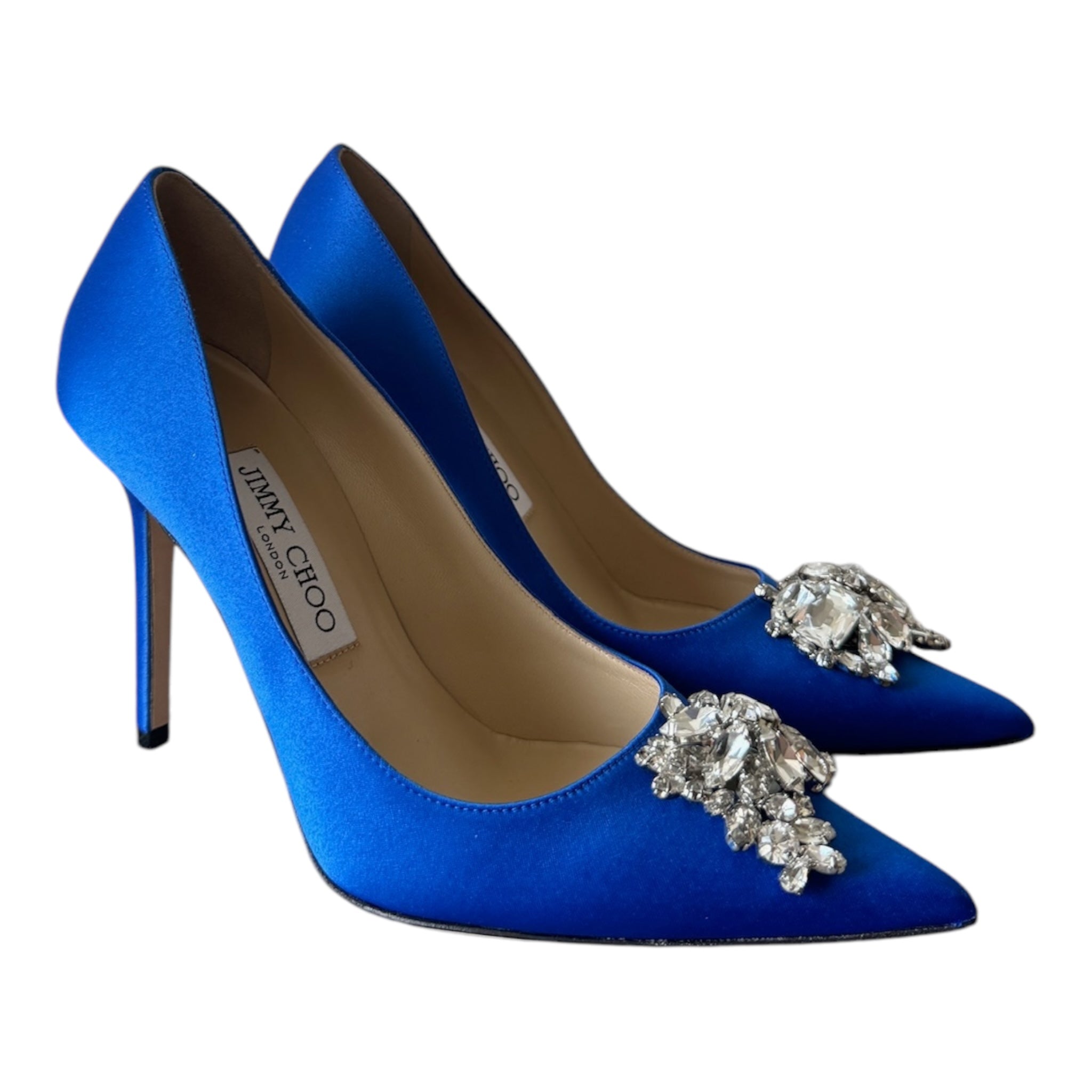 Elevate any outfit with these pre-owned Jimmy Choo Blue Satin Crystal Embellished Manda Pumps. The stunning blue satin material and crystal embellishments add a touch of glamour and elegance. Perfect for any special occasion, these pumps will make you feel confident and stylish. Limited stock available!