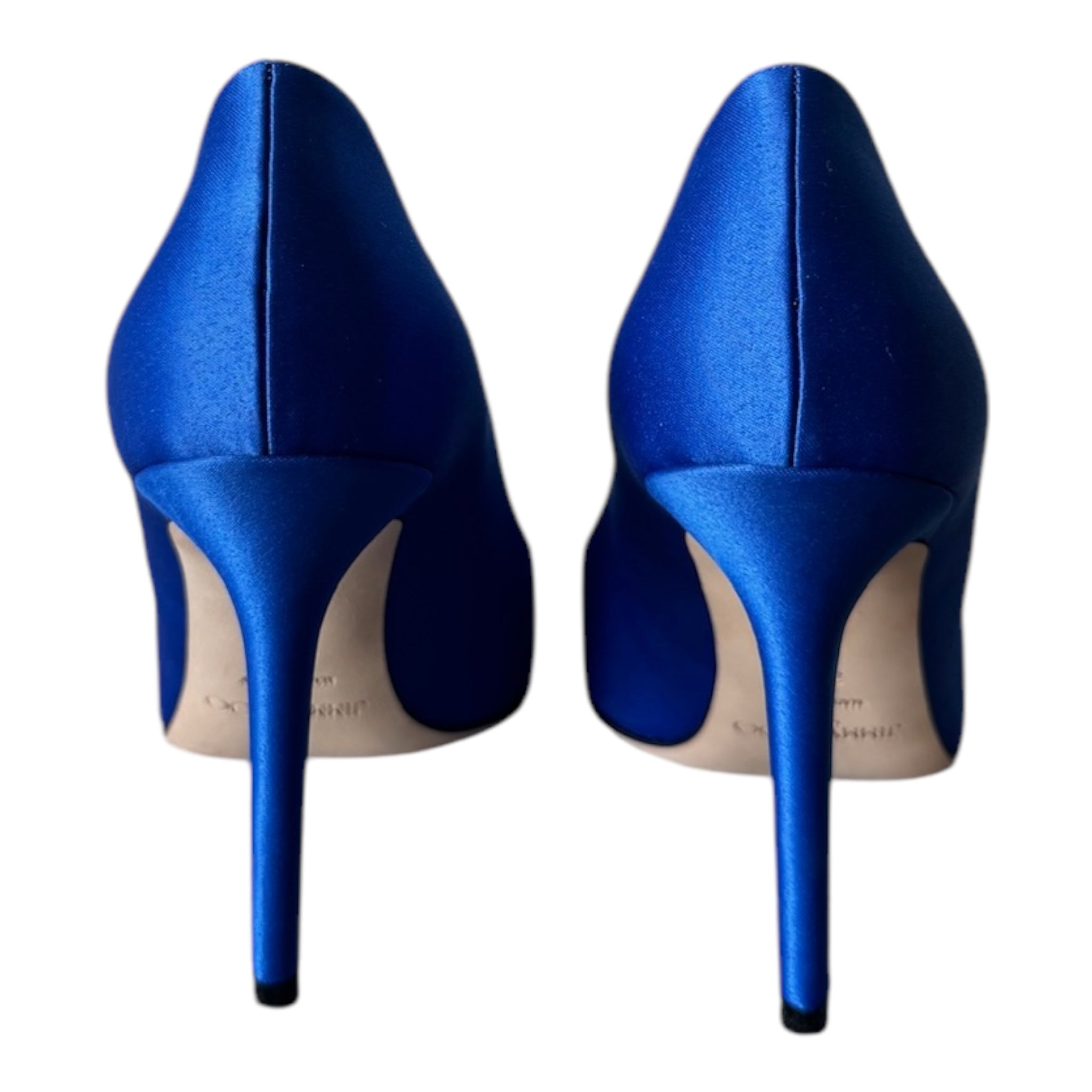 PRE-OWNED Blue Satin Crystal Embellished Manda Pumps