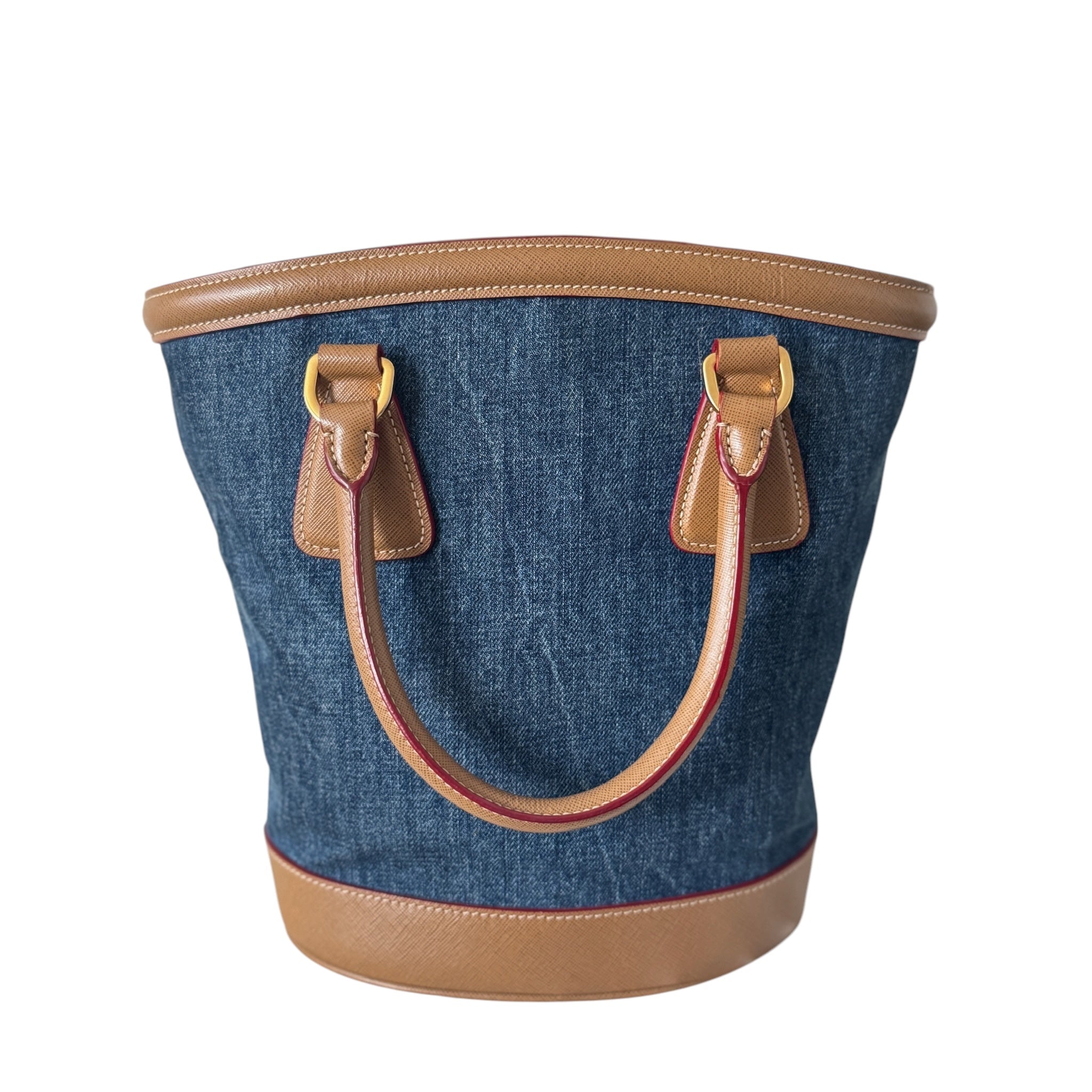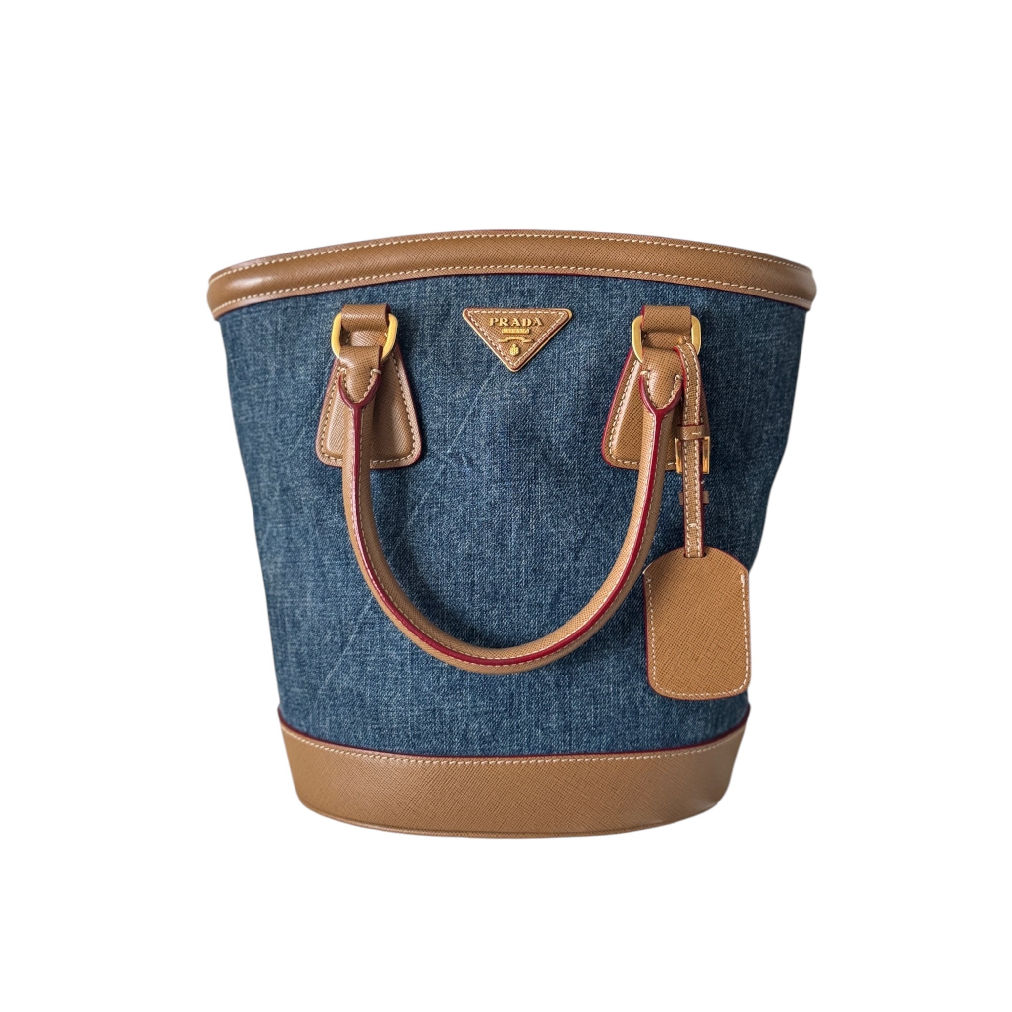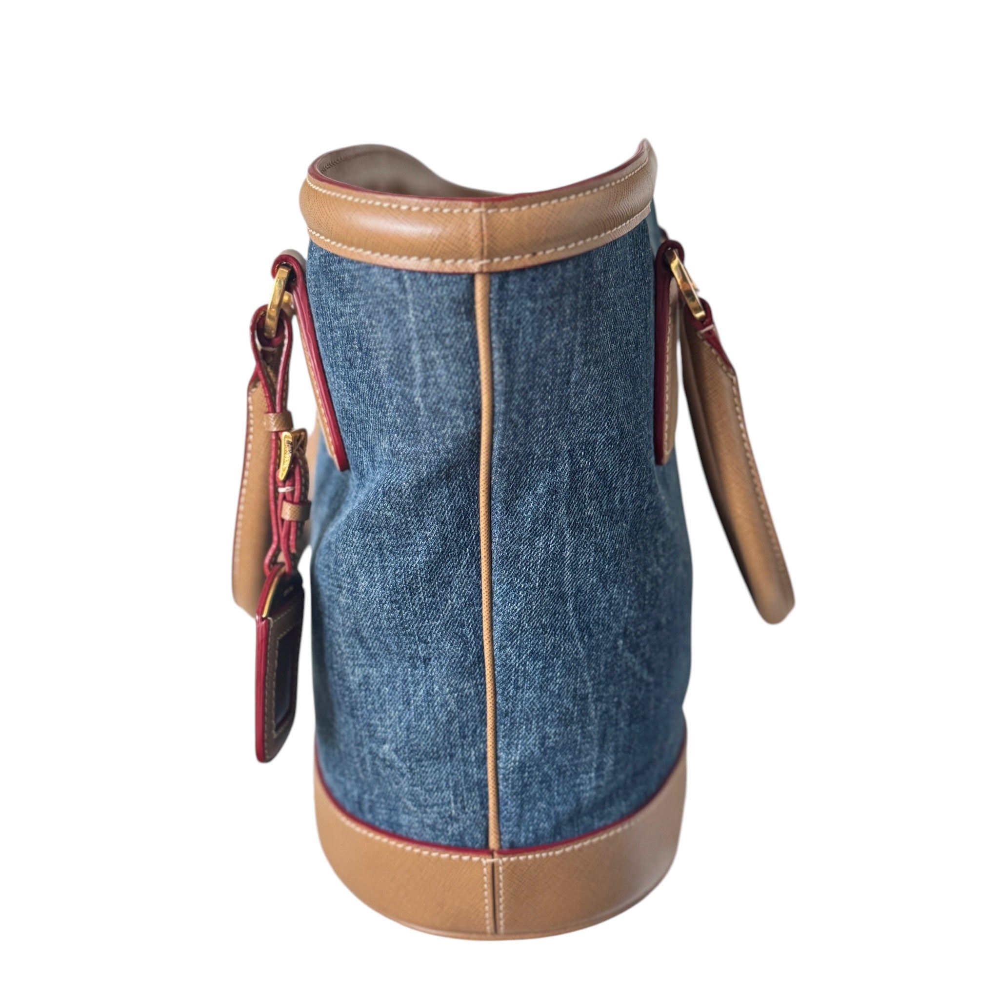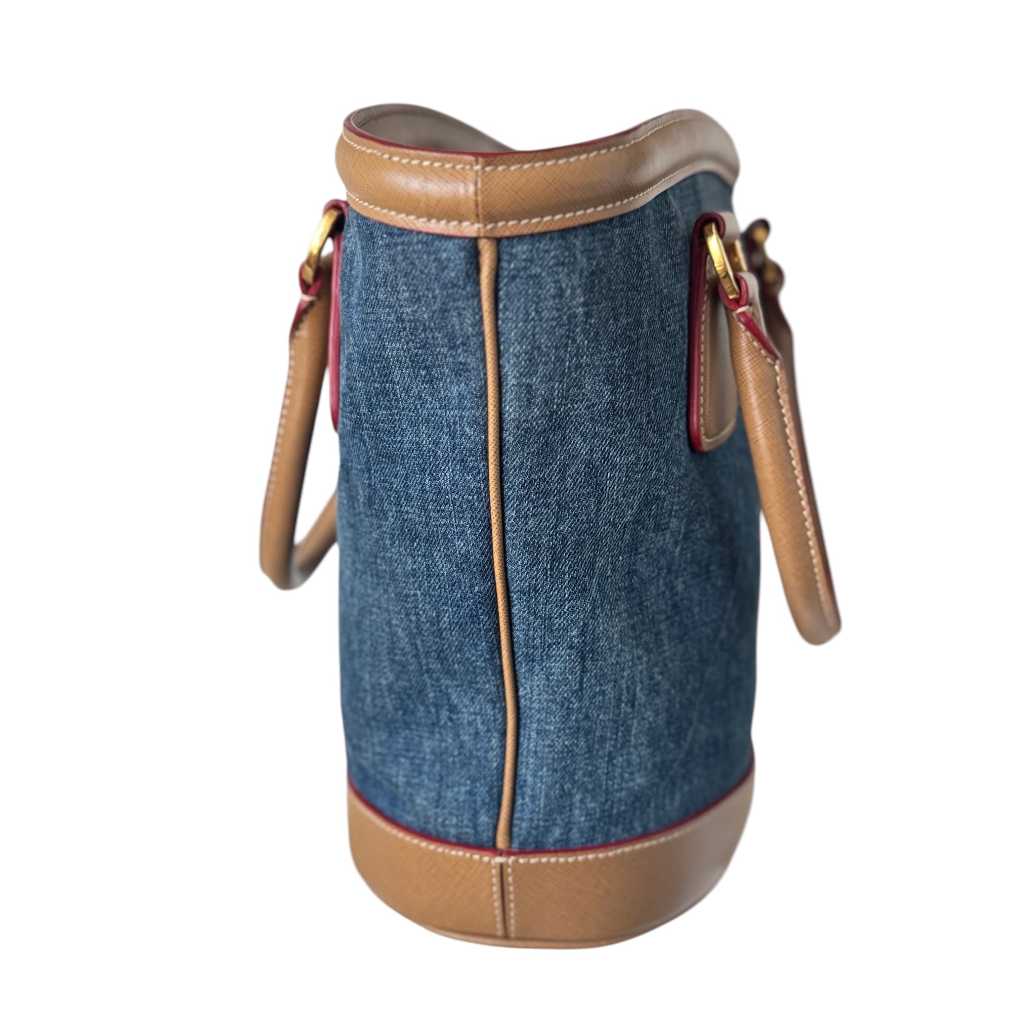 Elevate your accessory game with the PRADA Brown & Denim Tote Bag, where style meets practicality.