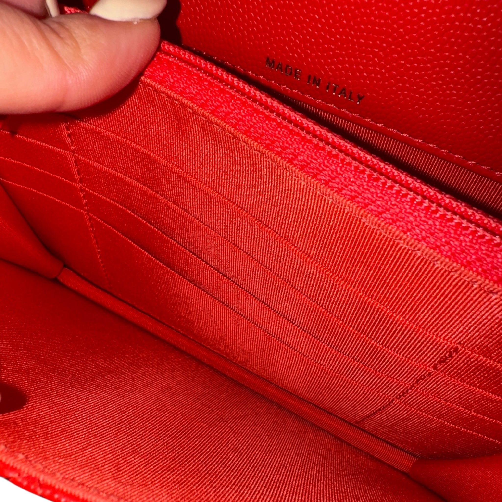 This elegant bag combines functionality with style. The dark red color exudes sophistication, perfect for any occasion. The quilted design adds a touch of luxury, while the chain strap offers versatility for different settings.