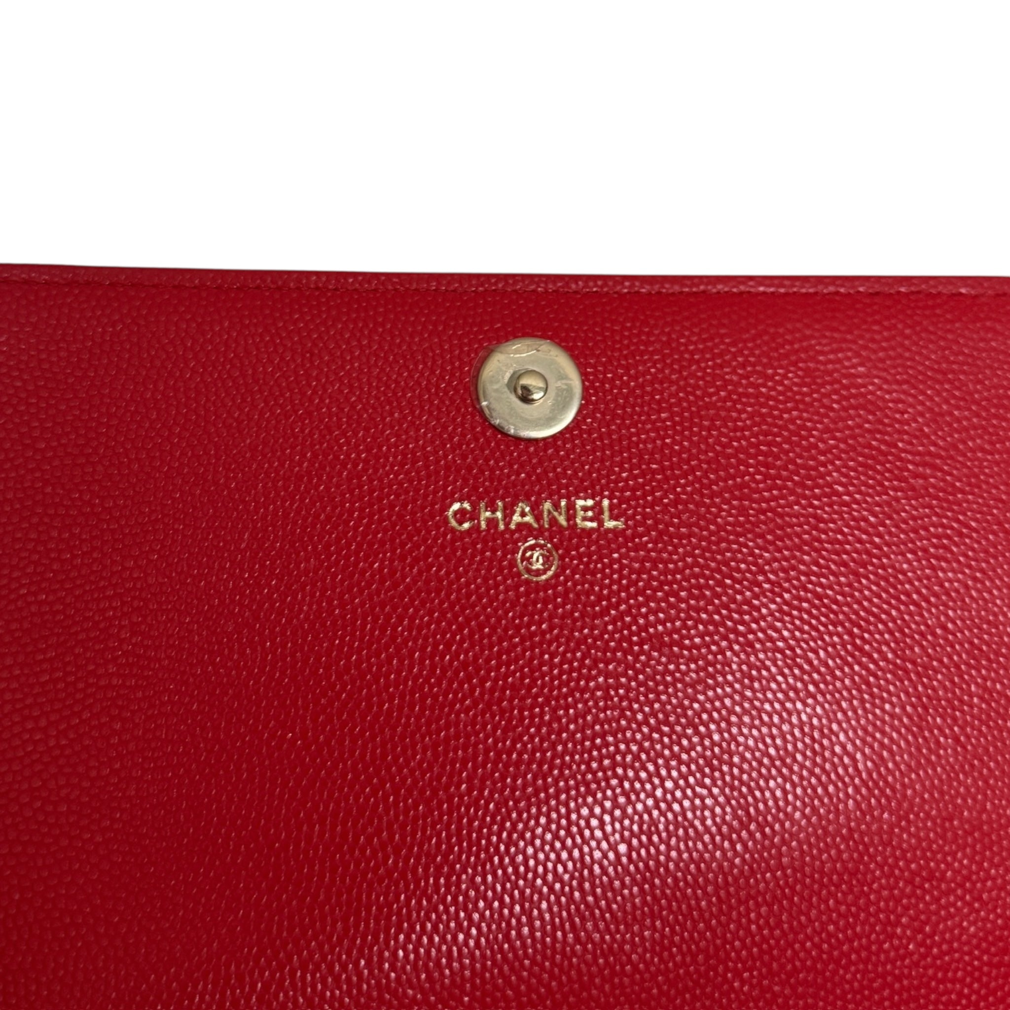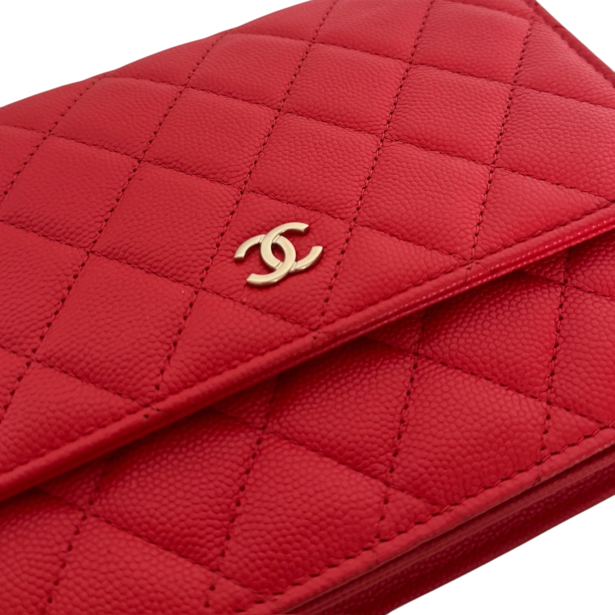 CHANEL Caviar Quilted Square Wallet On Chain WOC Dark Red Shoulder Bag