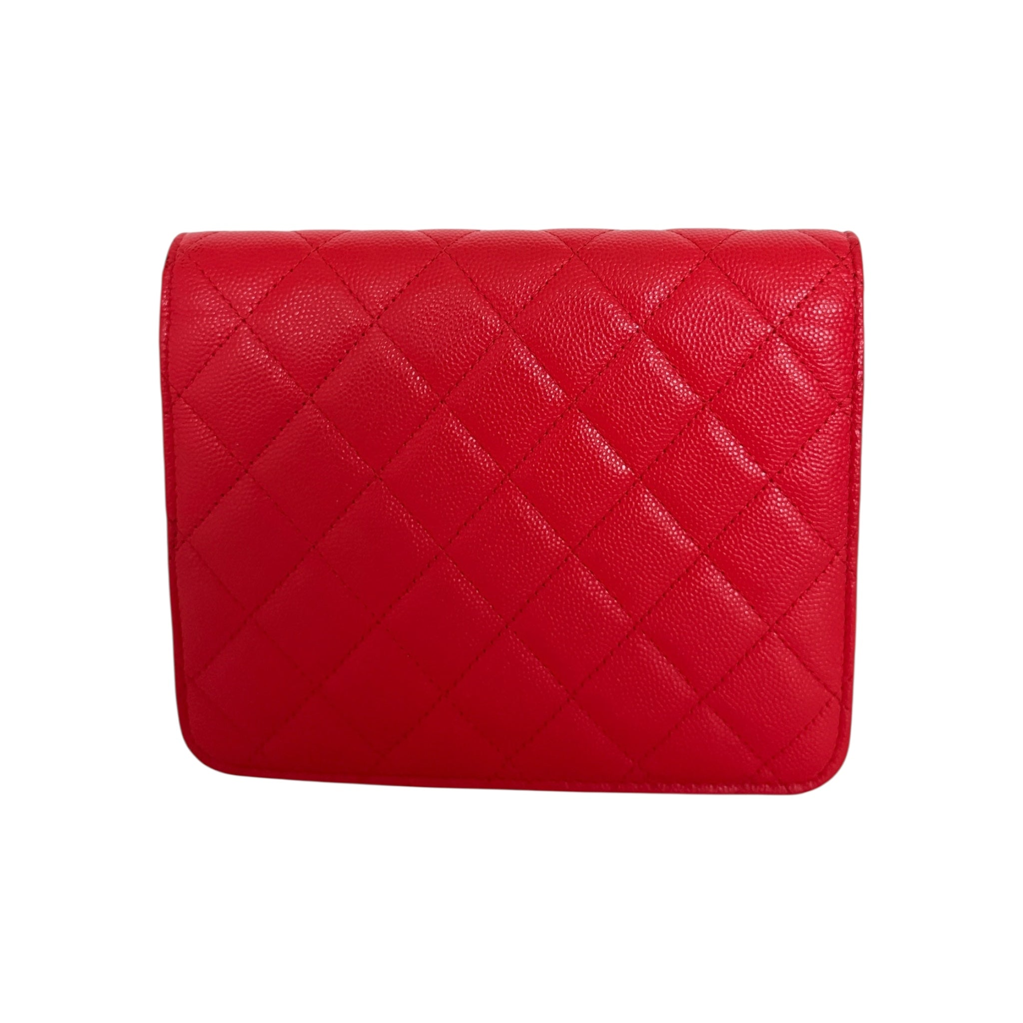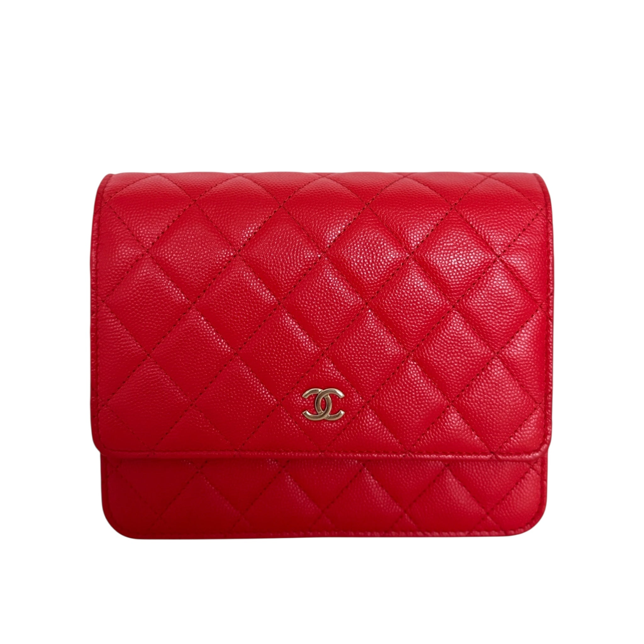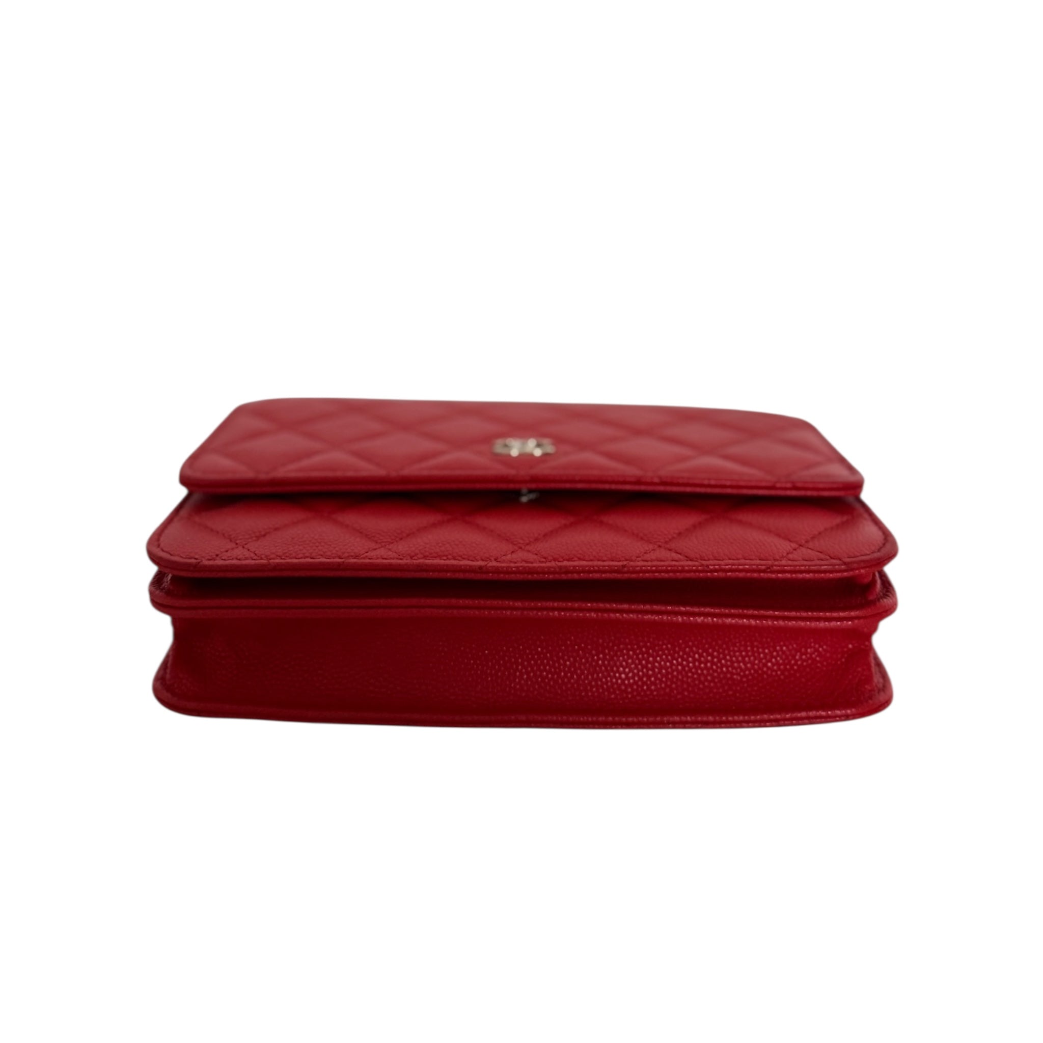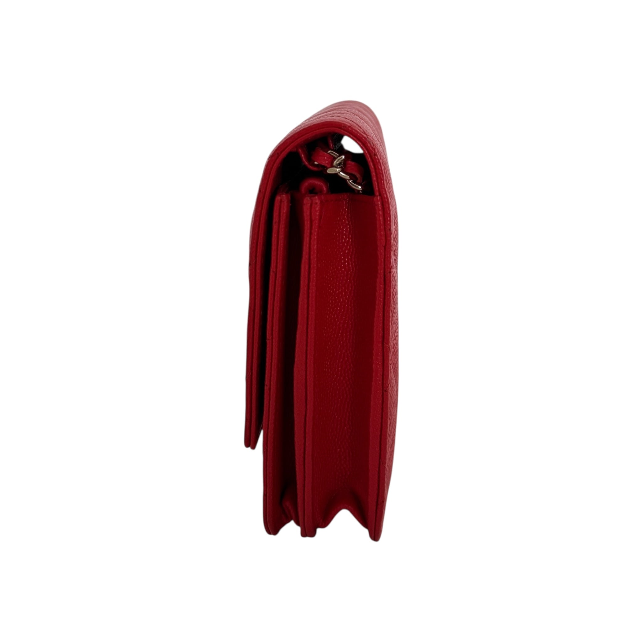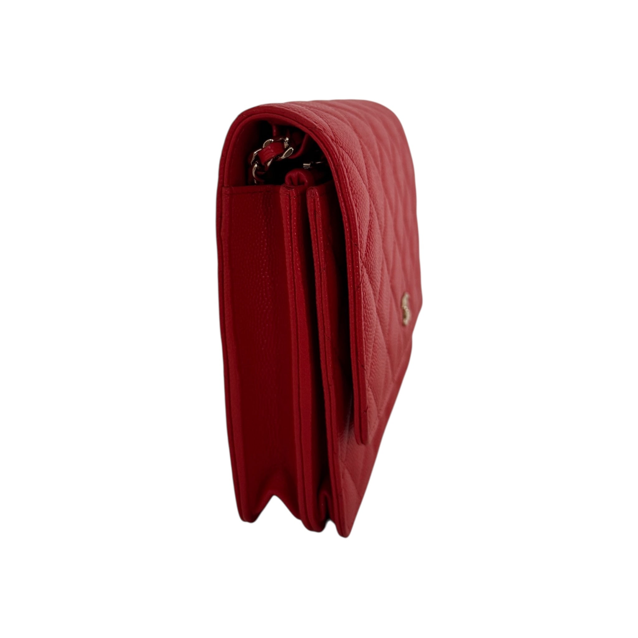 PRE-OWNED CC Caviar Quilted Square Wallet On Chain WOC Dark Red Shoulder Bag