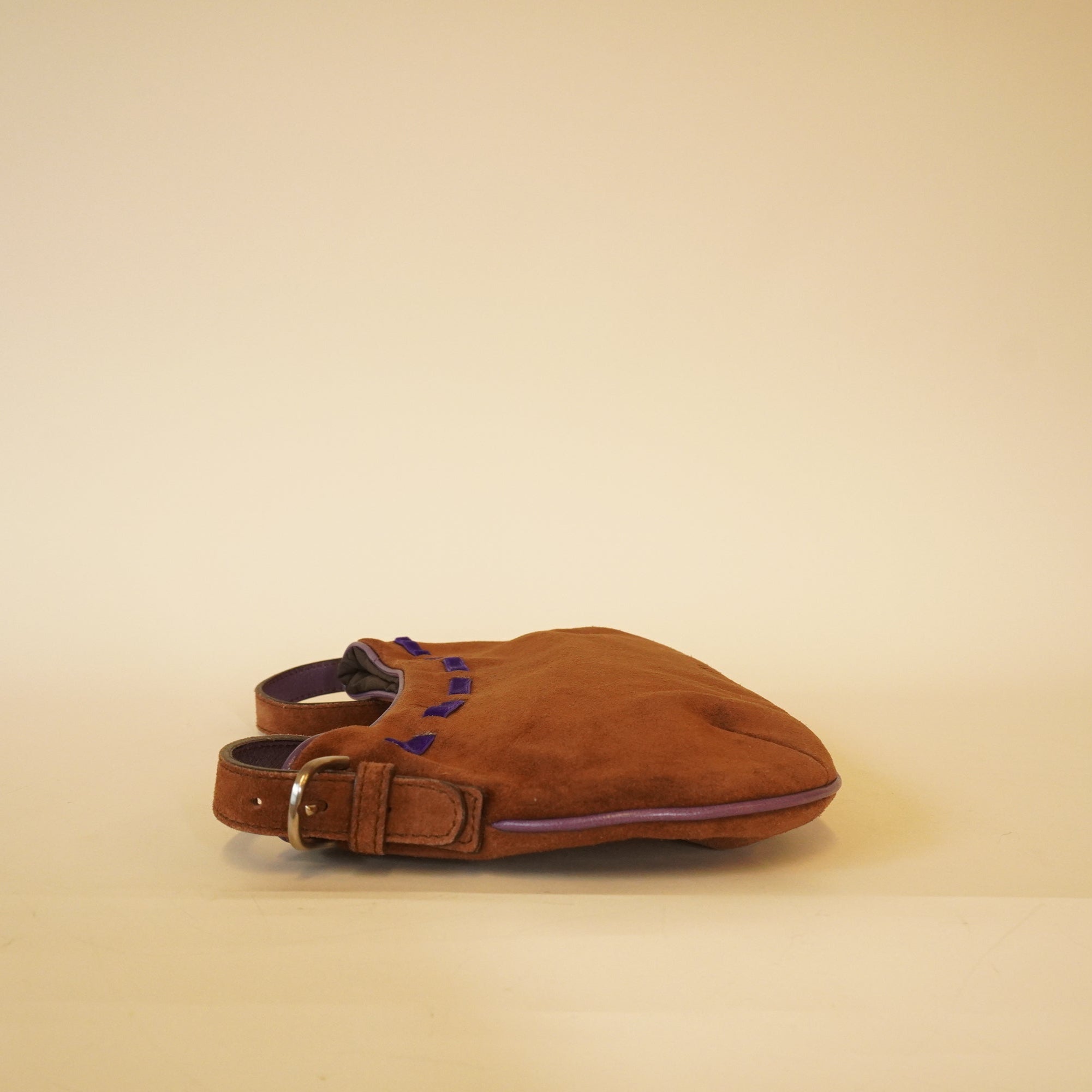 PRE-OWNED Dark Brown Purple Suede Leather Velour Handbag