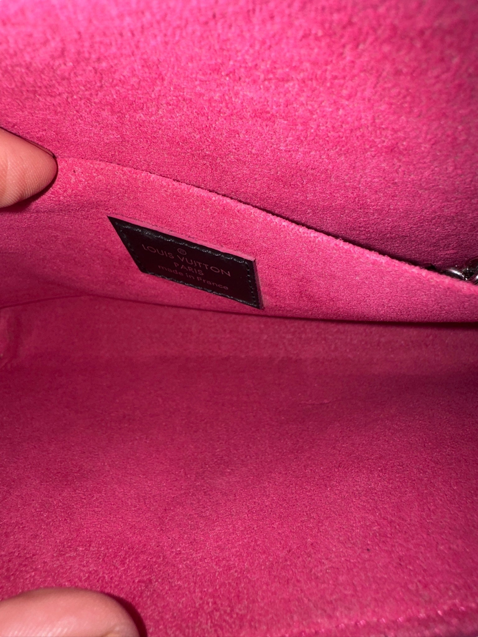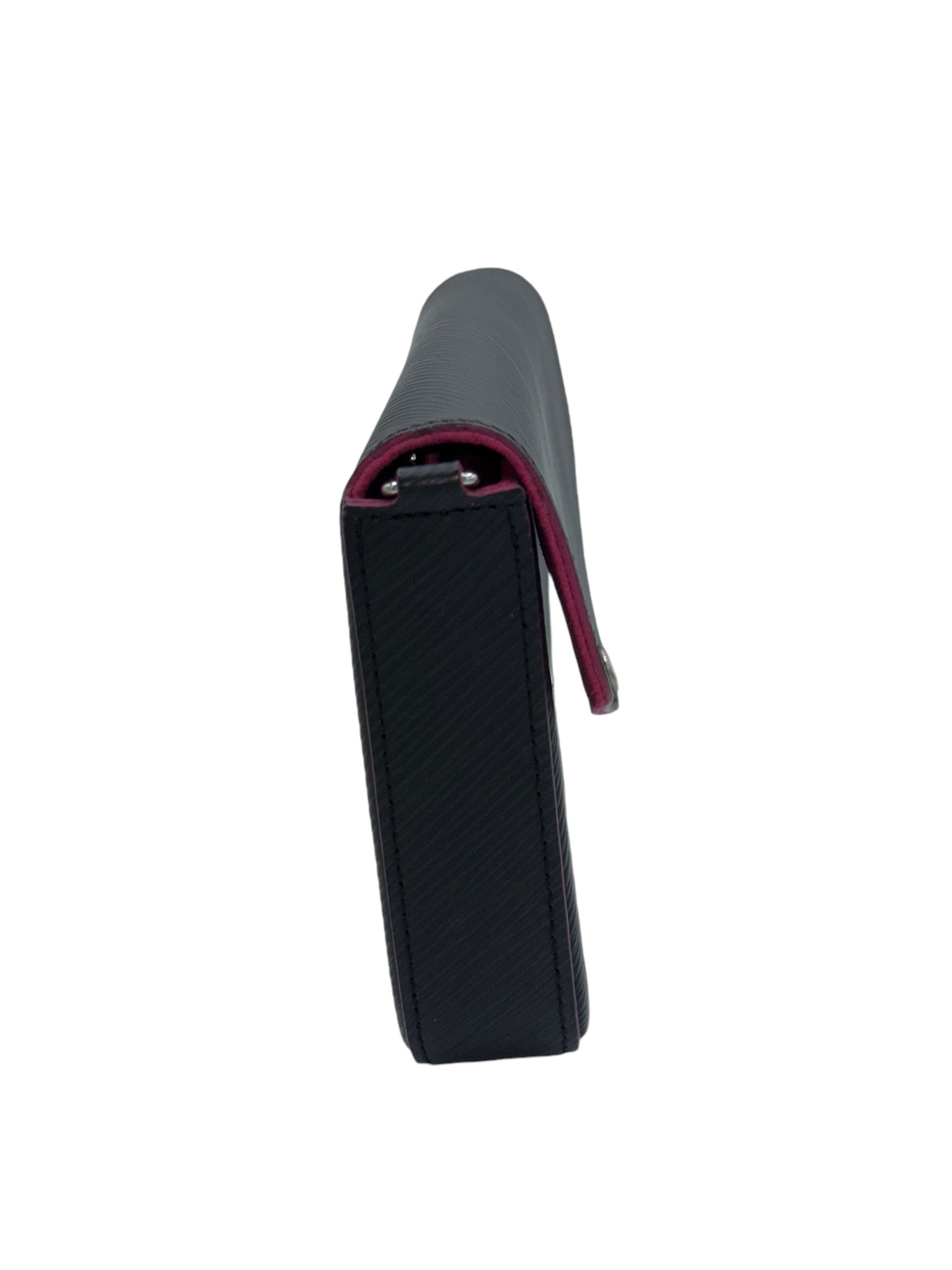 This pre-owned Louis Vuitton Epi Leather Felicie Pochette GM Black & Pink Crossbody Bag is a stylish accessory perfect for any occasion.