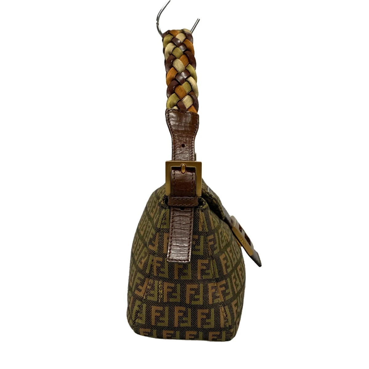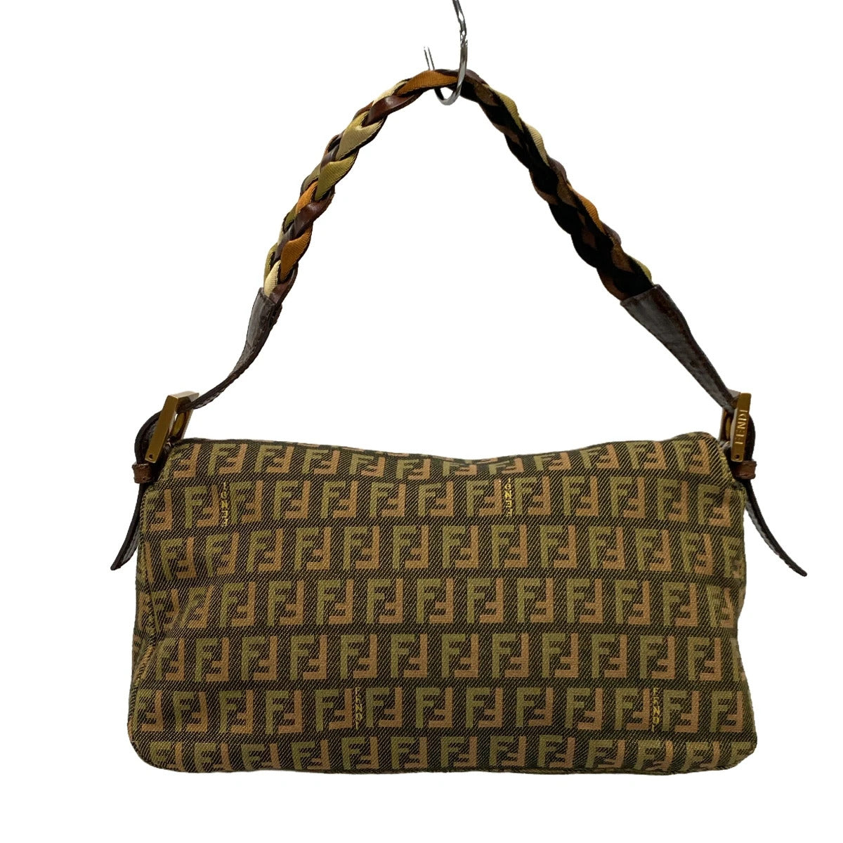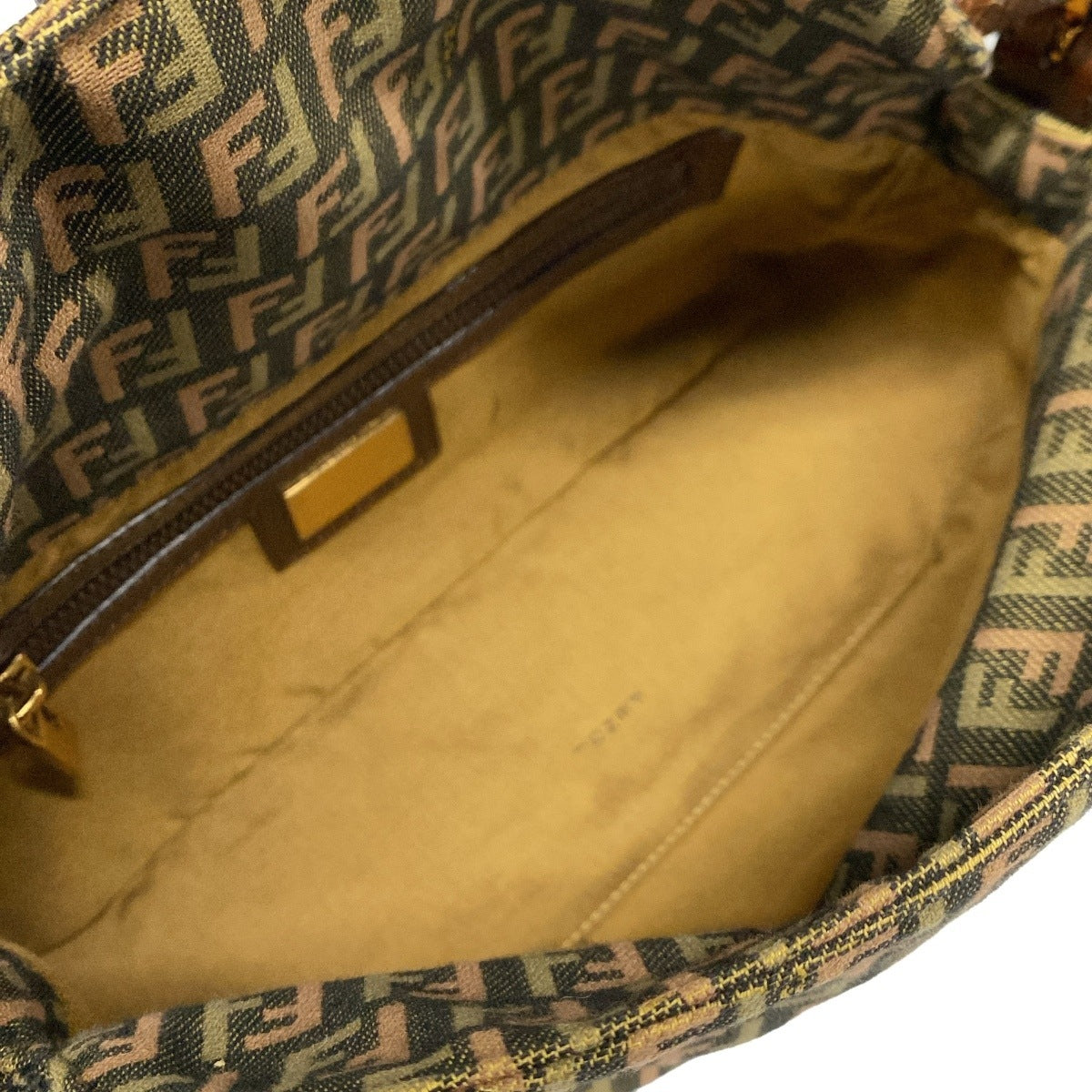 PRE-OWNED FF Mamma Bucket Zucchino Pattern Black Light Green Red Jacquard Leather Shoulder Bag