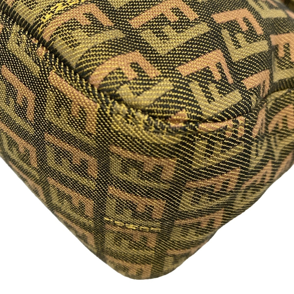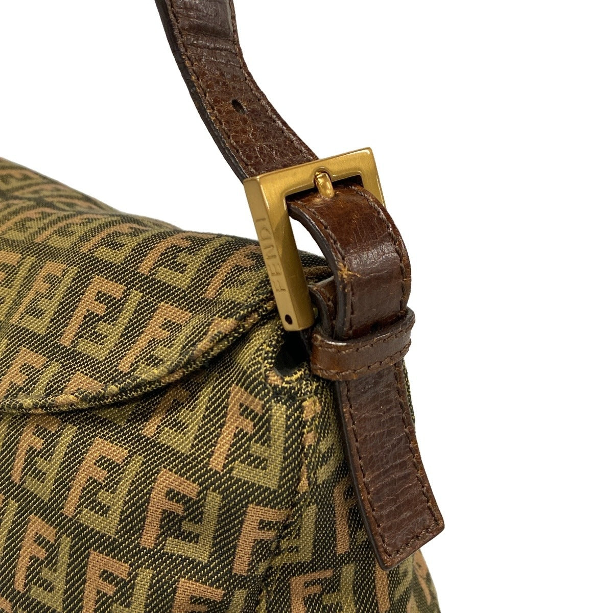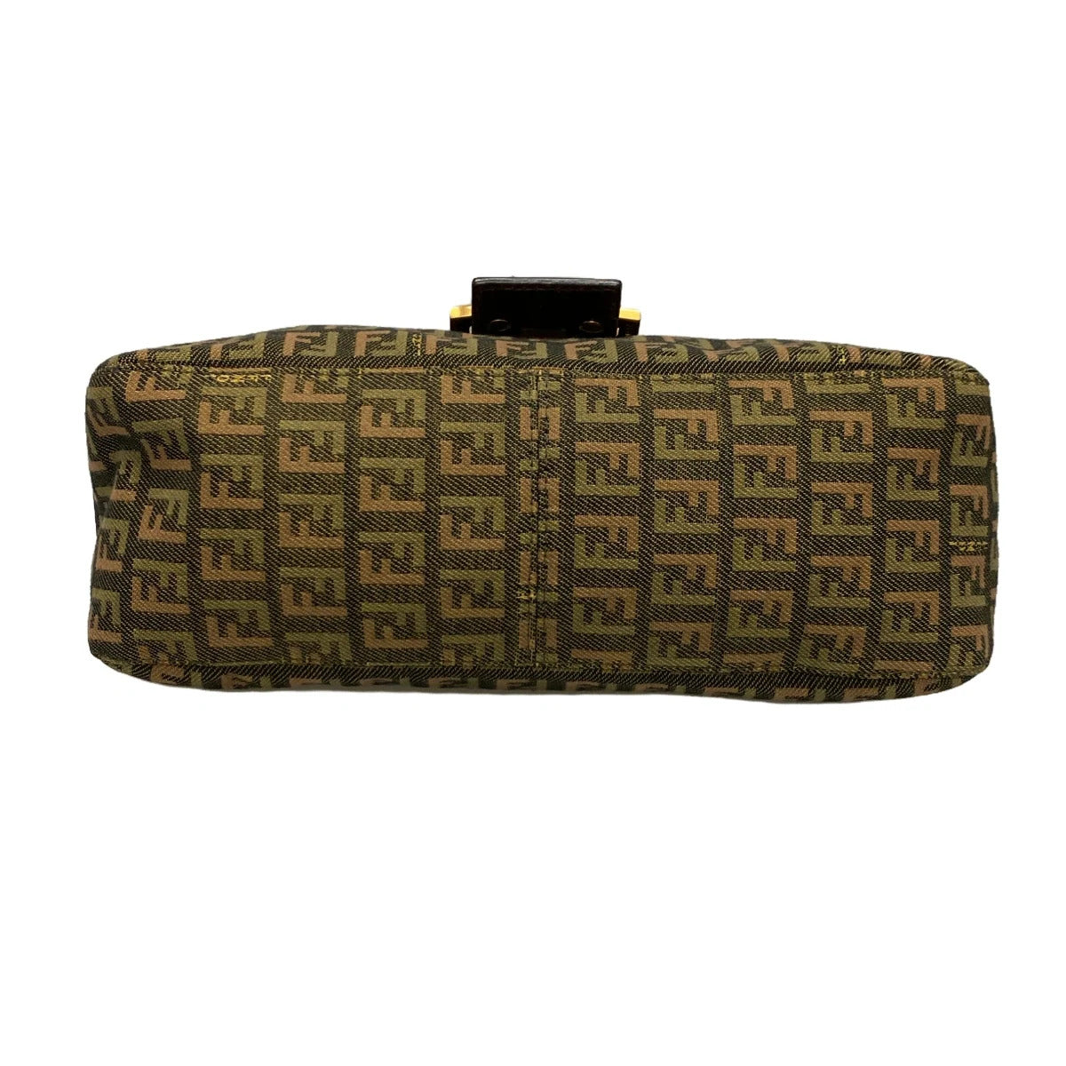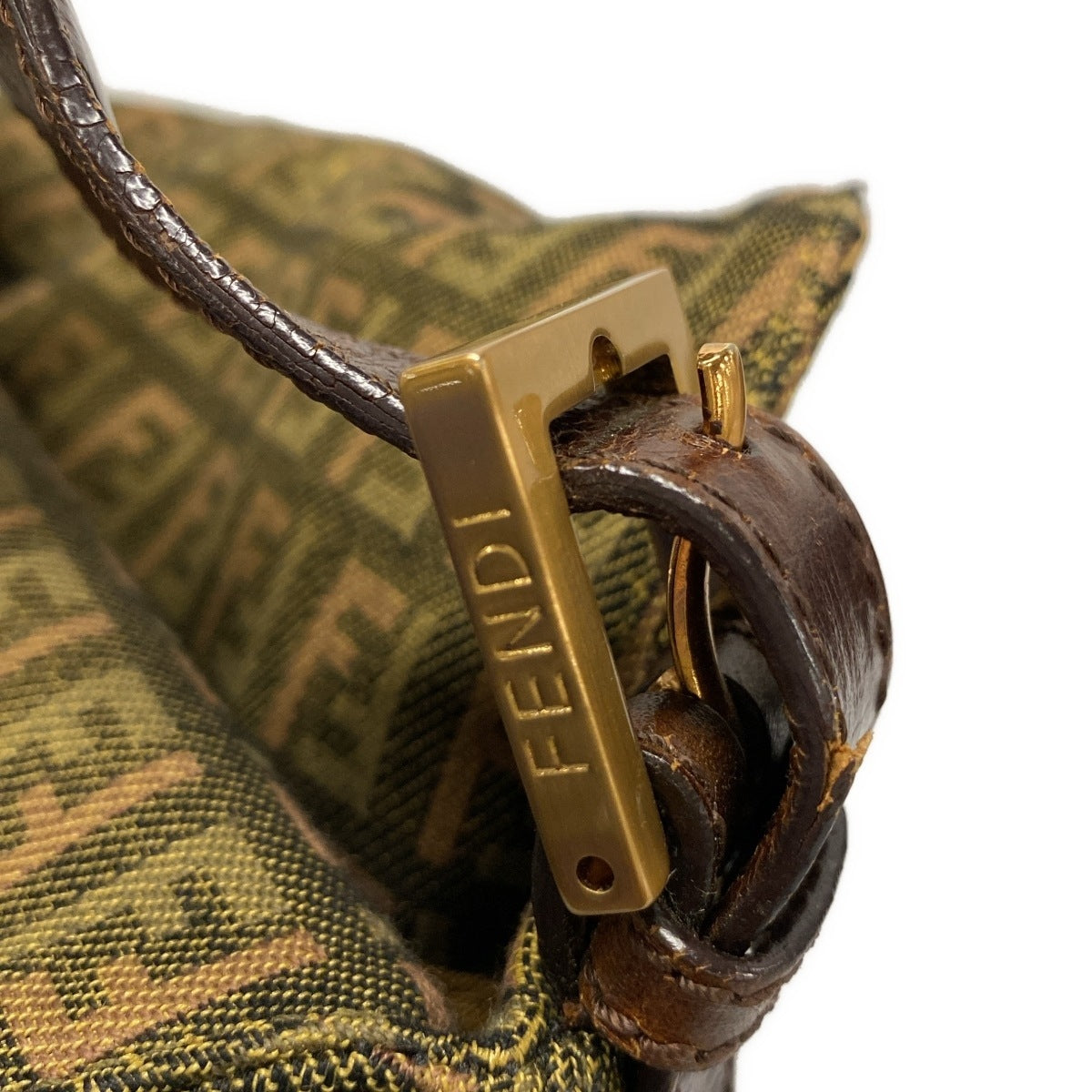 PRE-OWNED FF Mamma Bucket Zucchino Pattern Black Light Green Red Jacquard Leather Shoulder Bag