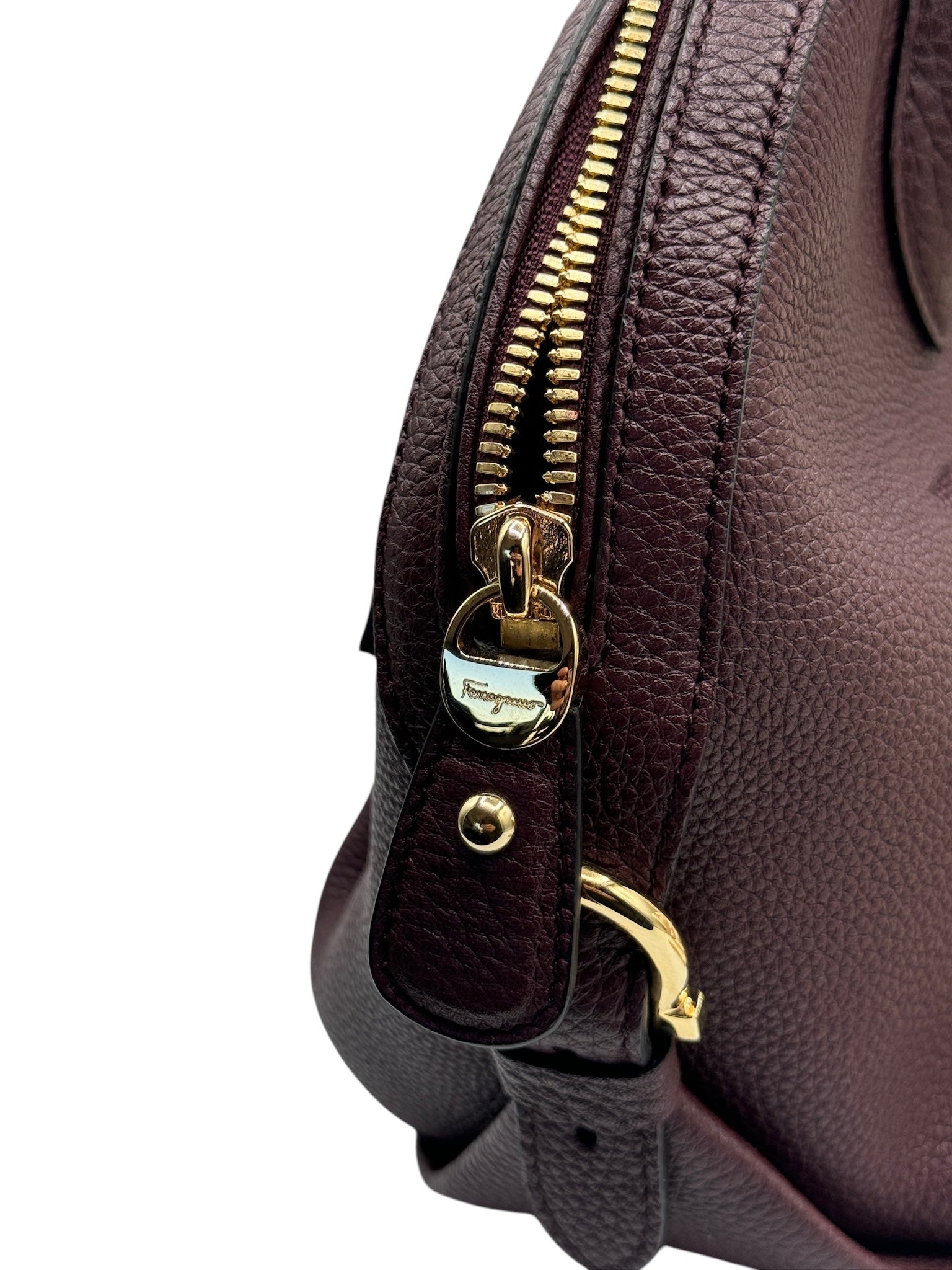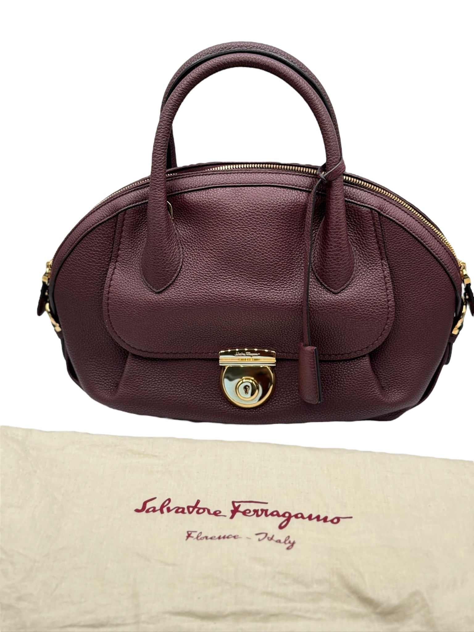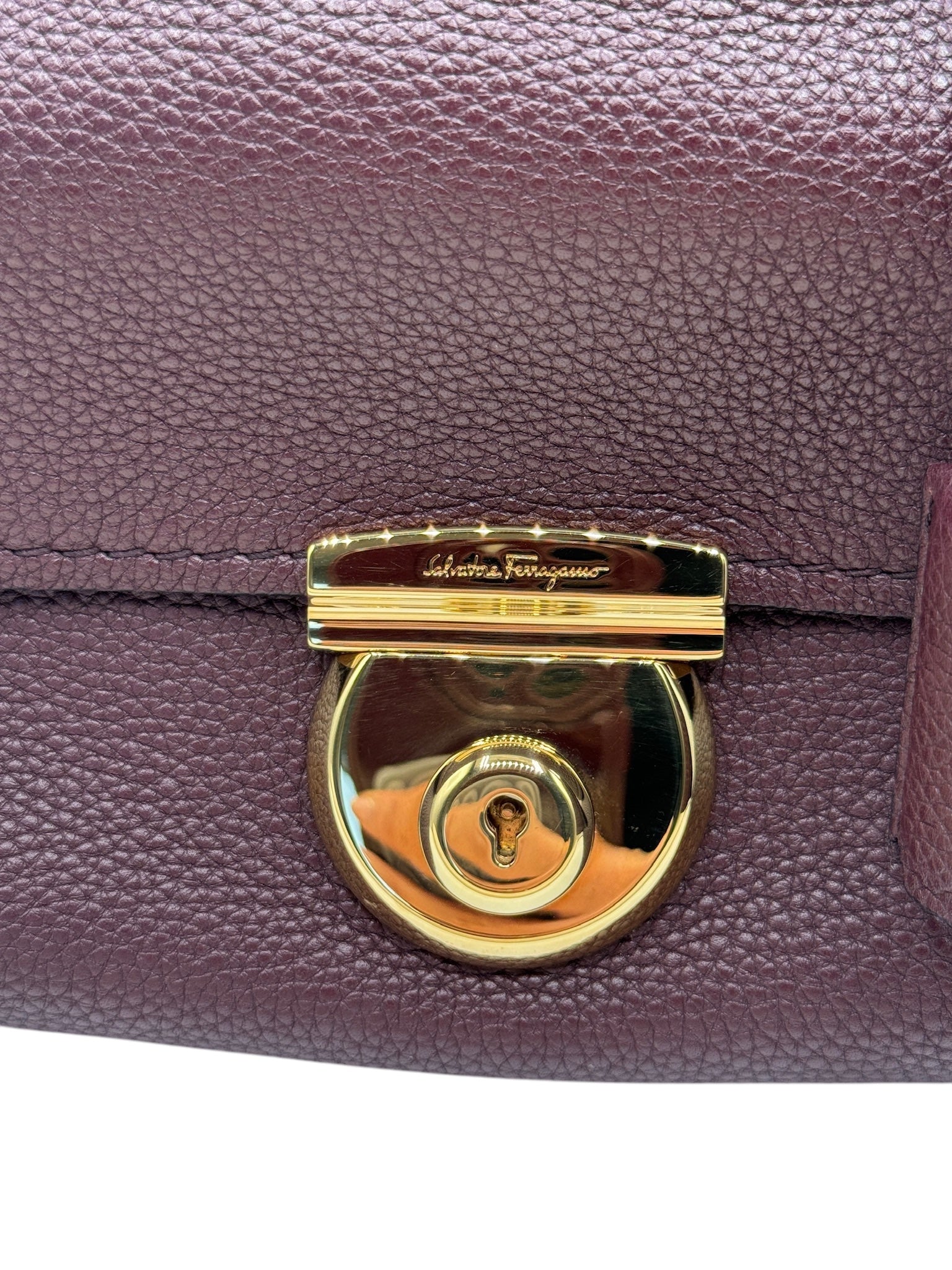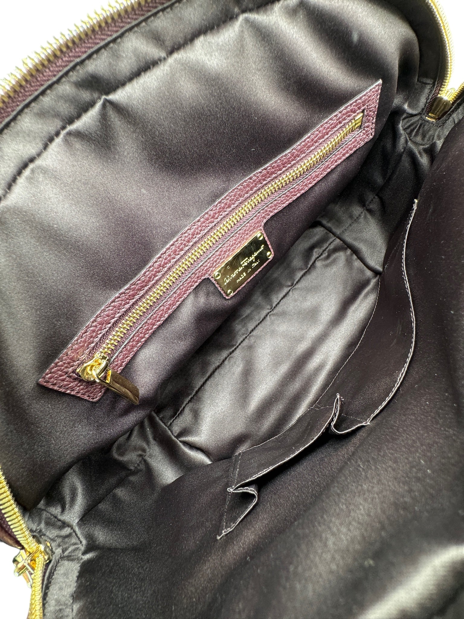 Elevate your accessory game with the pre-owned Salvatore Ferragamo Fiamma Burgundy Leather Tote Bag, where style meets functionality.