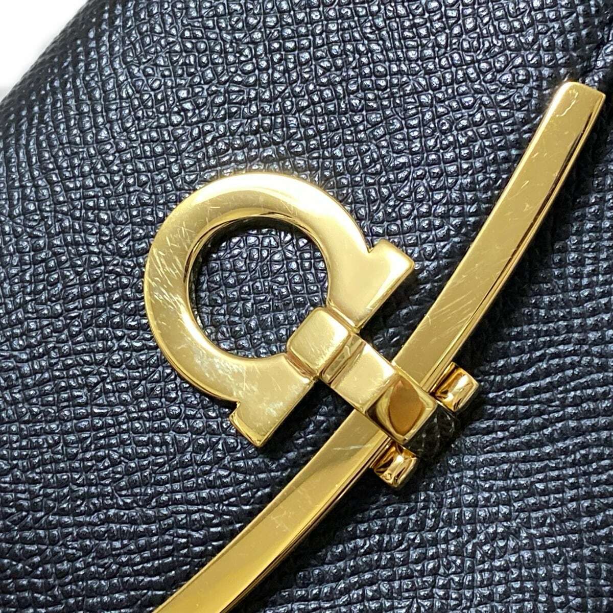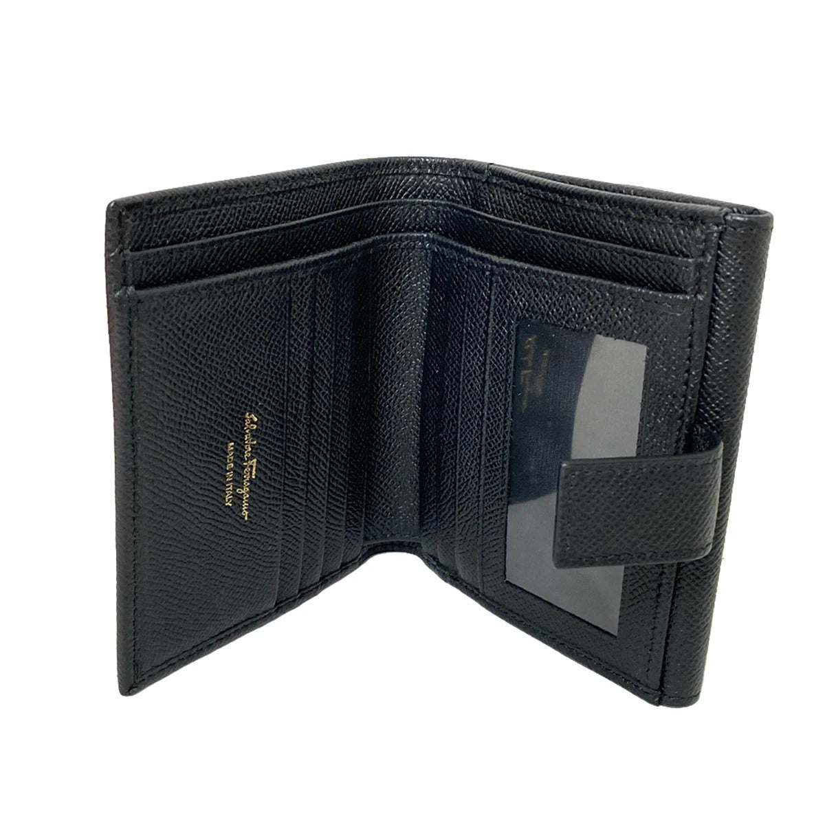 Discover the elegance of the pre-owned Salvatore Ferragamo Gancini Gold Double Hook Black Leather Wallet, a sophisticated addition to your collection of small leather goods.