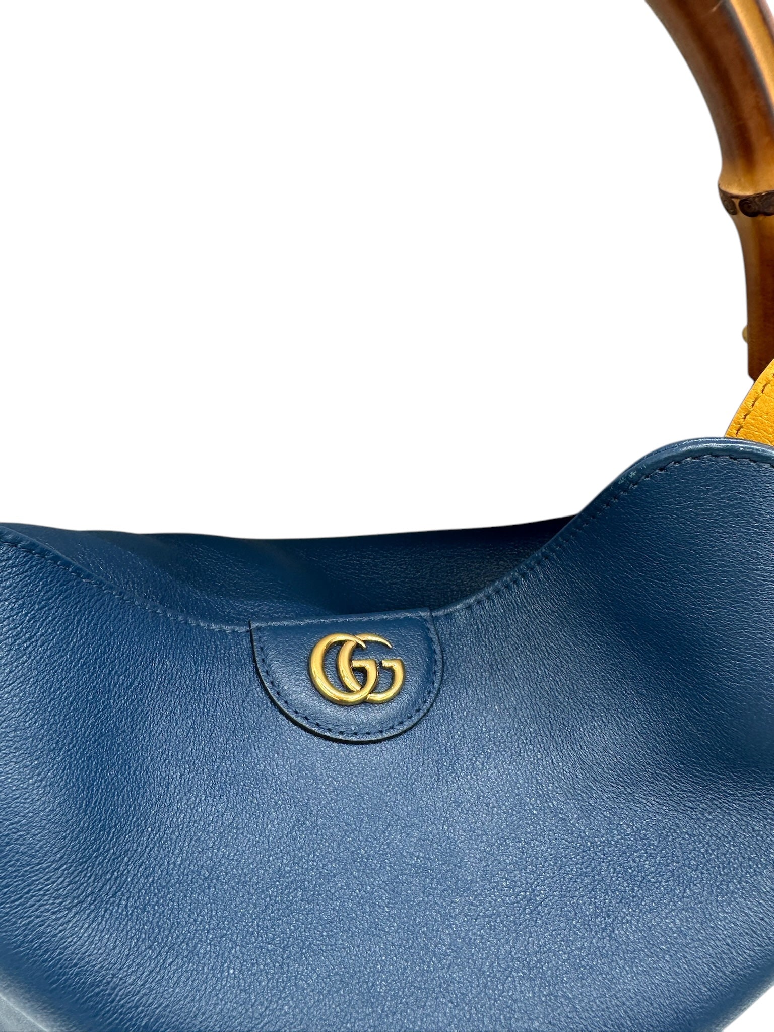 PRE-OWNED GG Bamboo Navy Blue Diana Tote