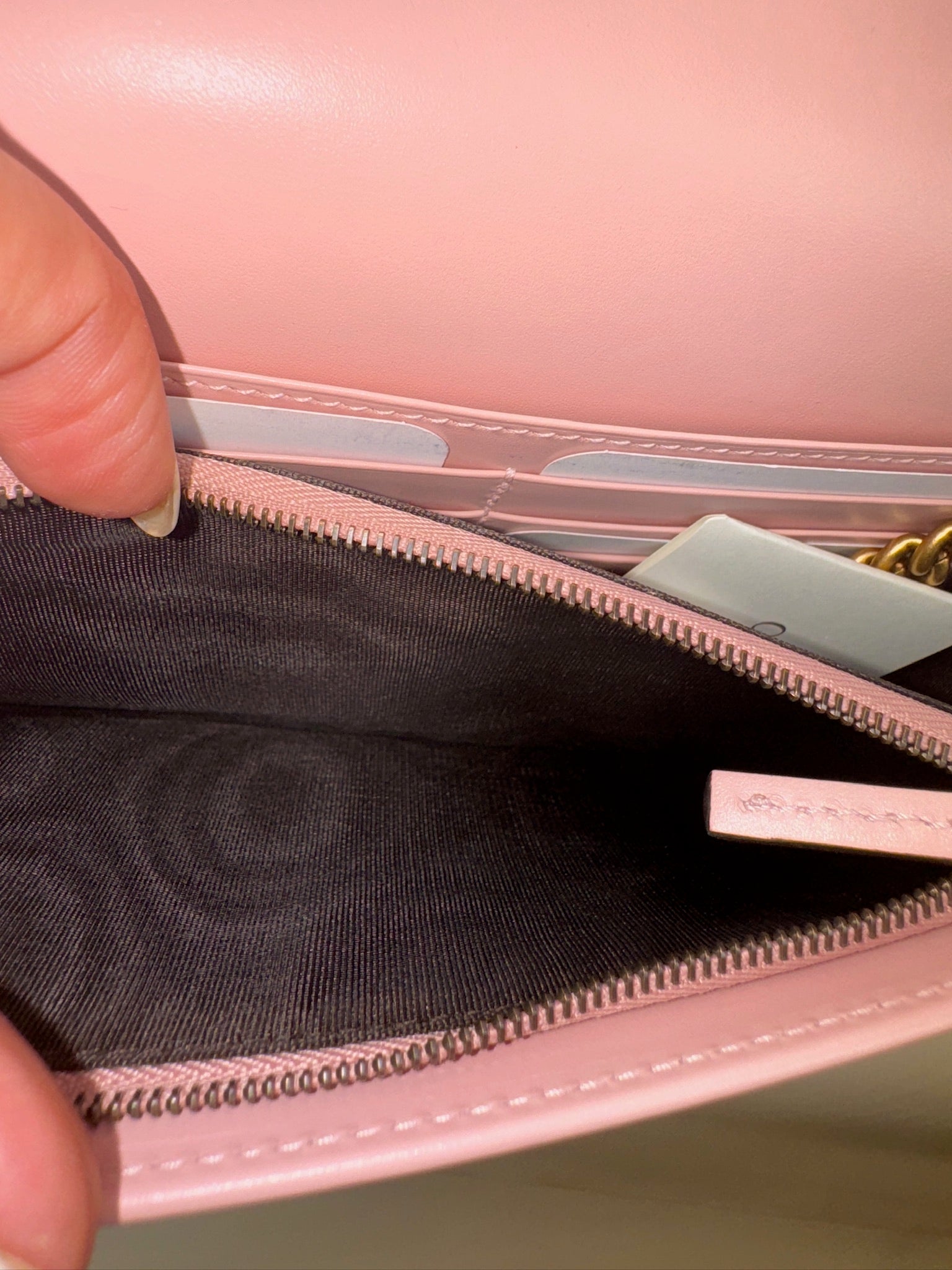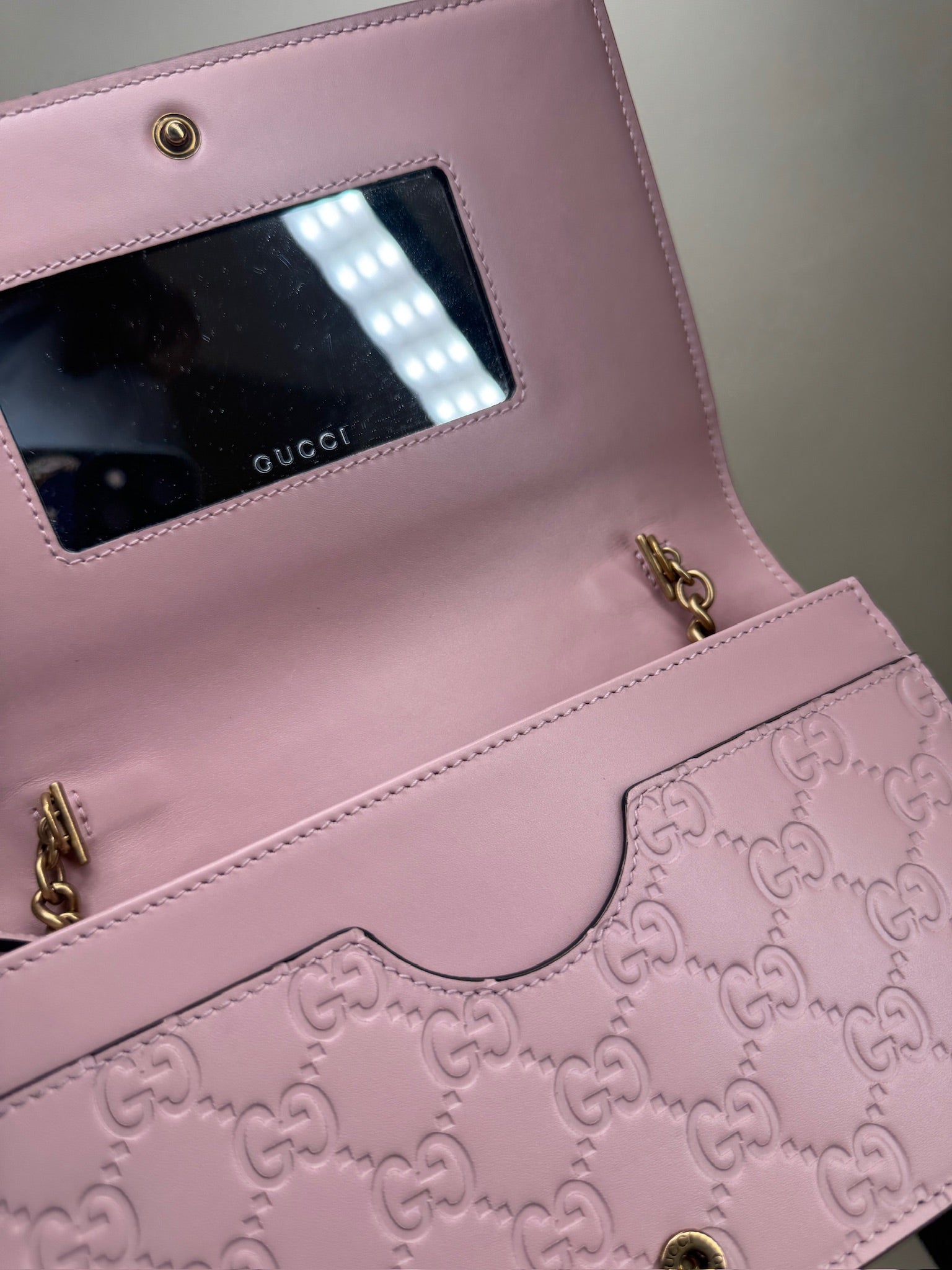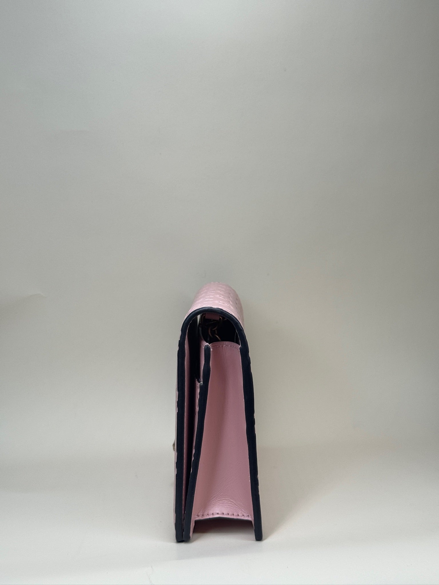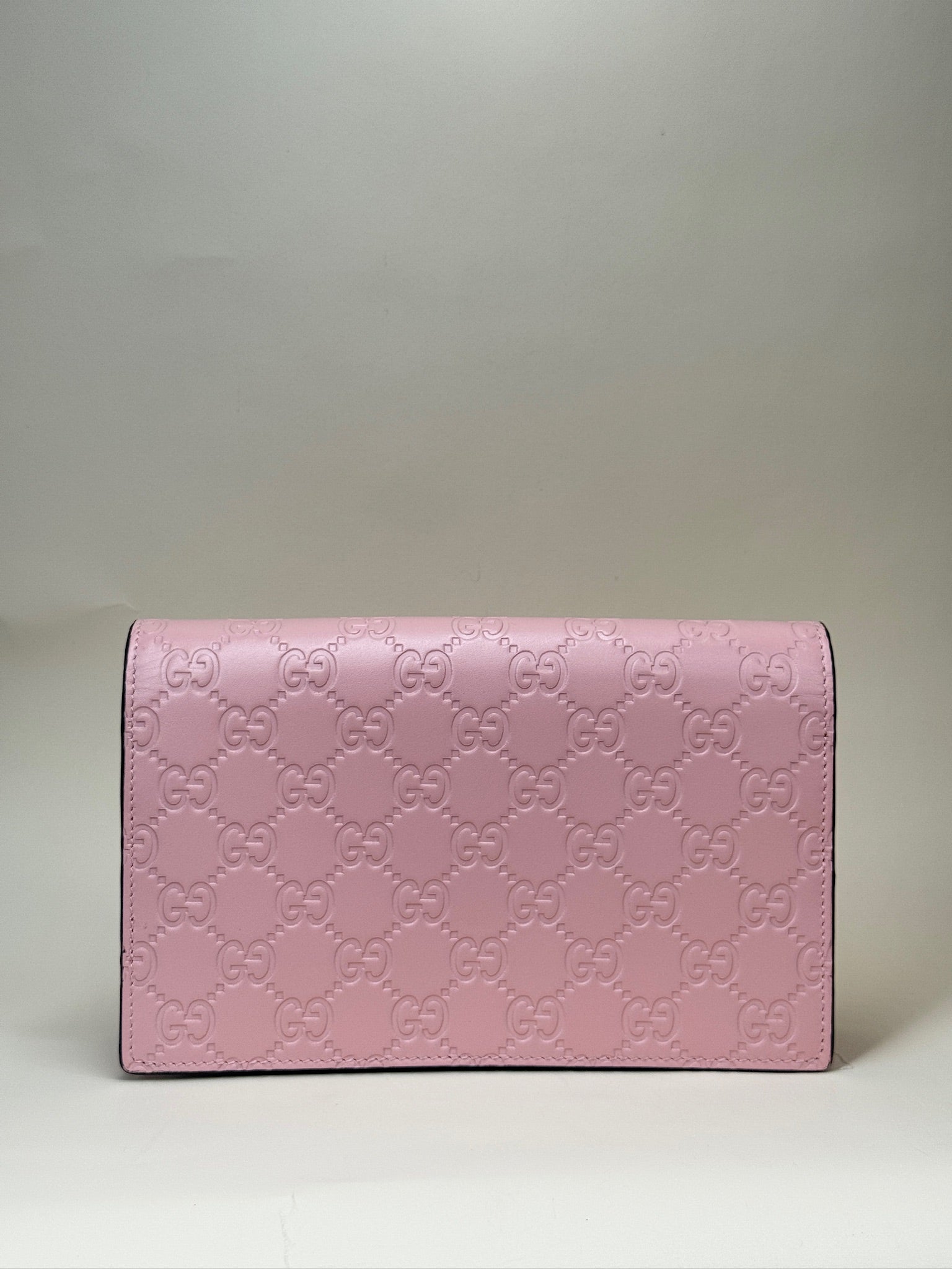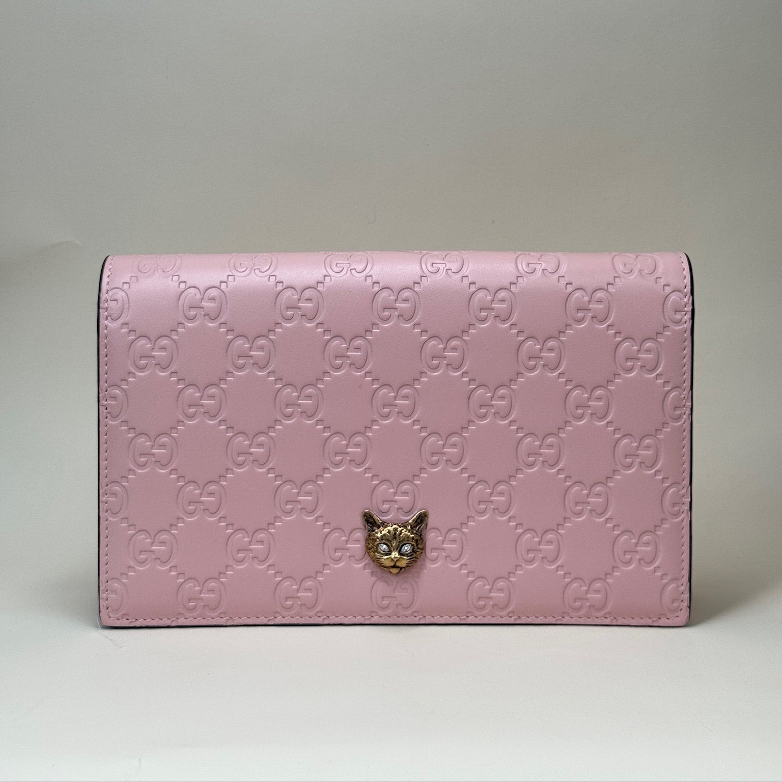 PRE-OWNED GG Blush Pink Guccissima Leather Cat Head Wallet on Chain