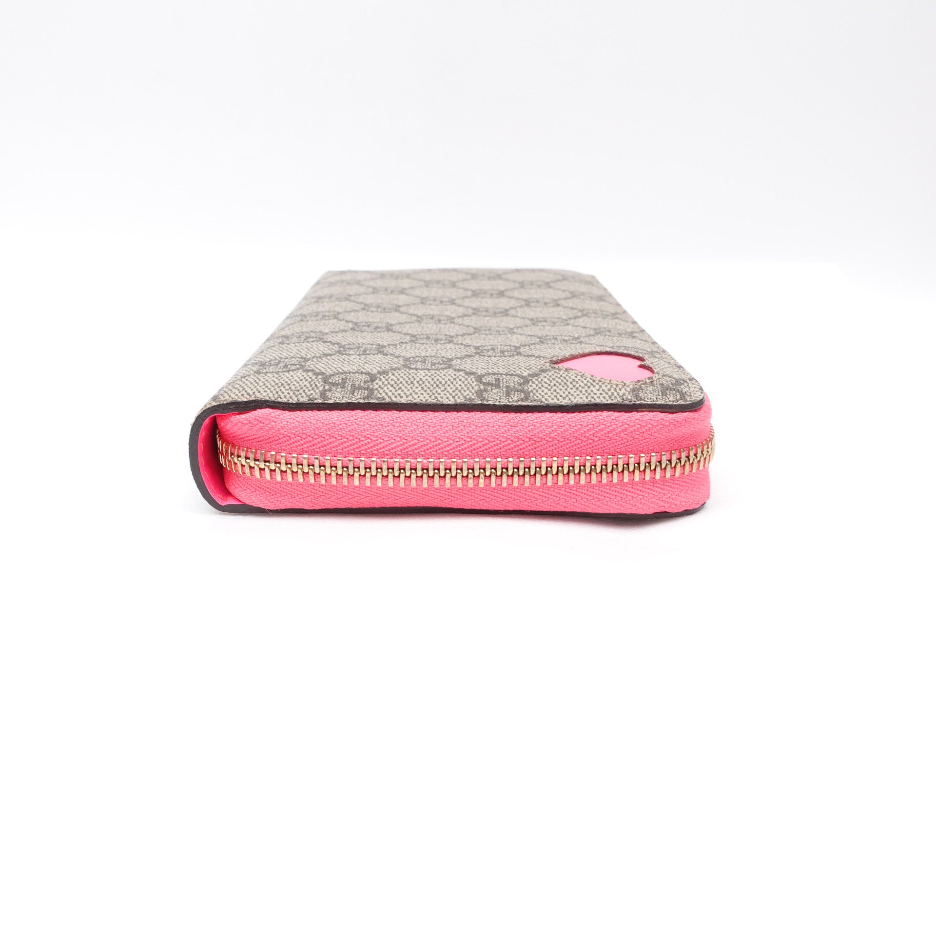 PRE-OWNED GG Canvas Neon Heart Around Zippy Long Wallet