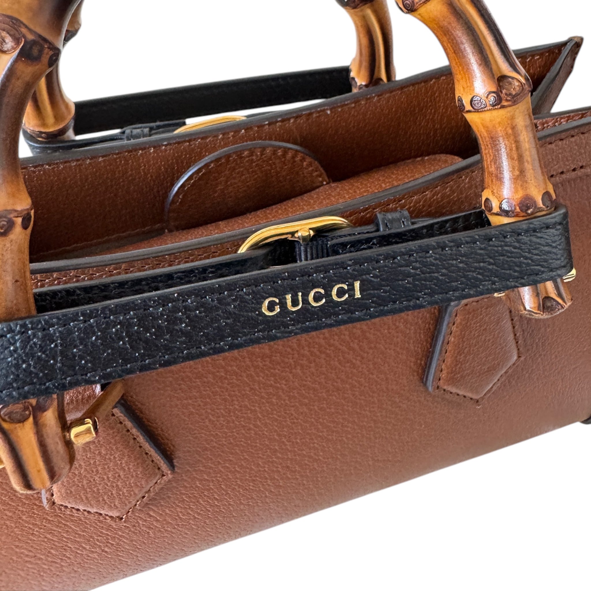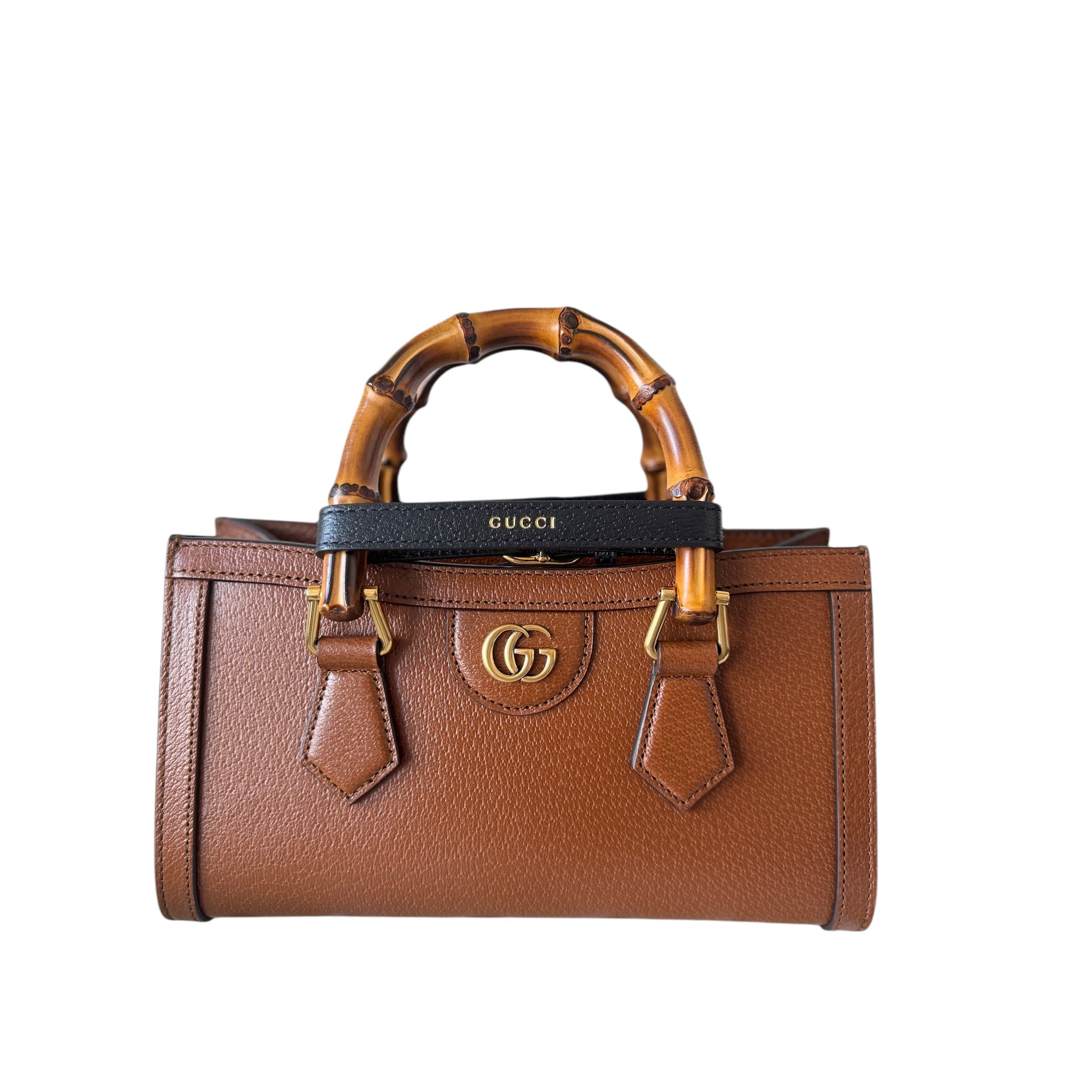 PRE-OWNED GG Diana NM Chain Bamboo Handle Tote Leather Small