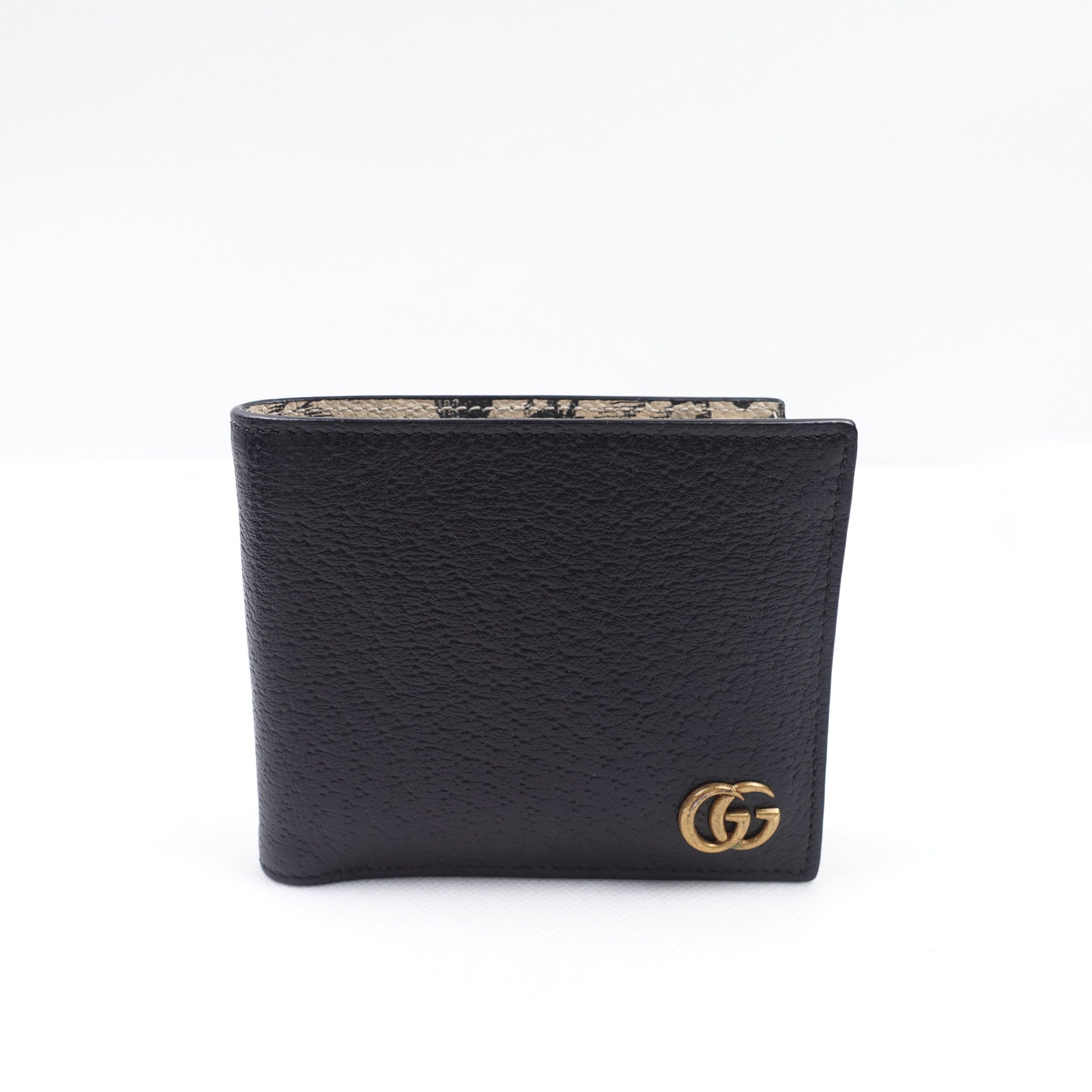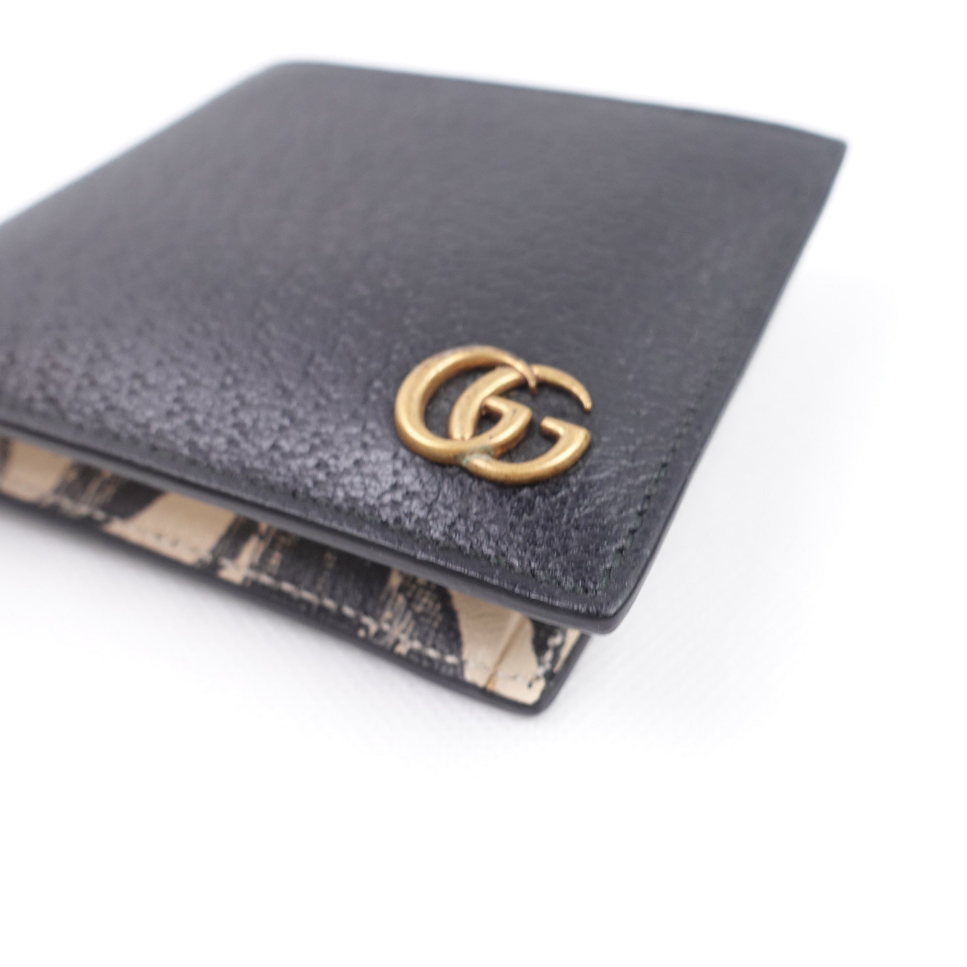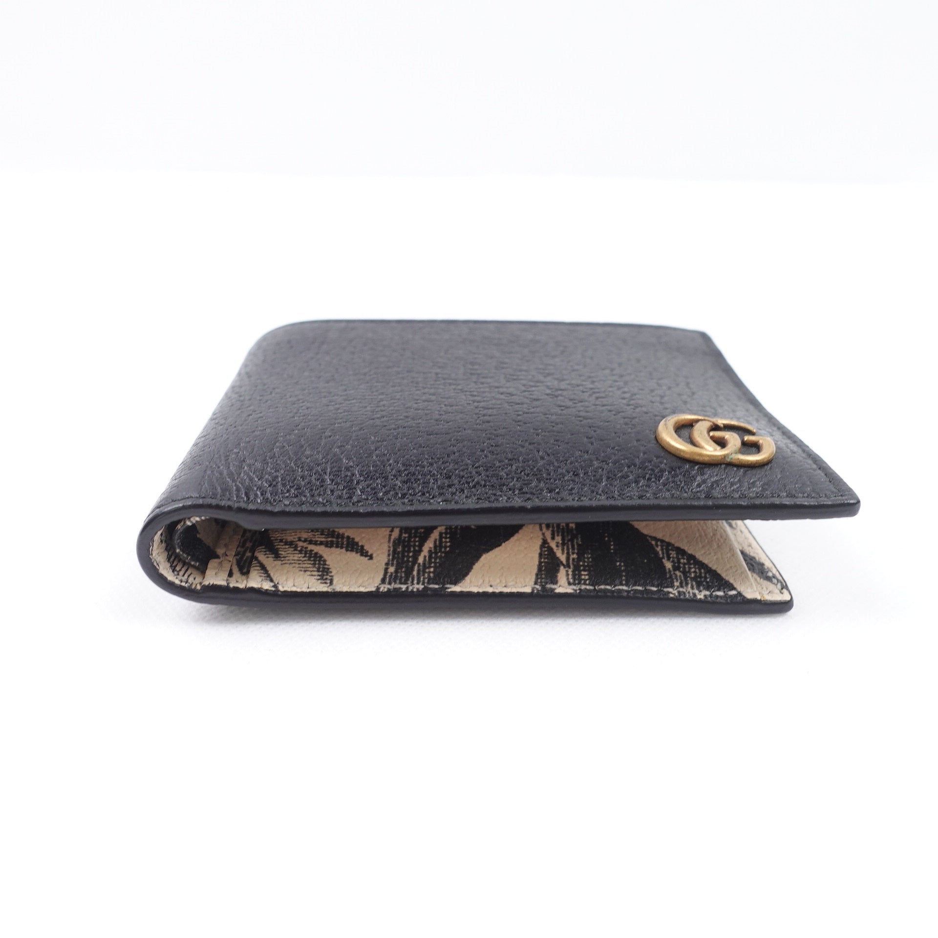 PRE-OWNED GG Herbarium Black Bifold Short Wallet