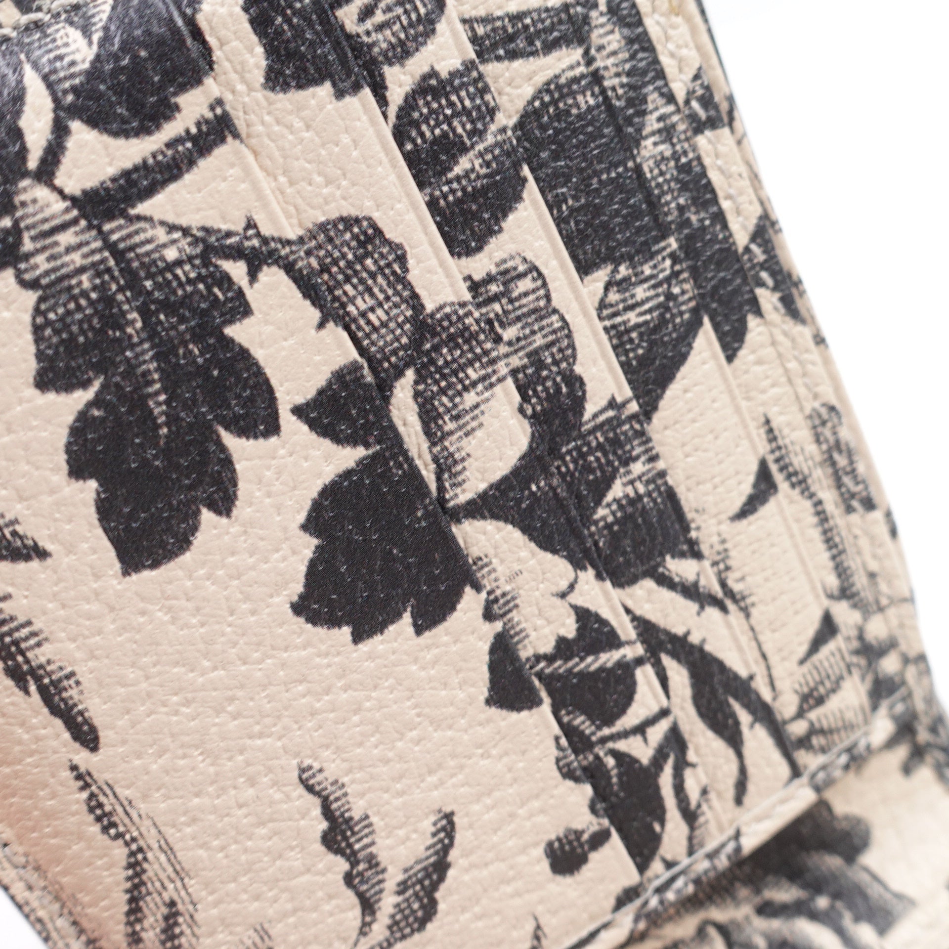 Elevate your style with our PRE-OWNED GG Herbarium Black Bifold Short Wallet. Featuring aged gold hardware, this wallet exudes sophistication and charm. Open it up to reveal the stunning Herbarium flower pattern inside, adding a touch of nature to your everyday essentials. Dimensions: 4.5'' x 1'' x 3.75''