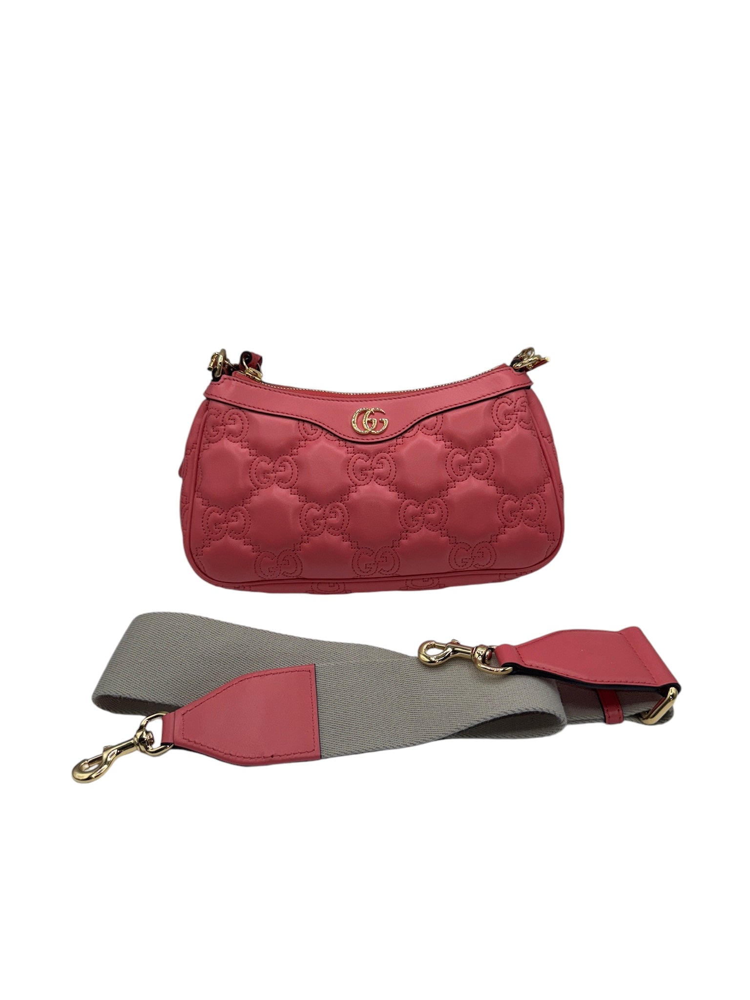 This pre-owned Gucci GG Matelasse Pink Leather Shoulder Bag is a stylish and versatile accessory.