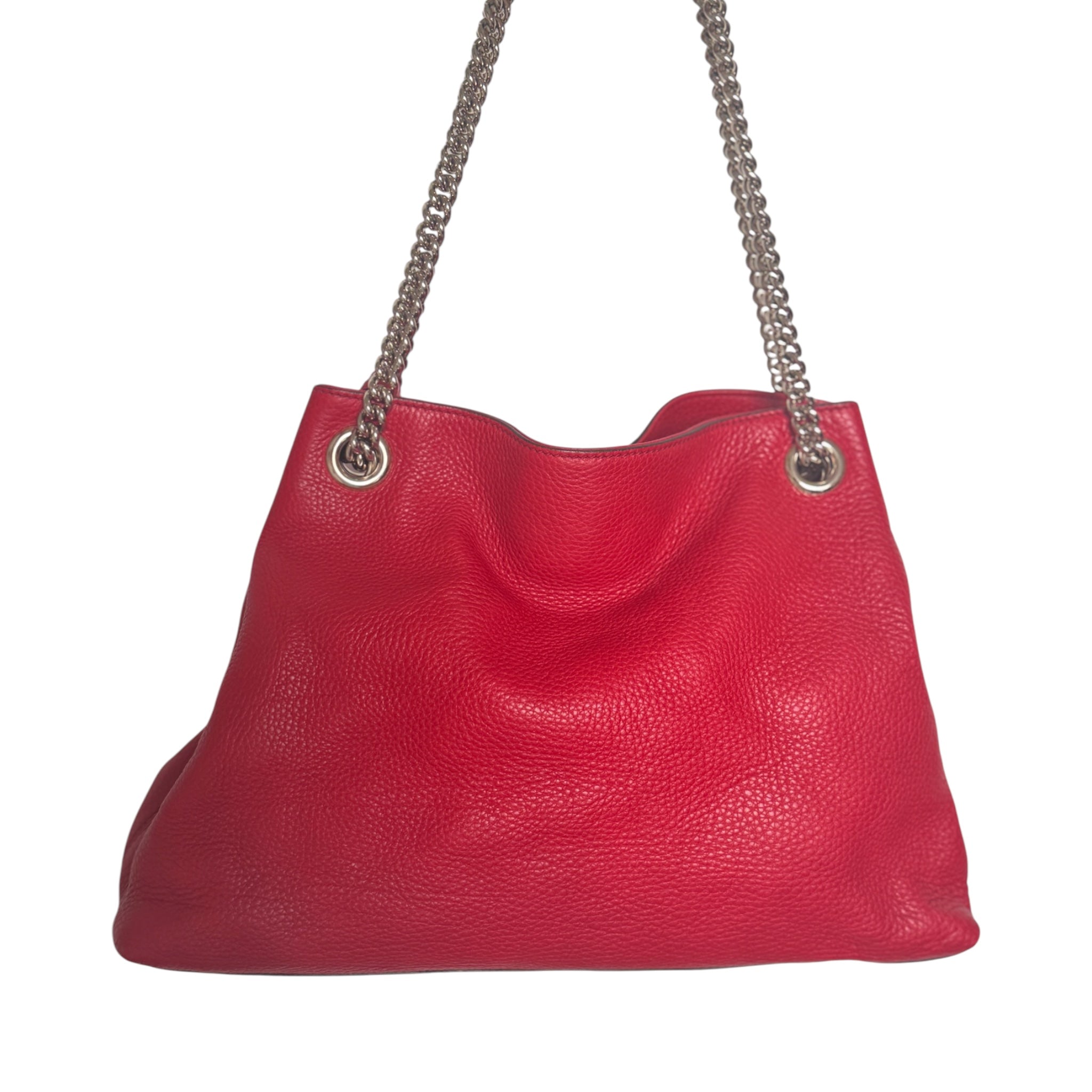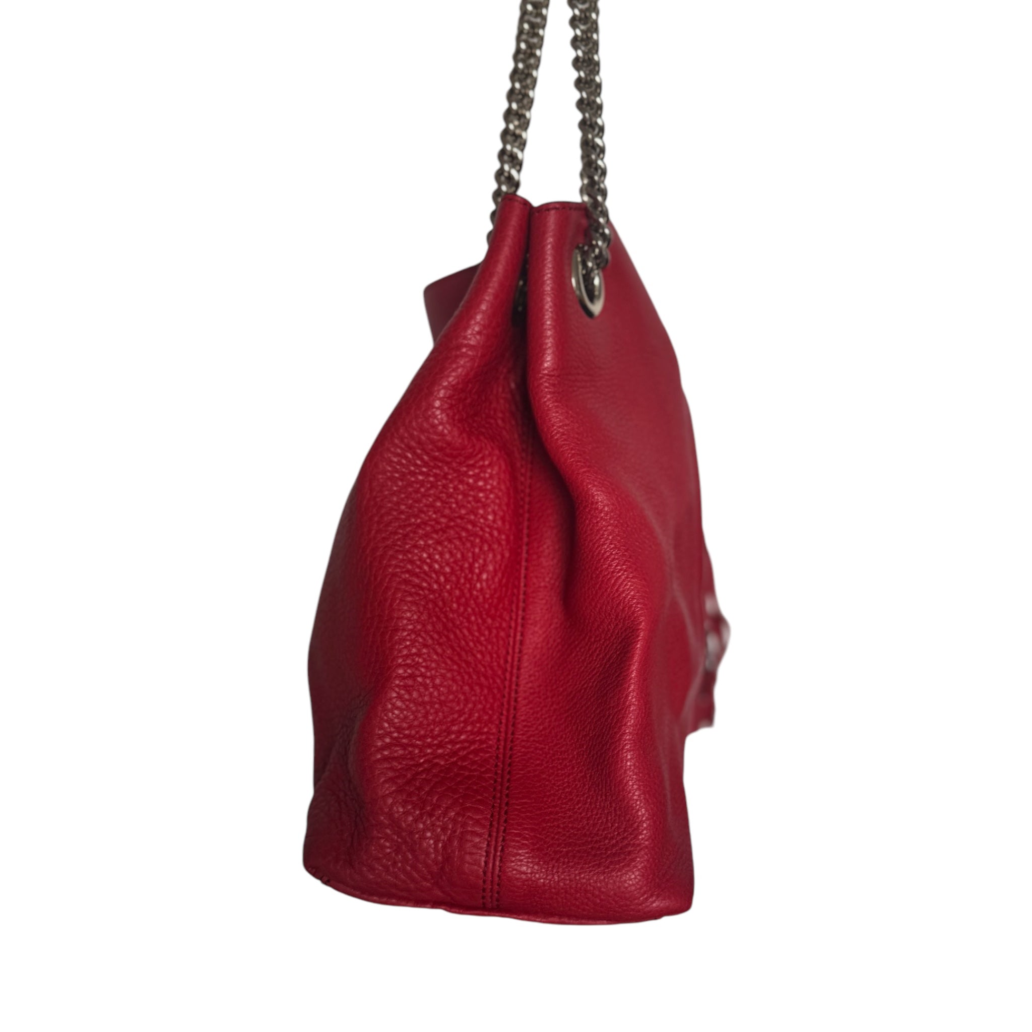 Elevate your accessory game with the GUCCI Red Leather Soho Chain Shoulder Bag, where style meets practicality.