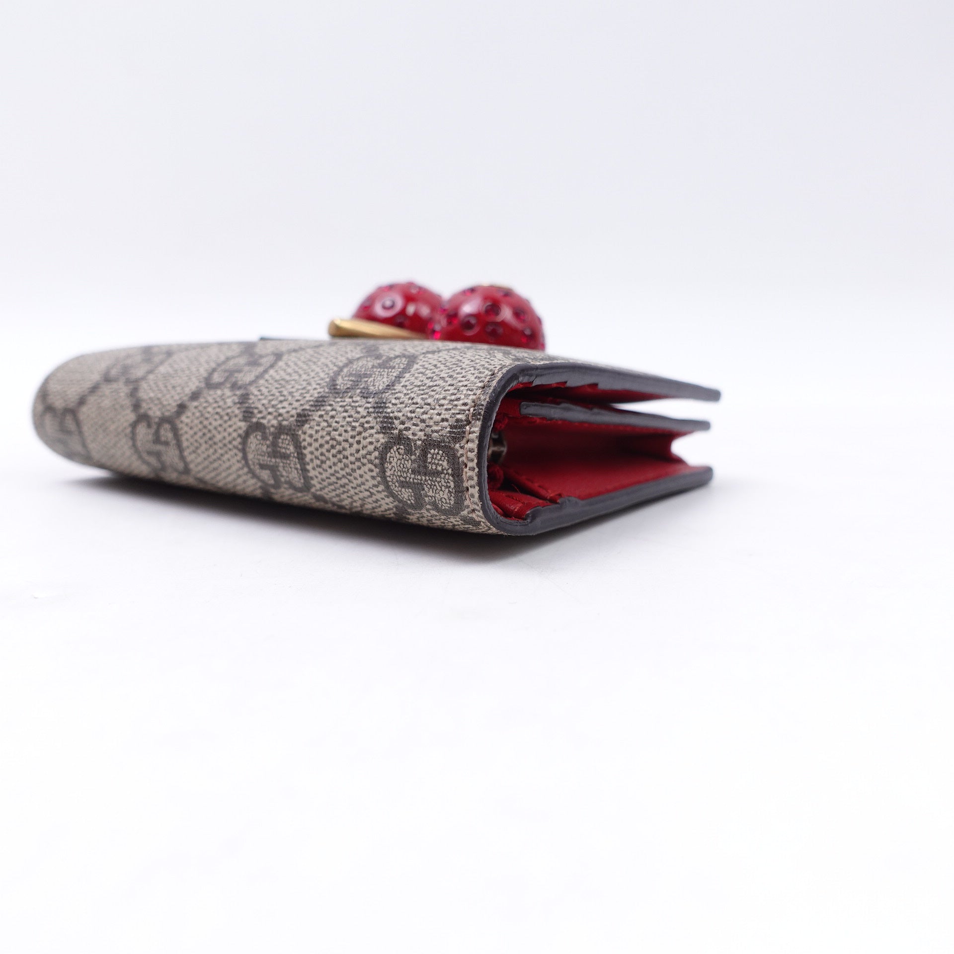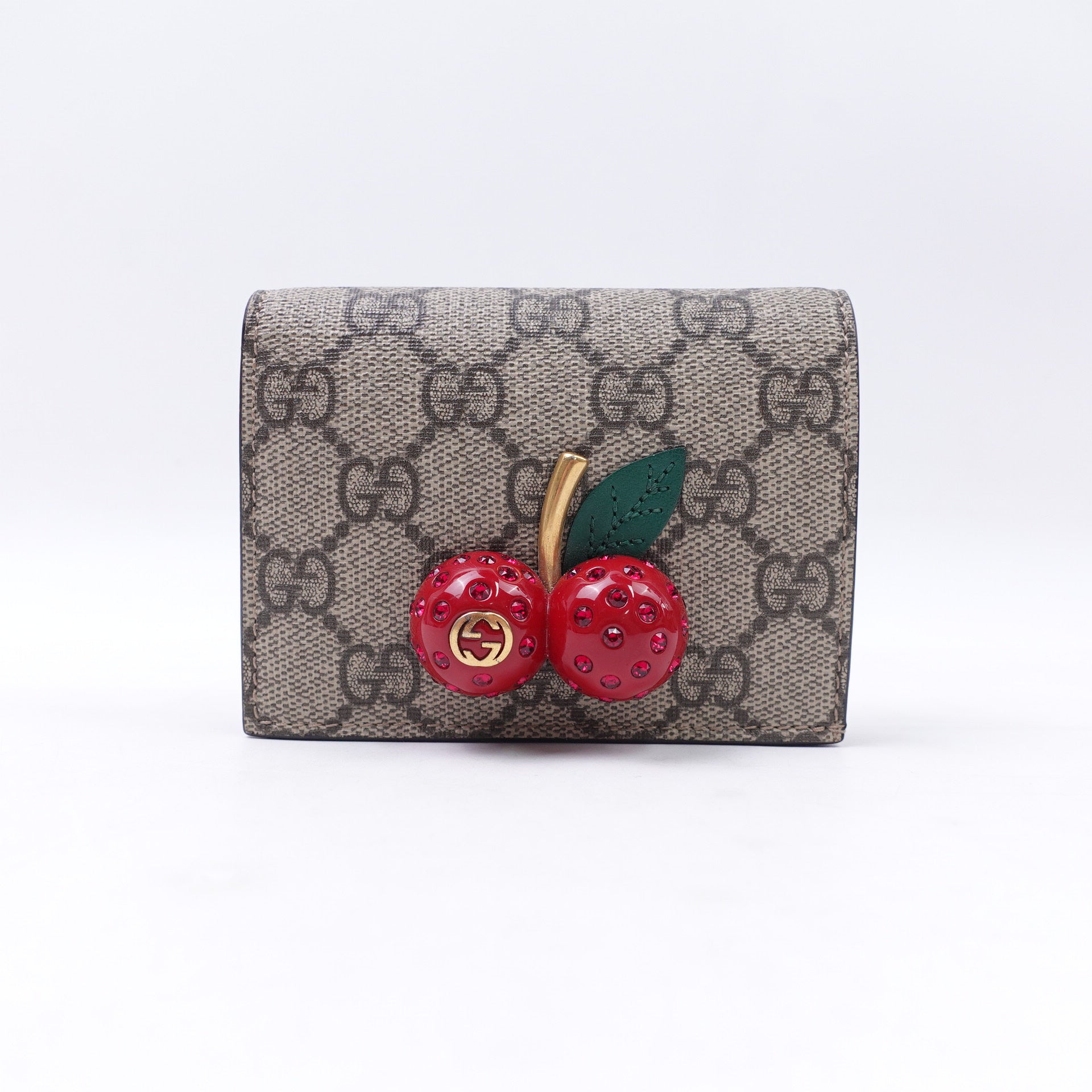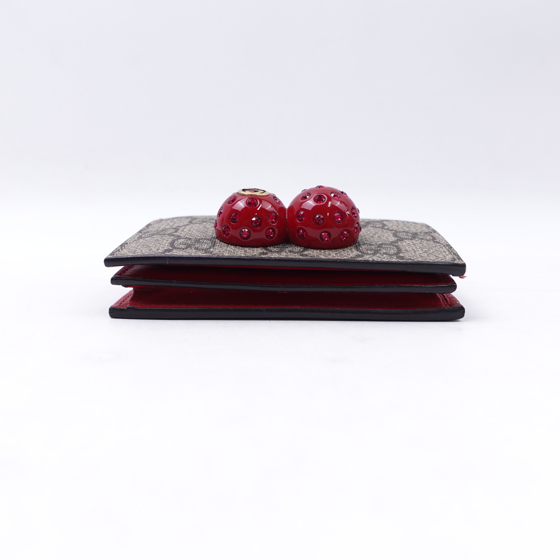 PRE-OWNED GG Supreme Cherries Card Case Wallet