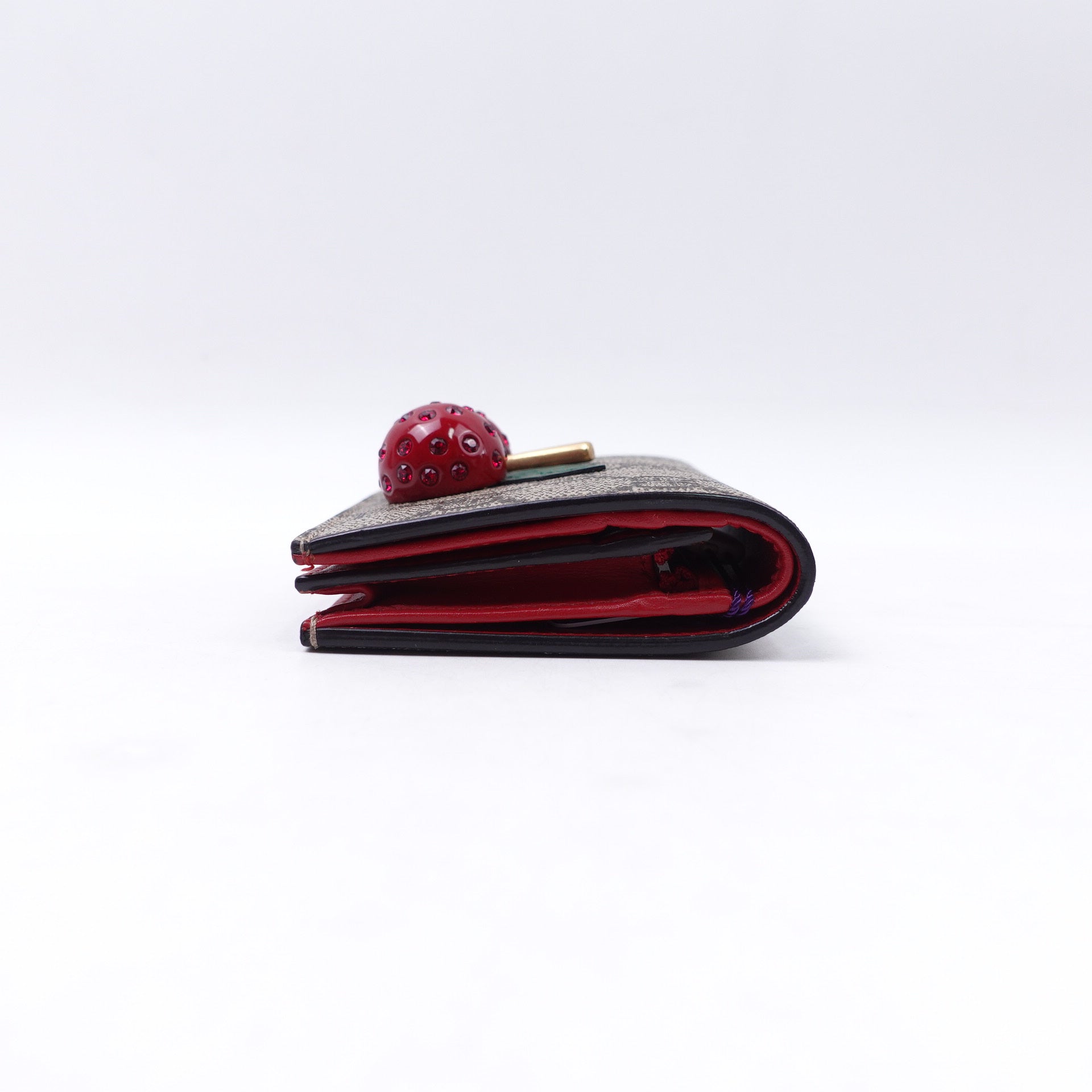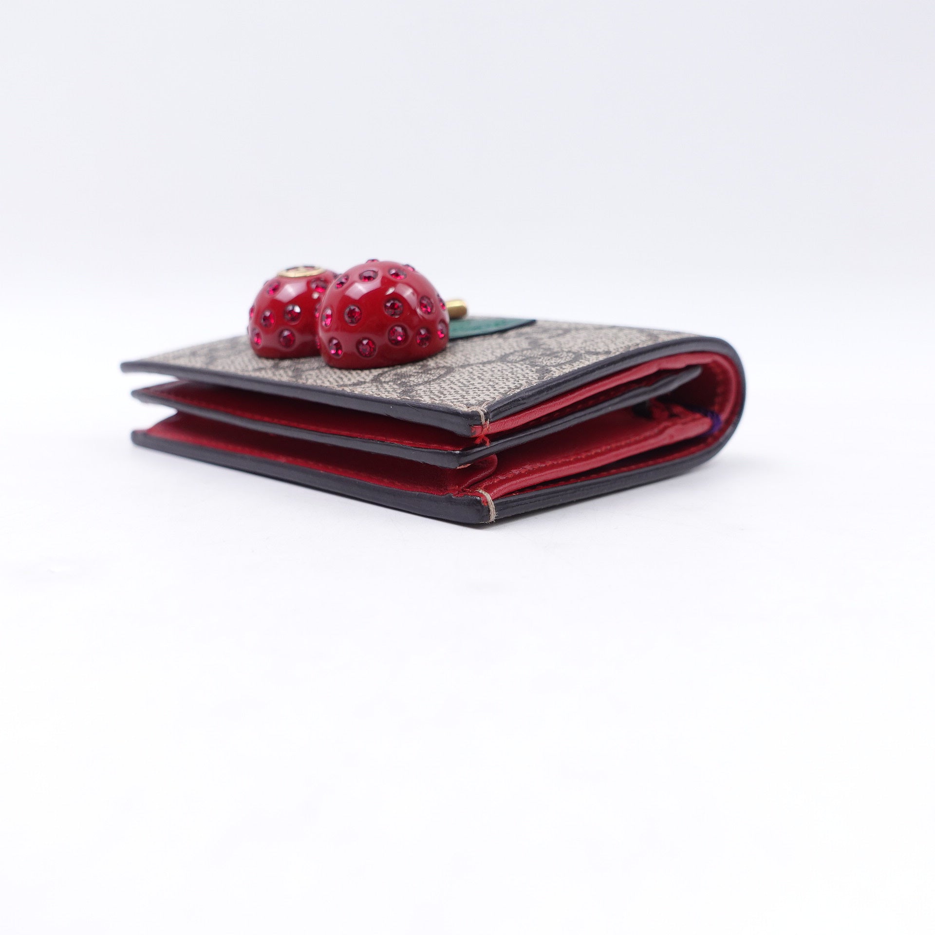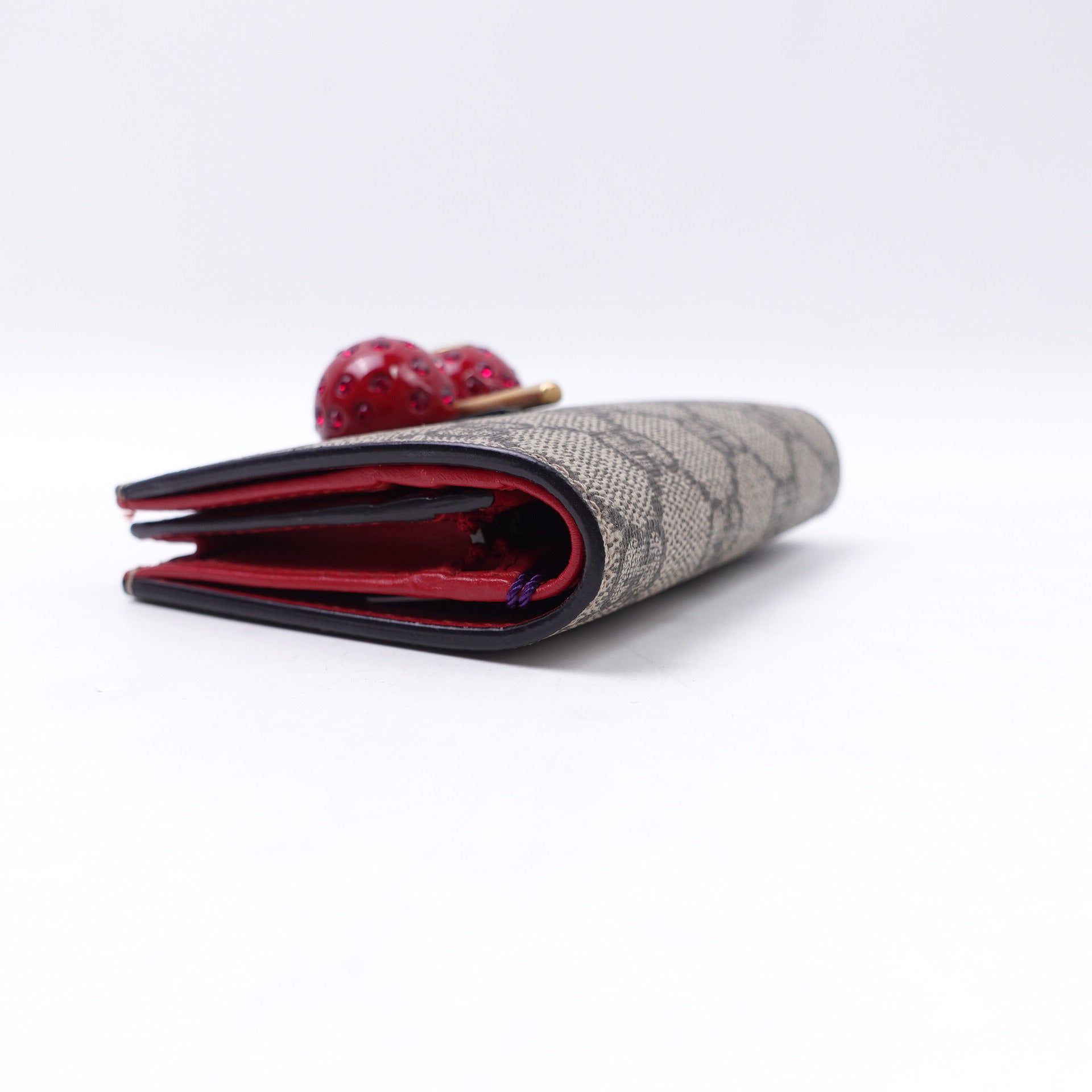 PRE-OWNED GG Supreme Cherries Card Case Wallet