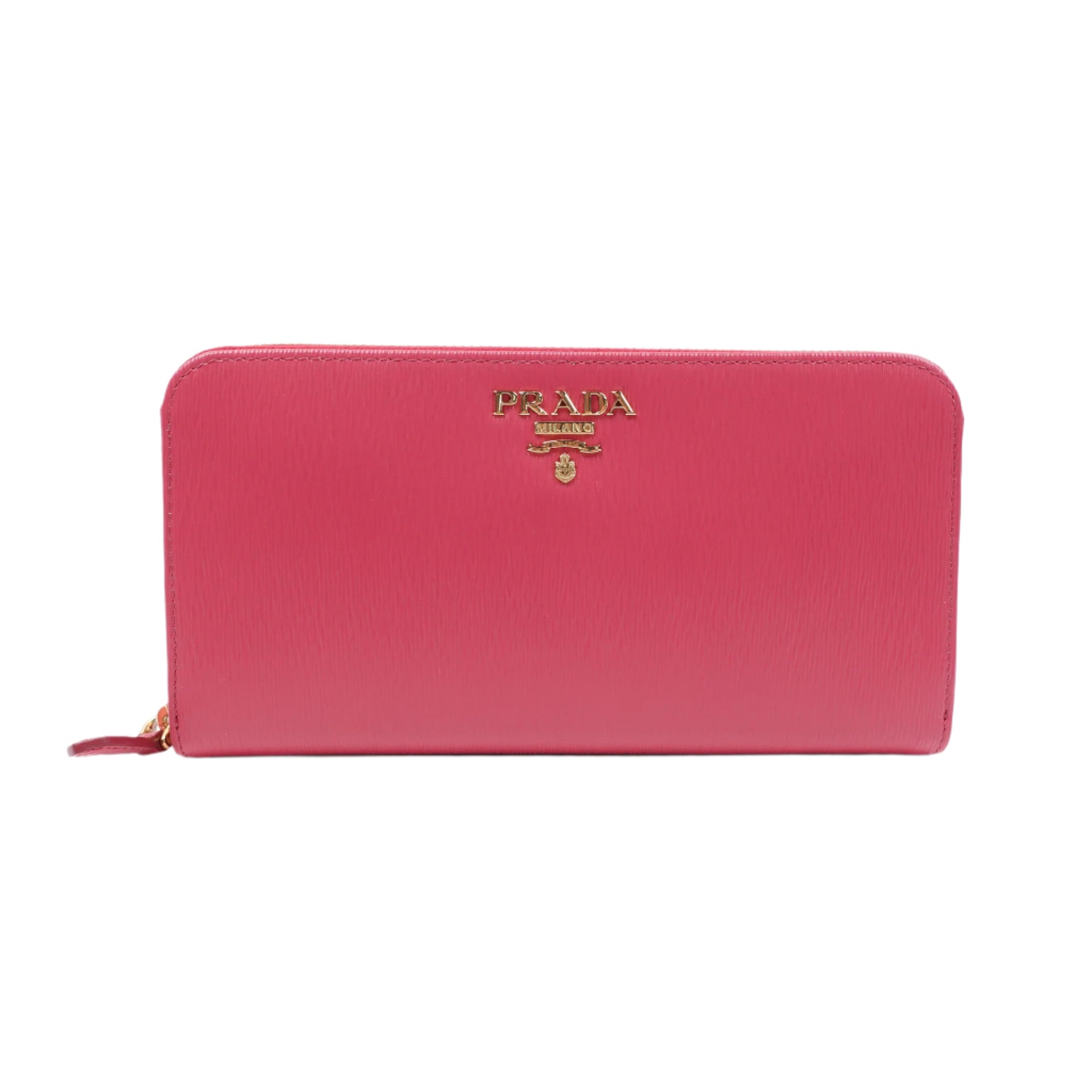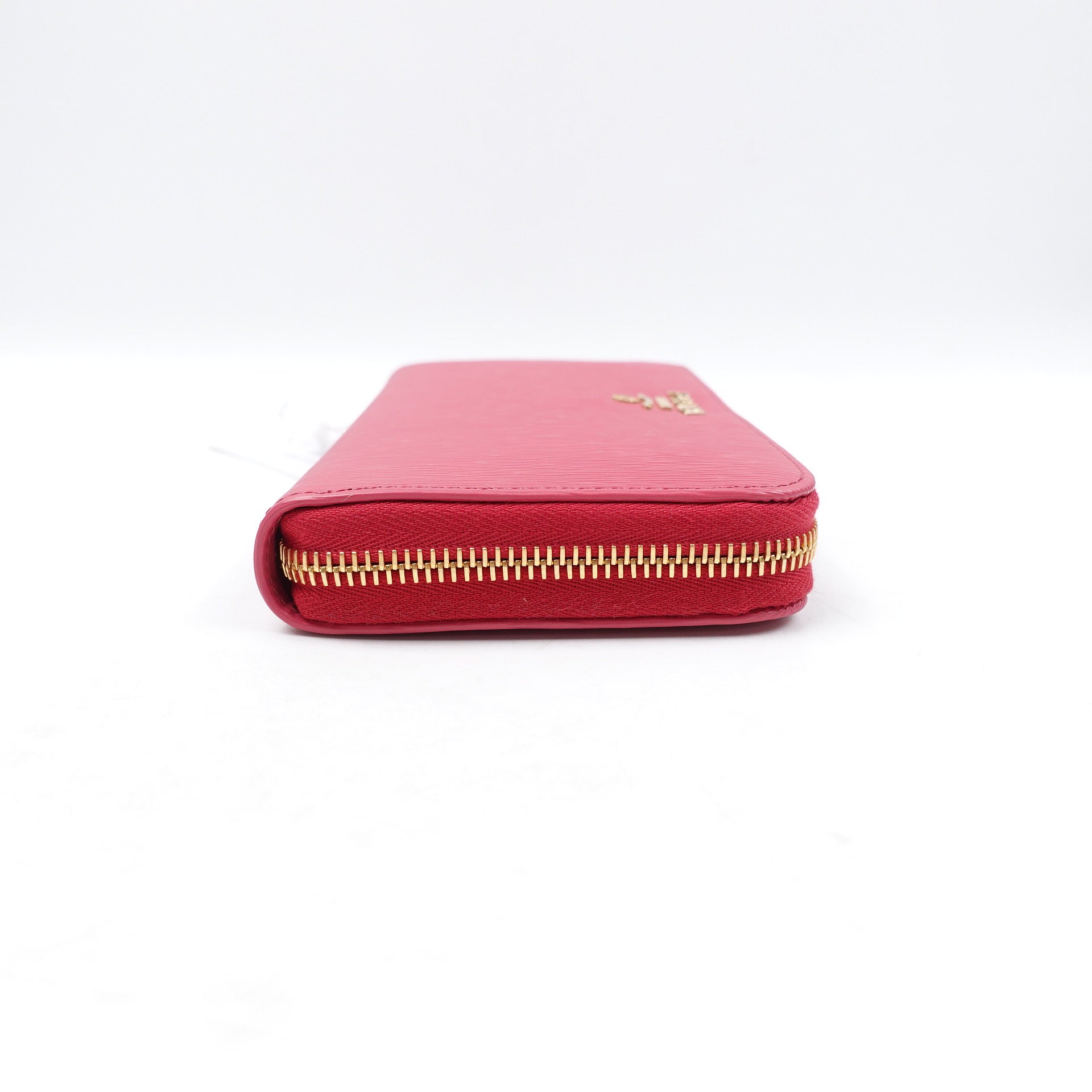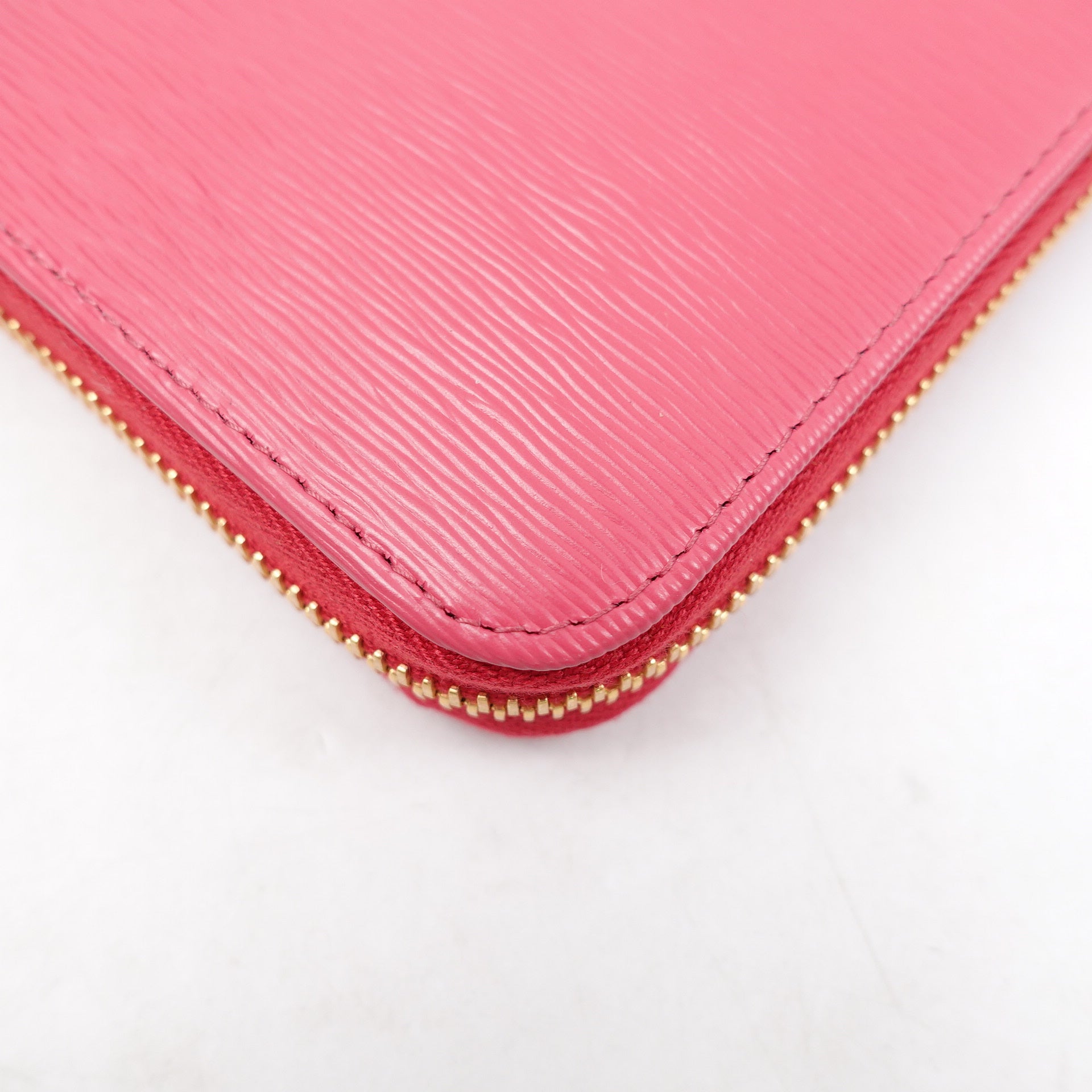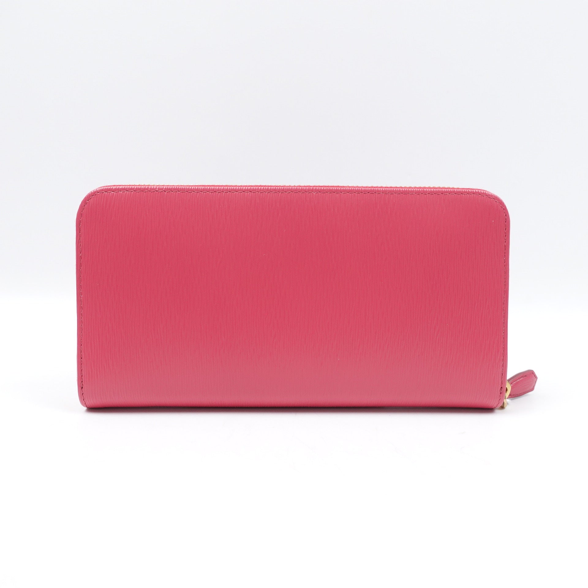 PRE-OWNED Hot Pink Saffiano Leather Zip Around Long Wallet