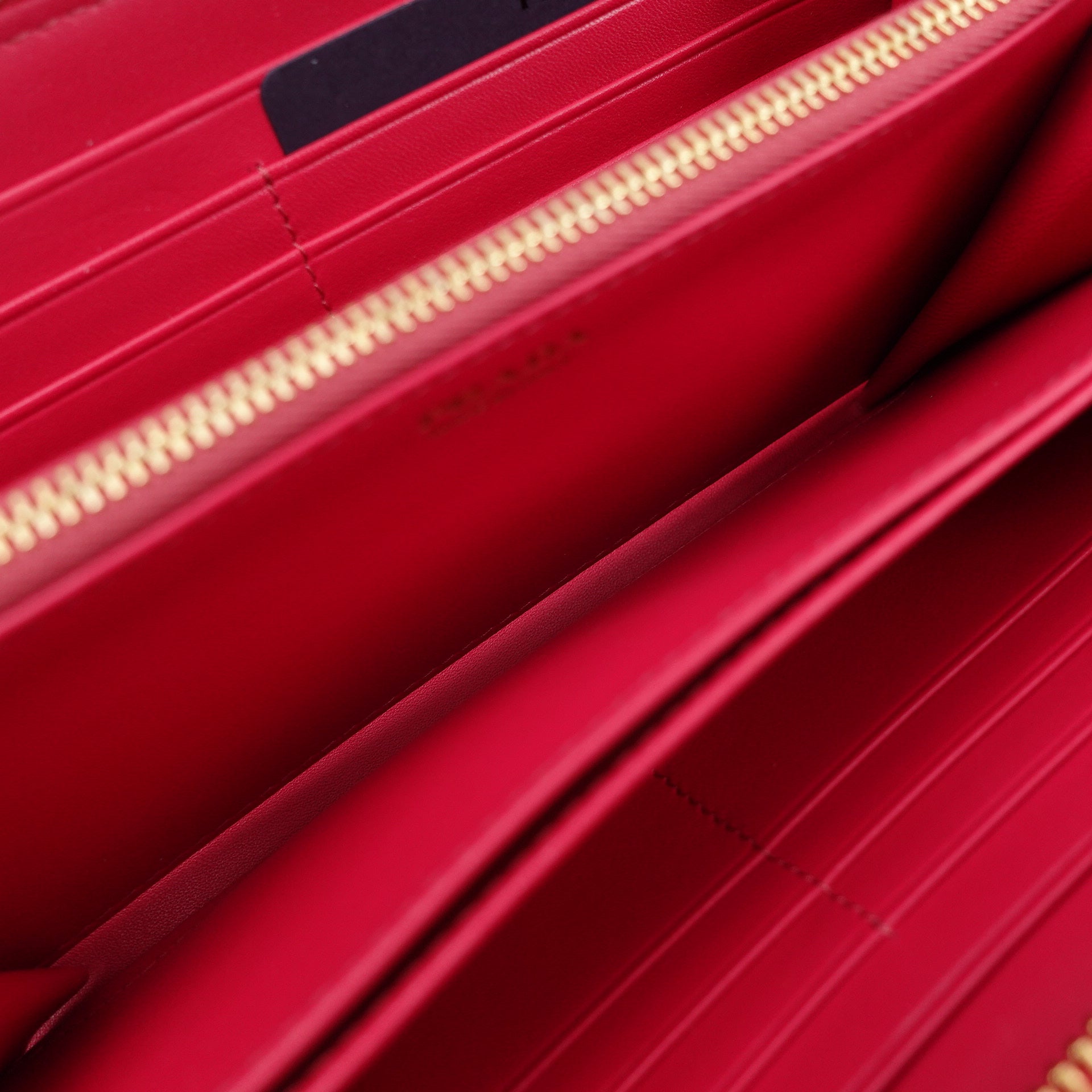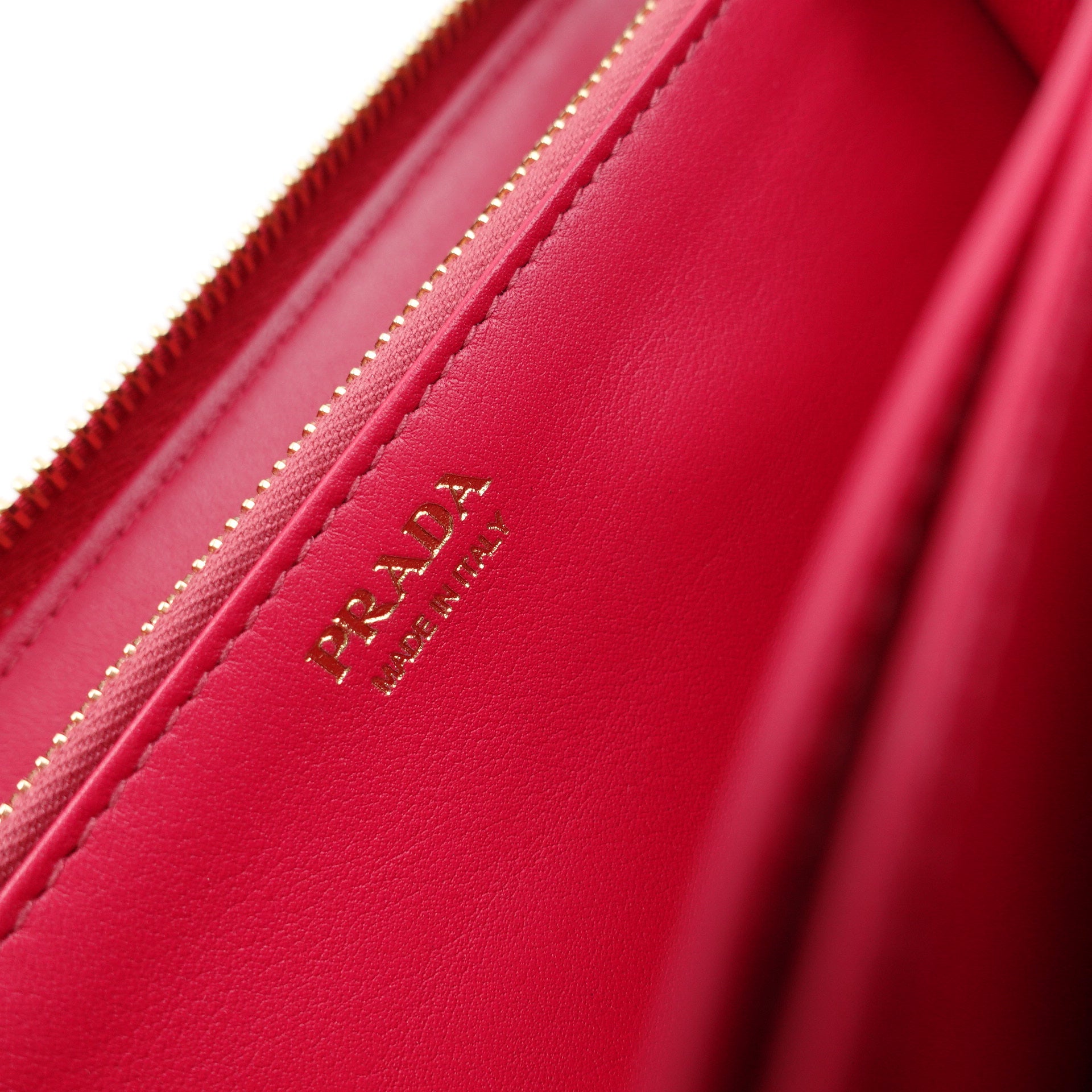 Elevate your style with the PRADA - Hot Pink Saffiano Leather Zip Around Long Wallet. This chic wallet features a vibrant hot pink hue, making it a standout accessory for any outfit.