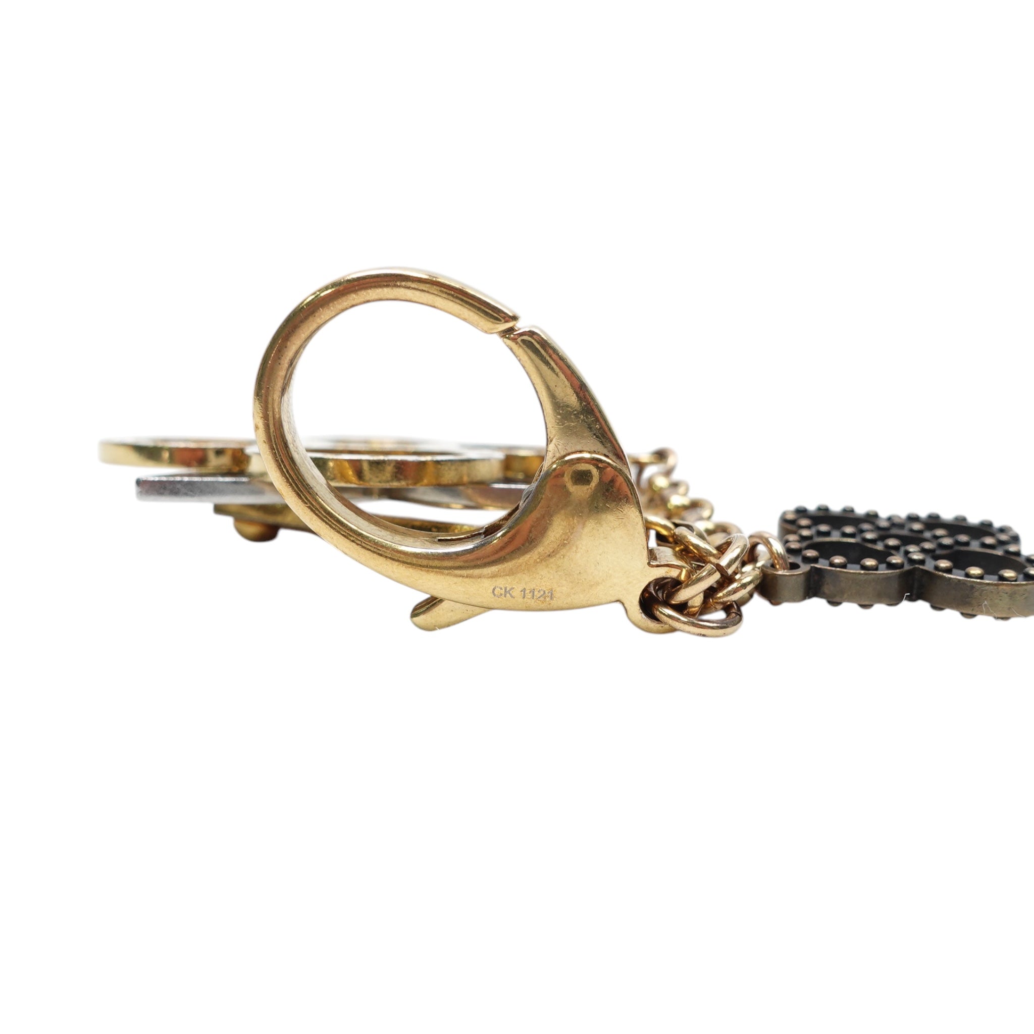 Make a statement with the Louis Vuitton Bijoux De Sac Tapage Bag Charm, a dazzling accessory that effortlessly combines luxury and style. Featuring double-toned hardware in silver and gold, this charm showcases a dynamic mix of Louis Vuitton’s signature motifs, adding a bold and elegant touch to any handbag.