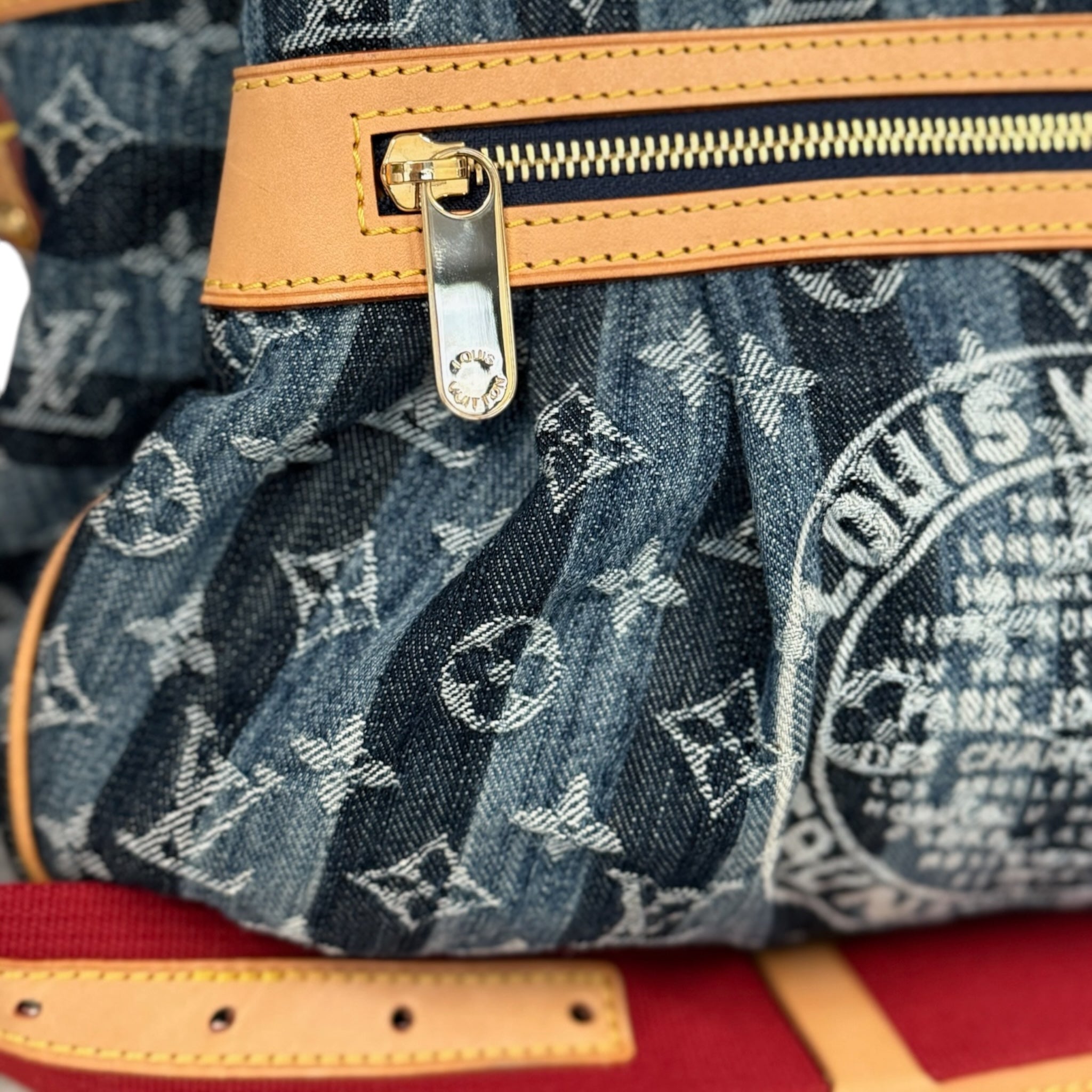 PRE-OWNED LV Blue Denim Raye Porte Epaule MM