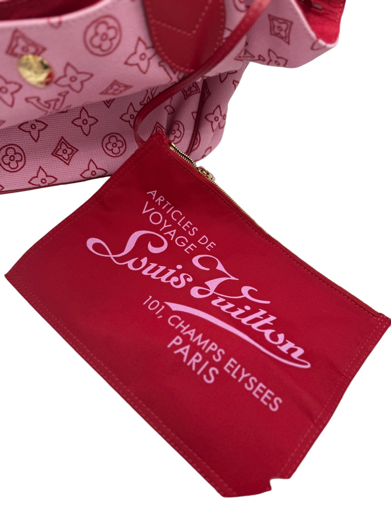 This pre-owned Louis Vuitton Cabas Ipanema PM Beach Line Rose Tote Bag is a stylish choice for your beach outings or casual days out.