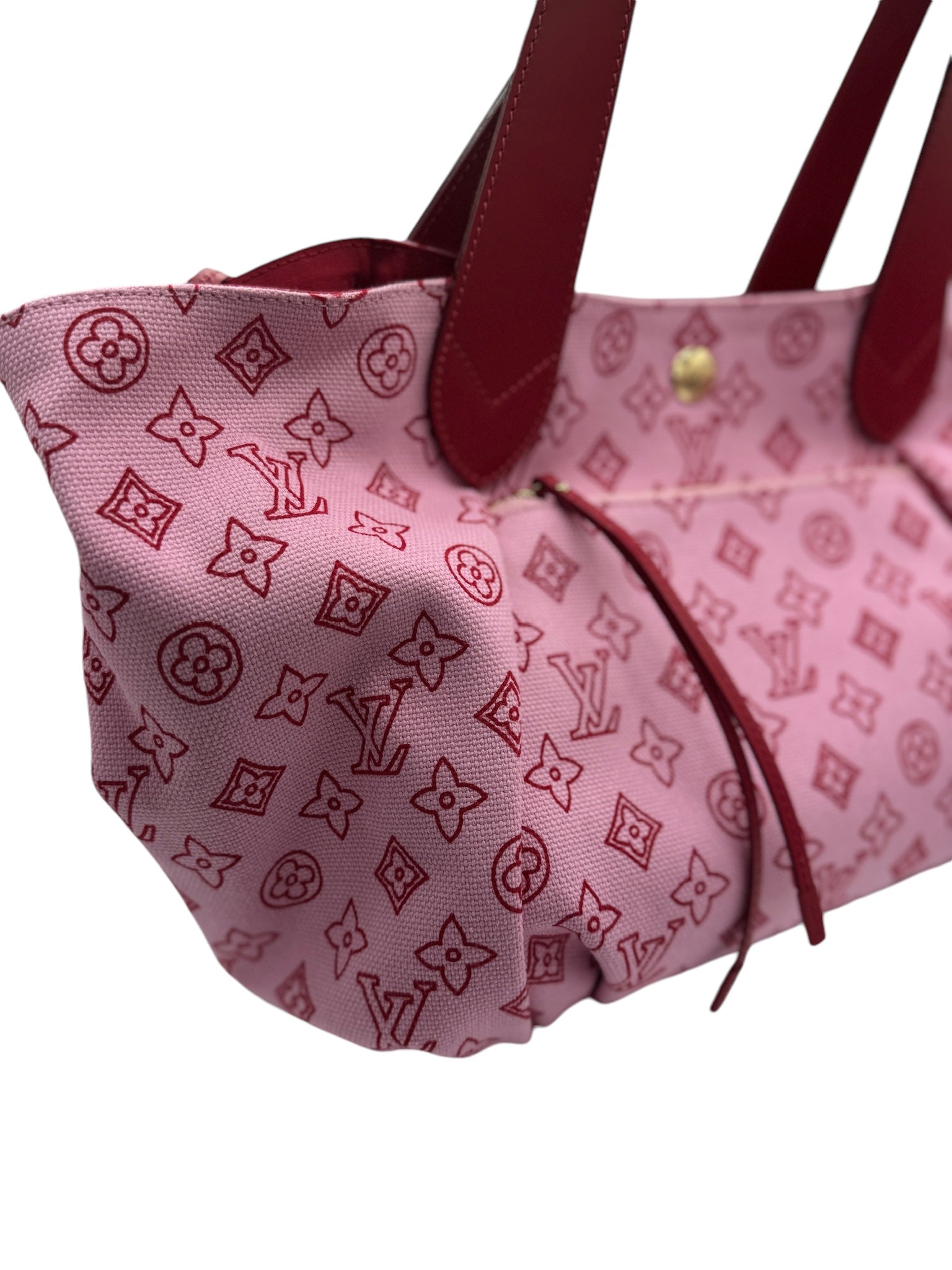 PRE-OWNED LV Cabas Ipanema PM Beach Line Rose Canvas Leather Tote Bag