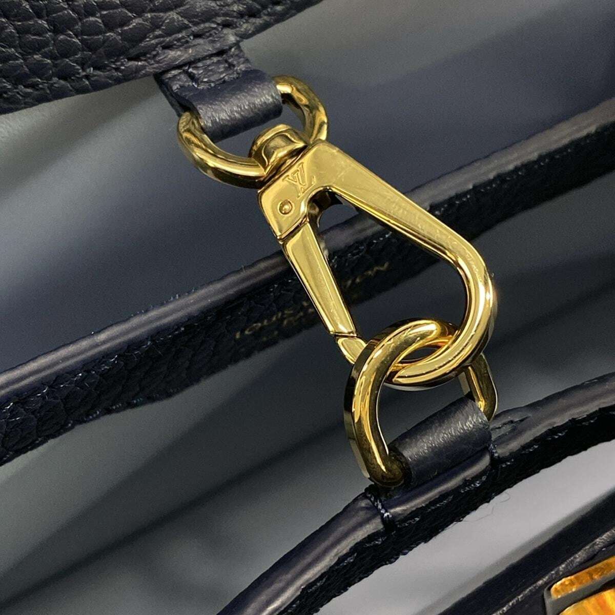 Discover the pre-owned Louis Vuitton Capucines BB Rubber Marine Denim Shoulder Bag, a stylish accessory that combines luxury with practicality.