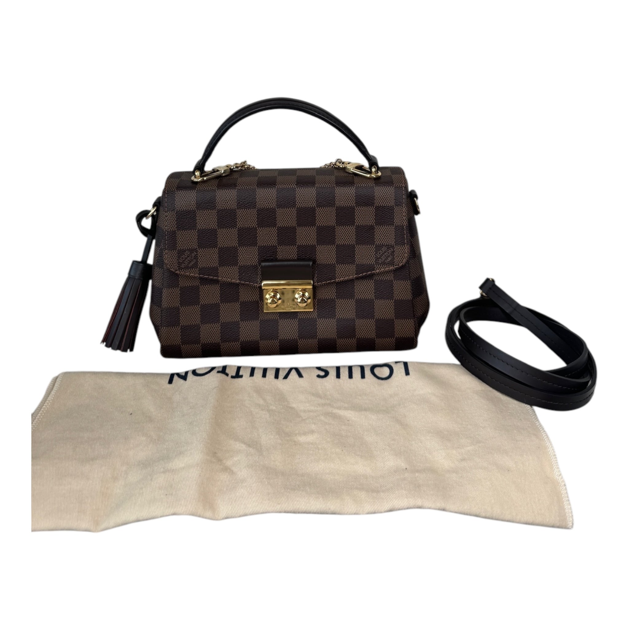 Elevate your accessory game with the Louis Vuitton Damier Ebene Canvas Croisette Shoulder Bag, a timeless piece that combines style and quality.