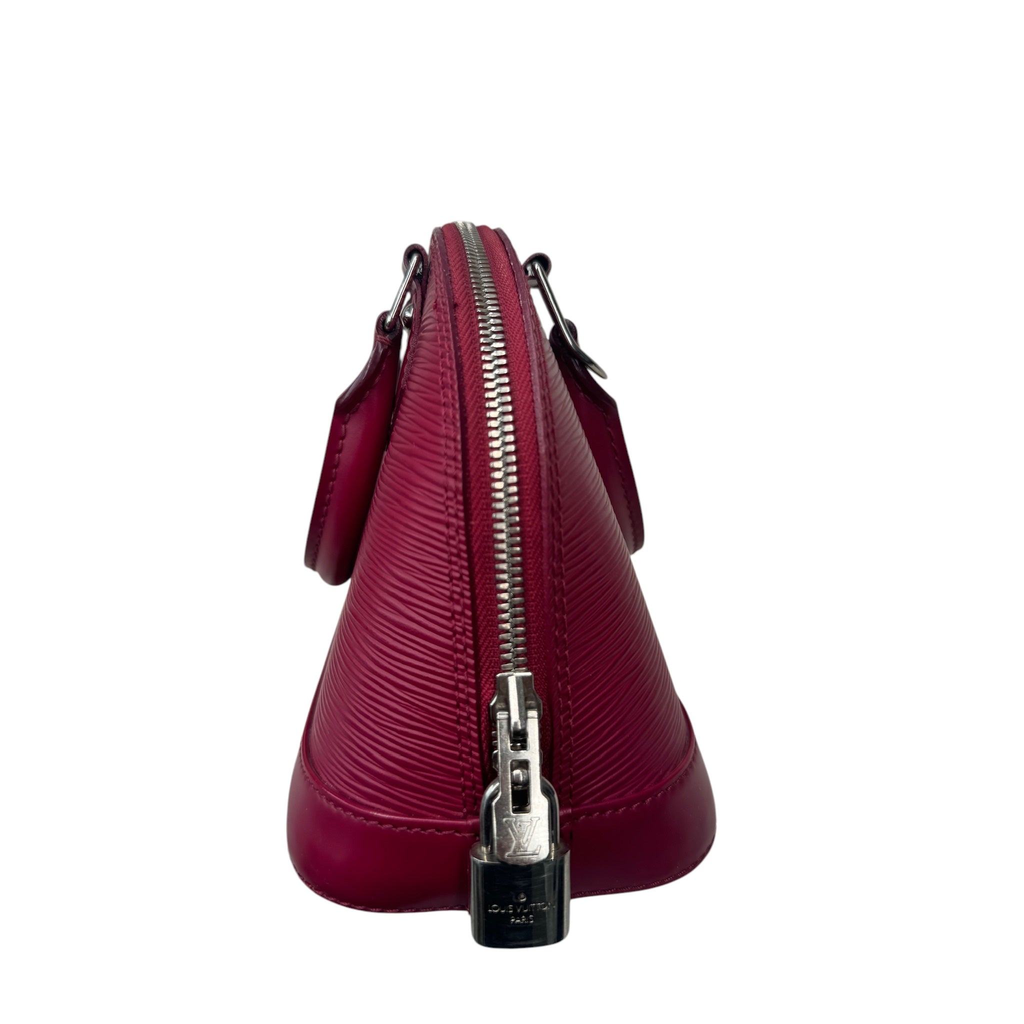 Introducing the LOUIS VUITTON Epi Alma BB Fucshia Crossbody Bag, a stylish and functional accessory designed to elevate your everyday look.