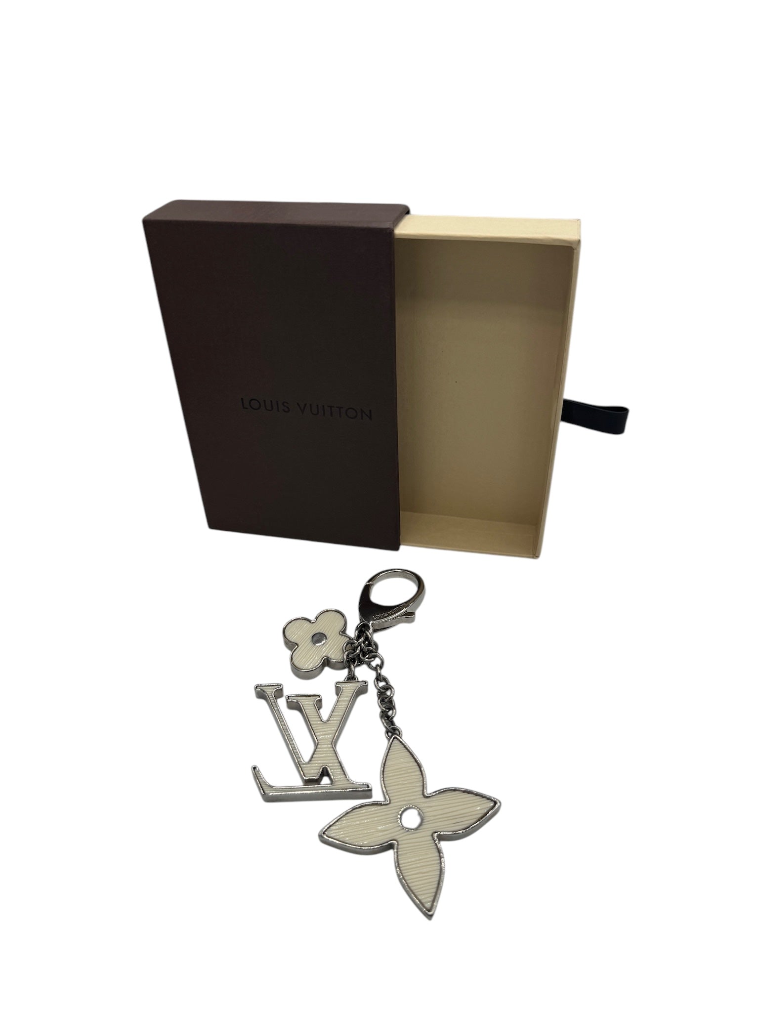 Elevate your style with this pre-owned Louis Vuitton Fleur d'Epi White Charm in very good condition. The hardware may have slight scratches, but it comes with a box for safekeeping. A luxurious addition to any outfit.