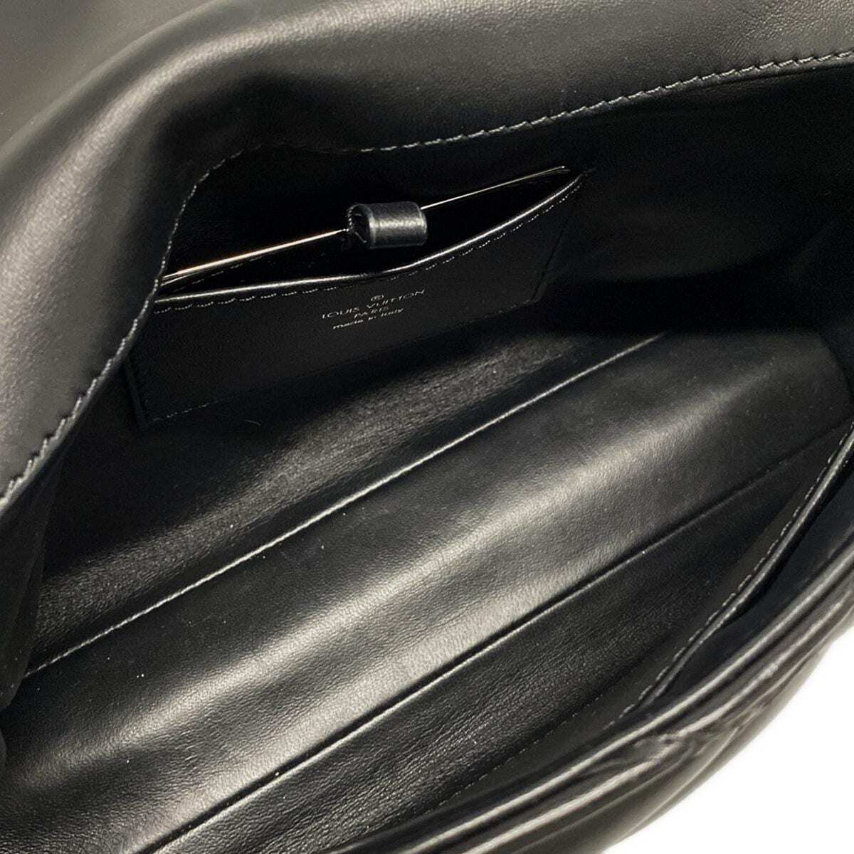 This pre-owned Louis Vuitton shoulder bag in black embossed lambskin offers a chic and timeless style for any occasion.