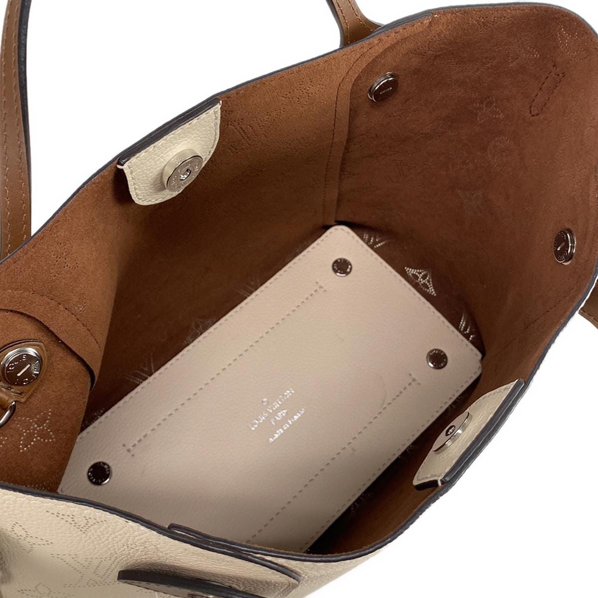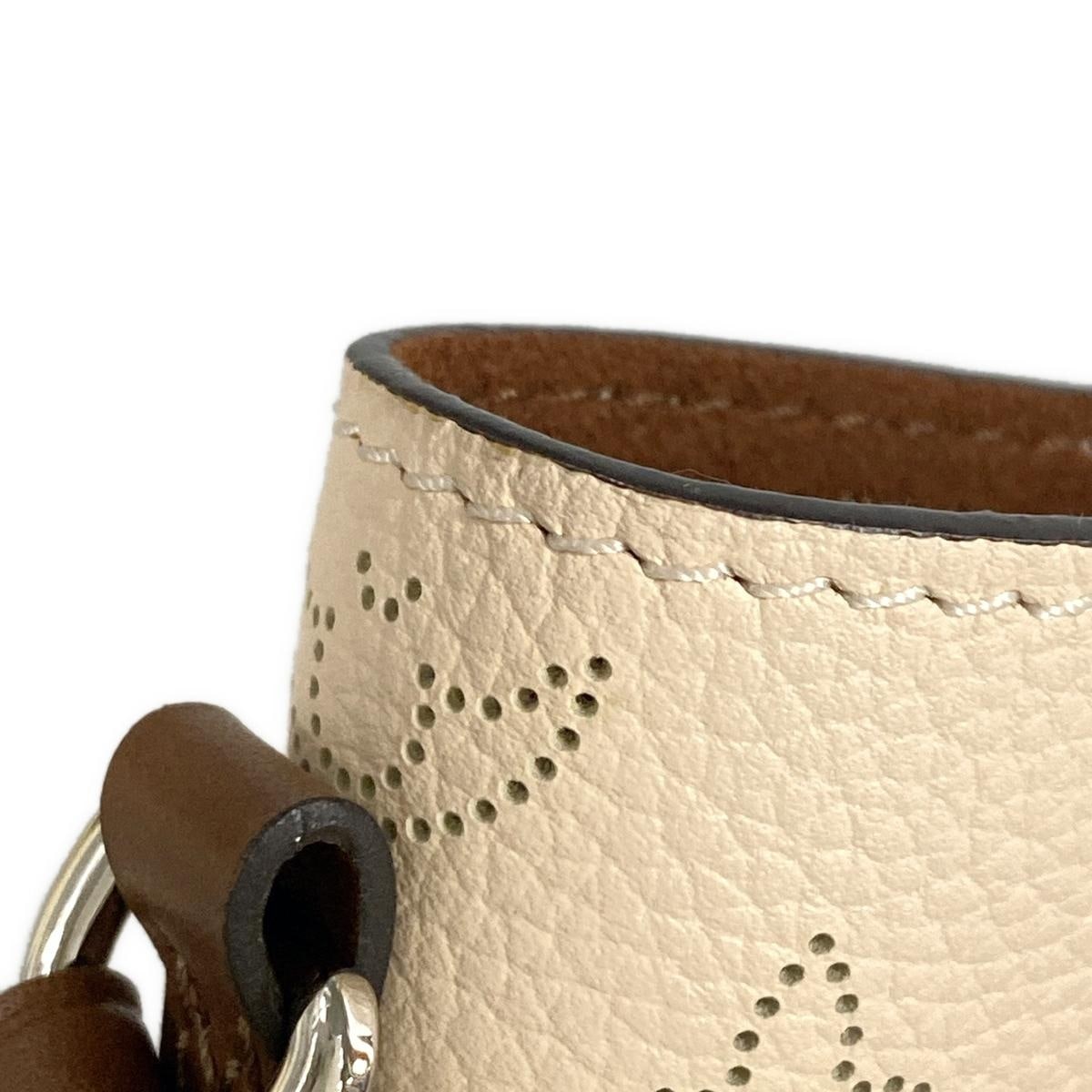 This pre-owned Louis Vuitton Mahina PM Creme Tote Bag in beige/cream color is crafted from luxurious Mahina Calf Leather, offering a sophisticated and timeless look.