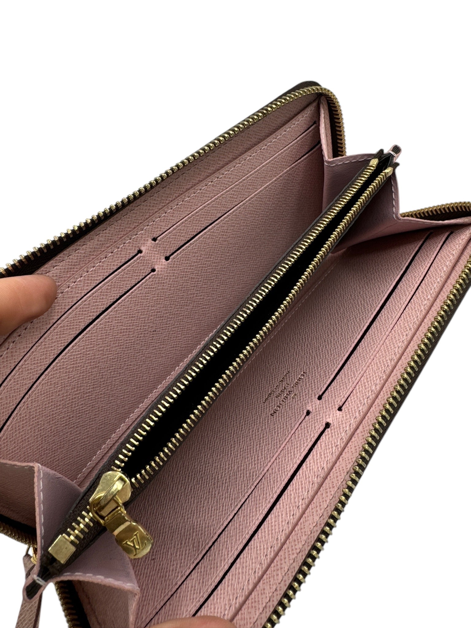 Dive into luxury with this timeless wallet that exudes sophistication and style. This wallet features a spacious interior to hold your essentials, with slight dirt marks inside adding character to the piece. The hardware shows slight peeling, but overall, it remains in great shape for its next owner to enjoy. This pre-owned Louis Vuitton Clemence Wallet comes with its original box and dust bag, making it an ideal choice for those who appreciate luxury accessories that stand the test of time.