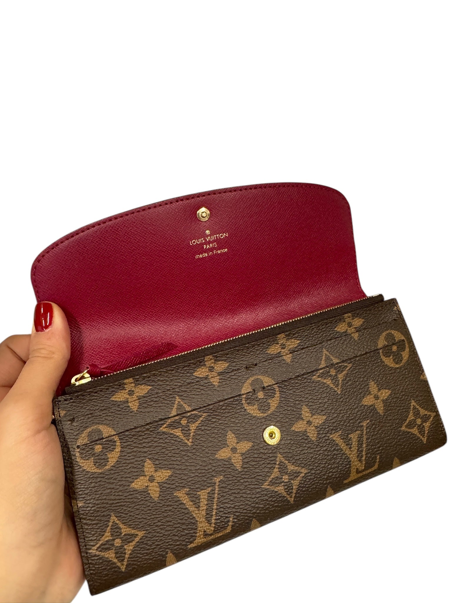 Indulge in luxury with this pre-owned Louis Vuitton Monogram Canvas Emilie Wallet! In excellent condition, it boasts small hardware scratches. Carry your essentials in style and make a statement with this timeless piece. Hurry, limited stock available!