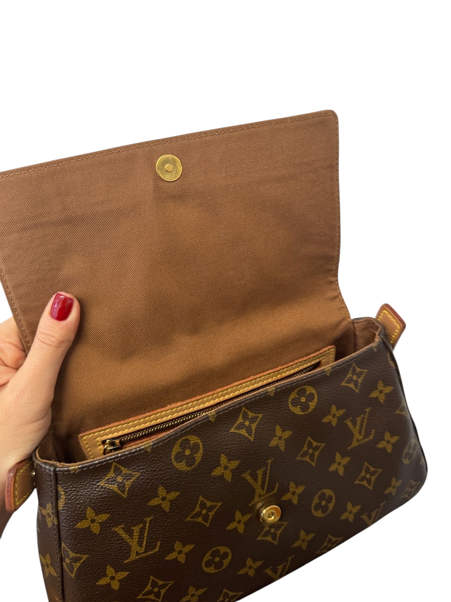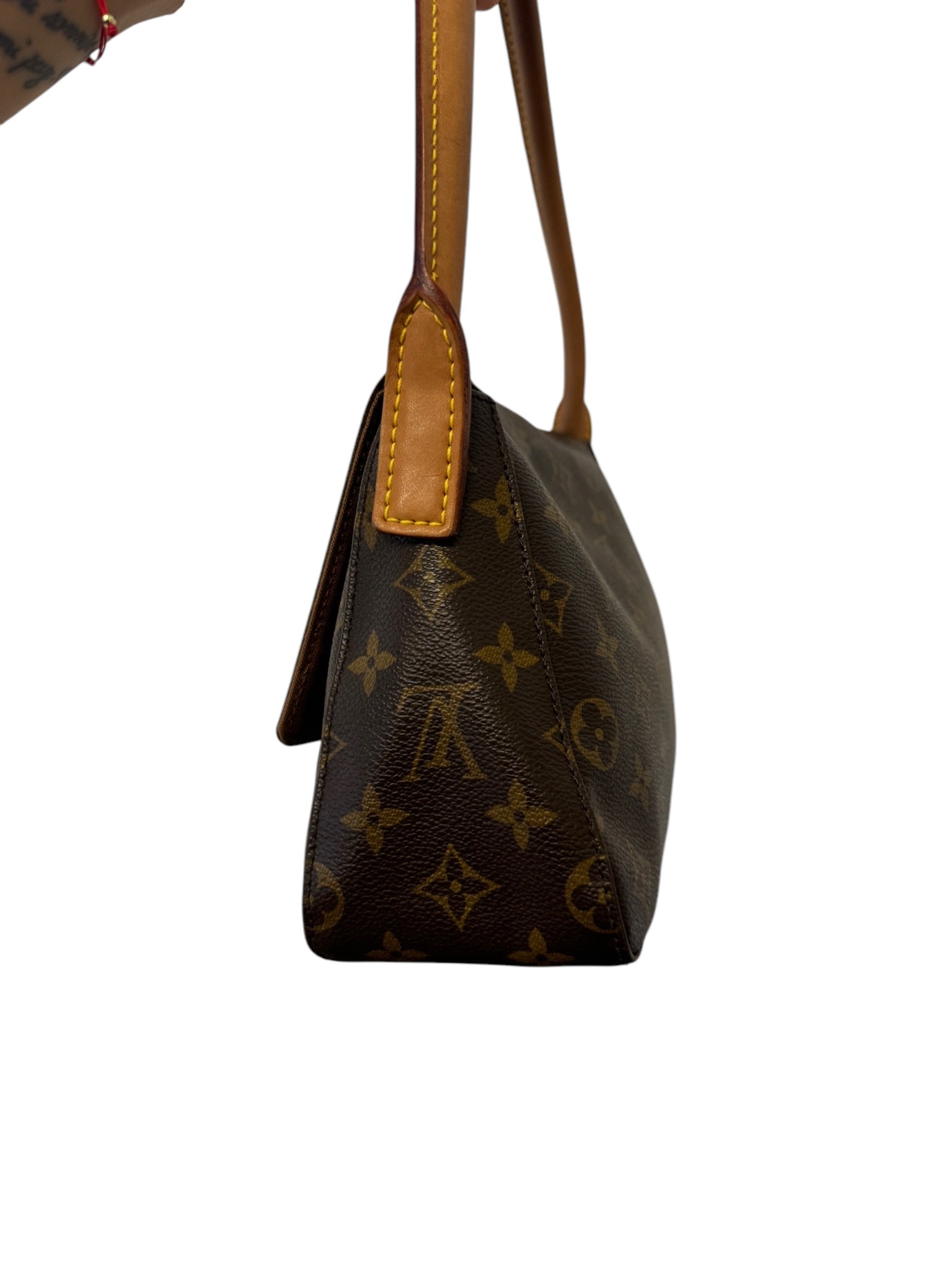 Upgrade your style with our PRE-OWNED LV Monogram Canvas Looping PM bag, featuring elegant golden toned hardware. Add a touch of luxury to any outfit, while enjoying the durability and timeless design of genuine Louis Vuitton products. Elevate your fashion game with this stunning accessory.