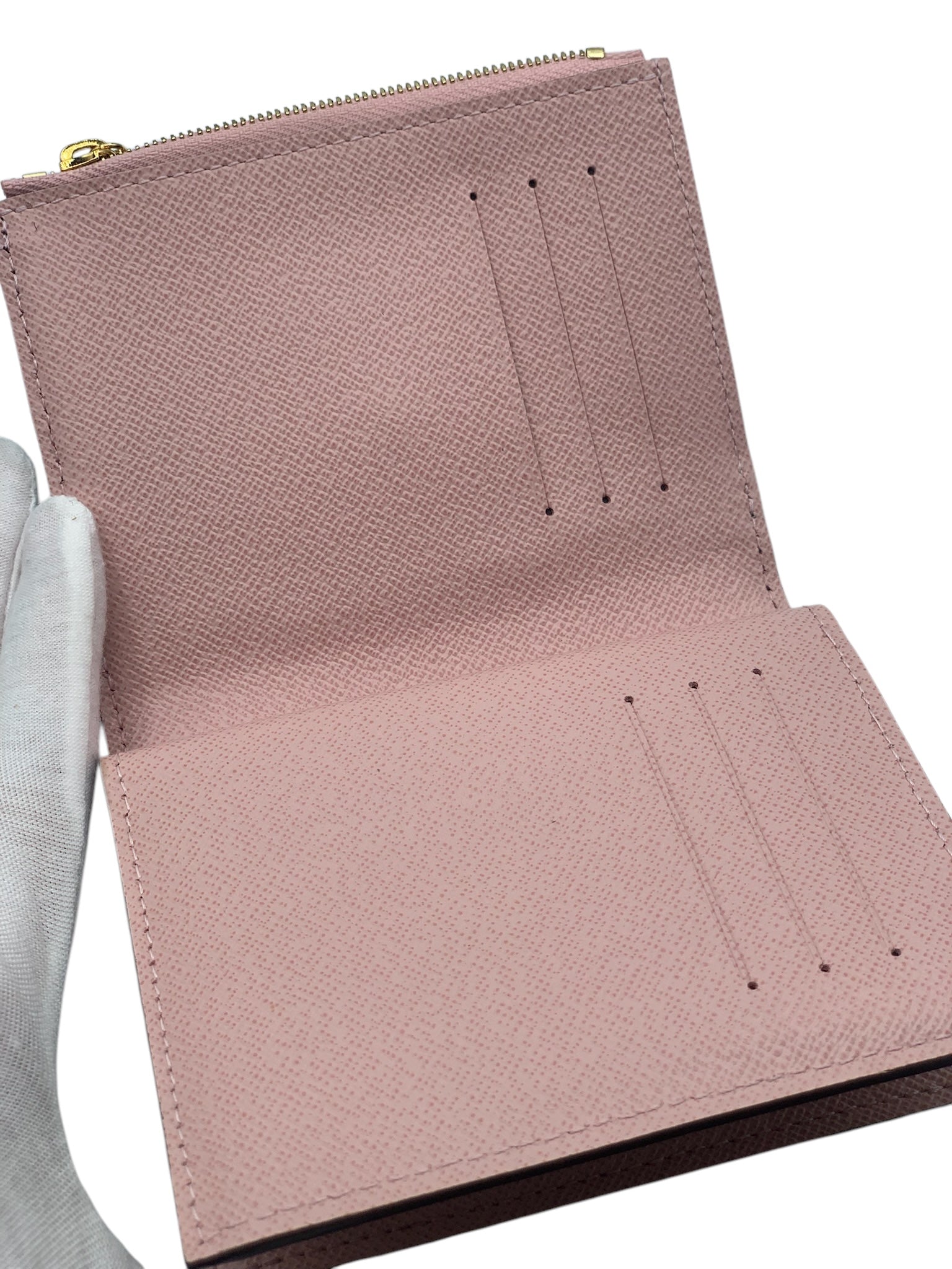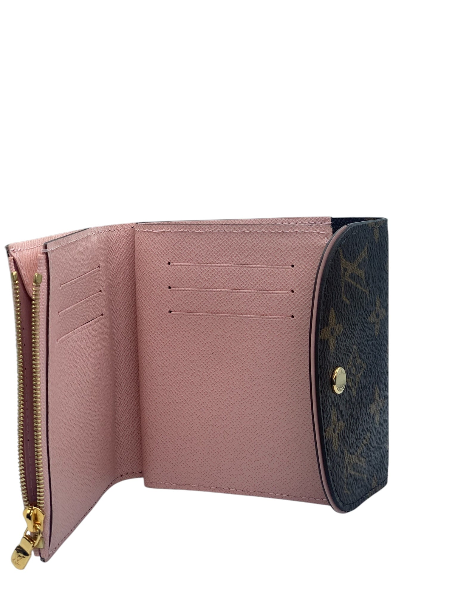 Discover the elegance of the LOUIS VUITTON Monogram Canvas Pink Ballerine Portefeuille Brown Wallet, a chic accessory that complements any outfit.
