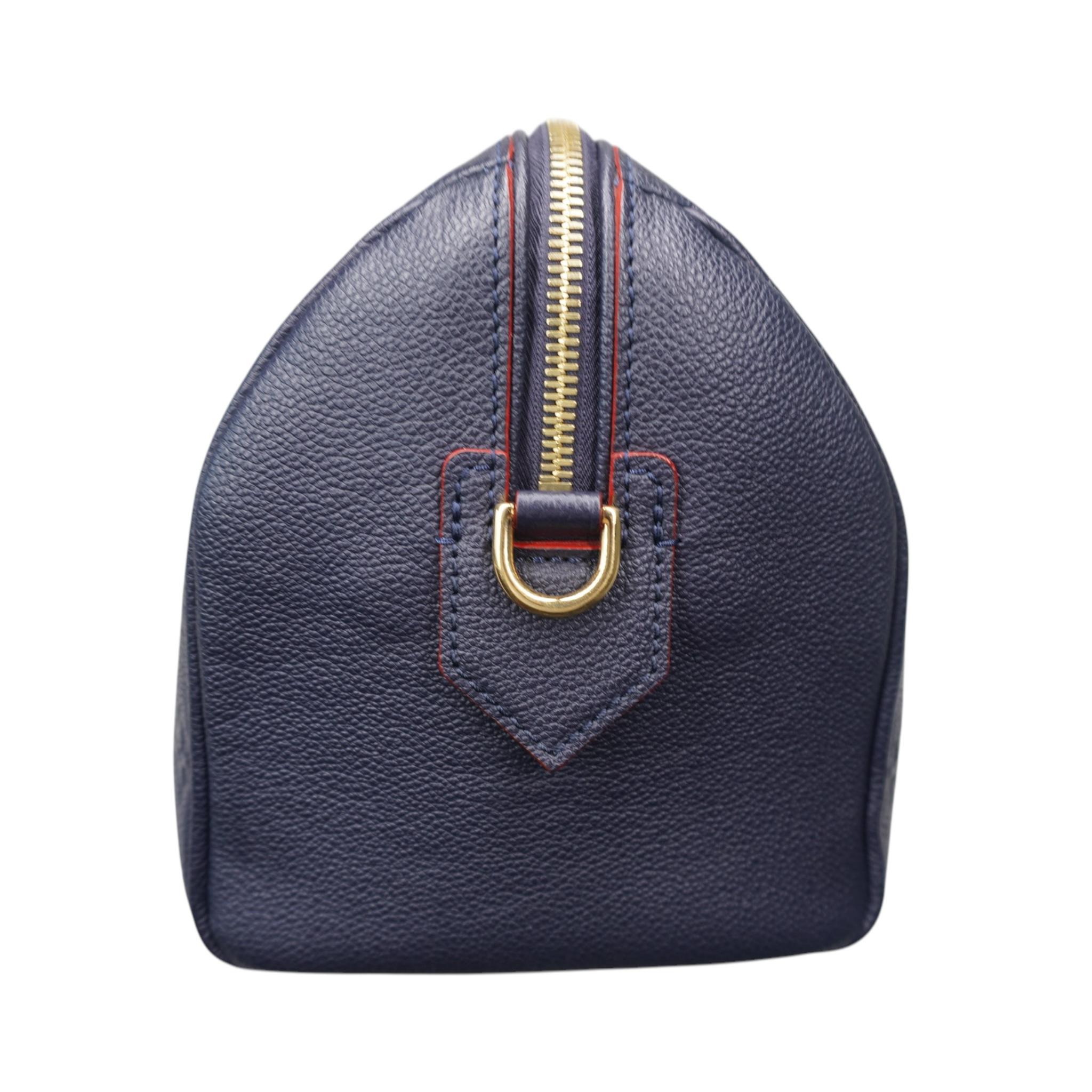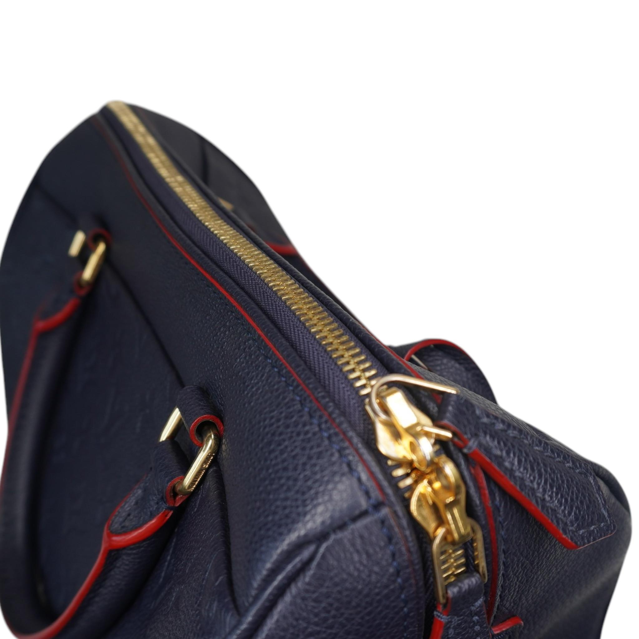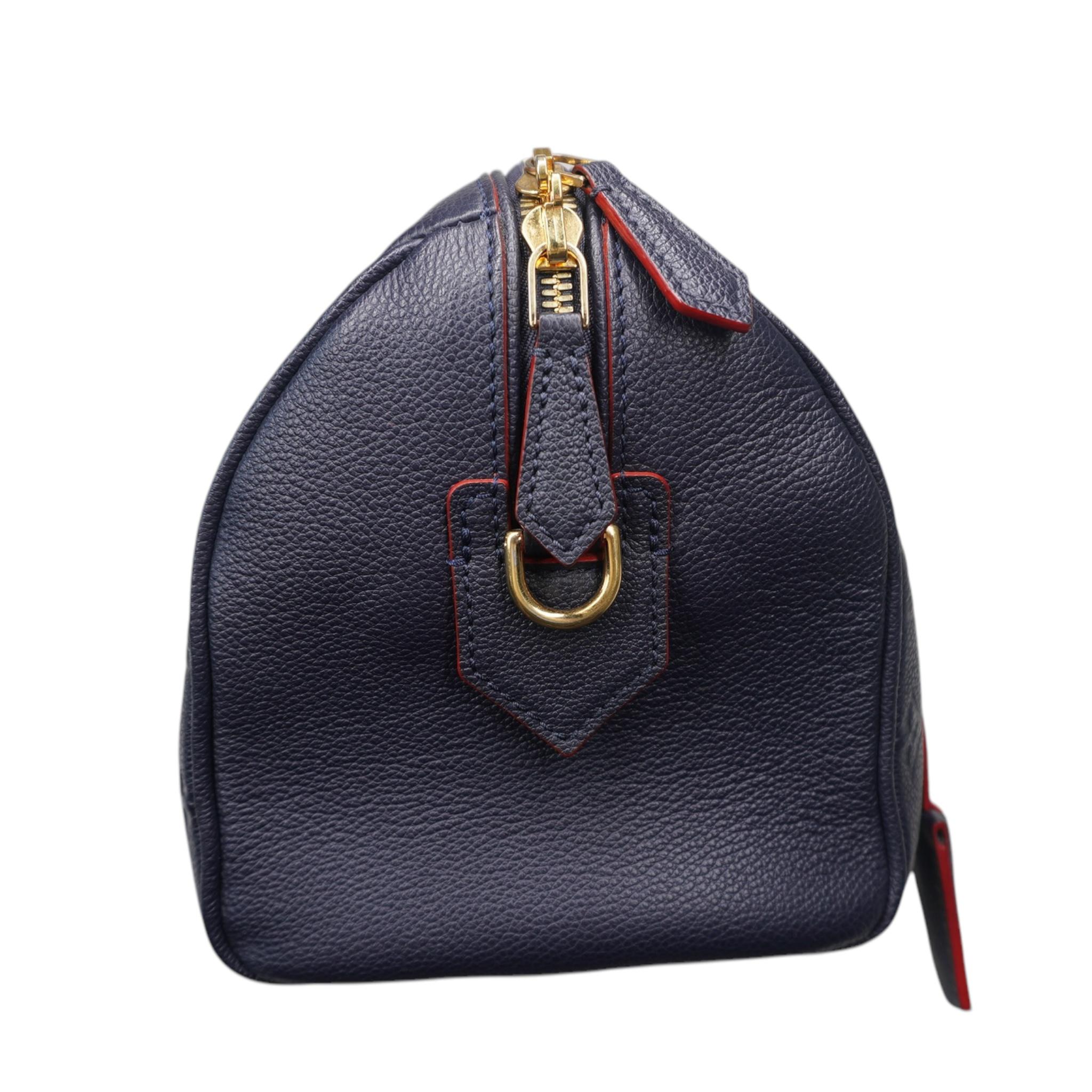 Indulge in luxury with our PRE-OWNED LV Monogram Empreinte Infini Speedy Bandouliere 25 Shoulder Bag. Crafted with dark blue and red monogram canvas, this bag exudes sophistication. Perfect as a shoulder bag, it's the ideal accessory for any occasion. Elevate your style and make a statement with this stunning piece.