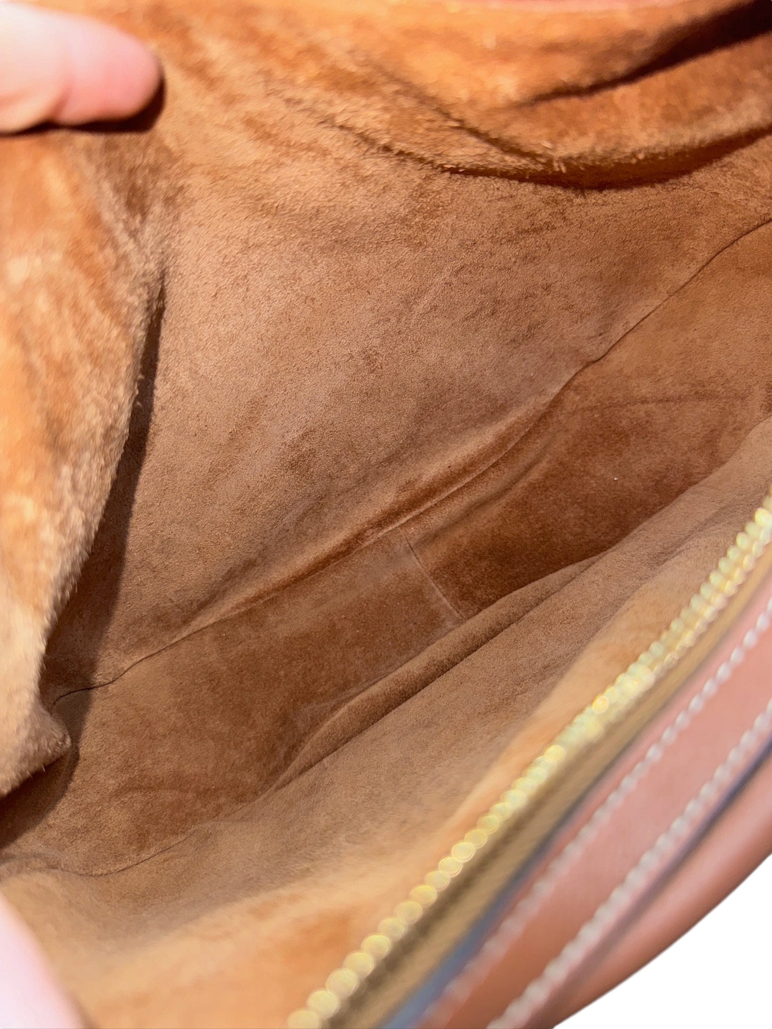 The bag features a classic shoulder bag silhouette, making it versatile and easy to carry. The exterior may show slight signs of wear with small dirt marks and slightly rubbed corners, while the interior has small scratches, signs of fluffing, and dirt marks.