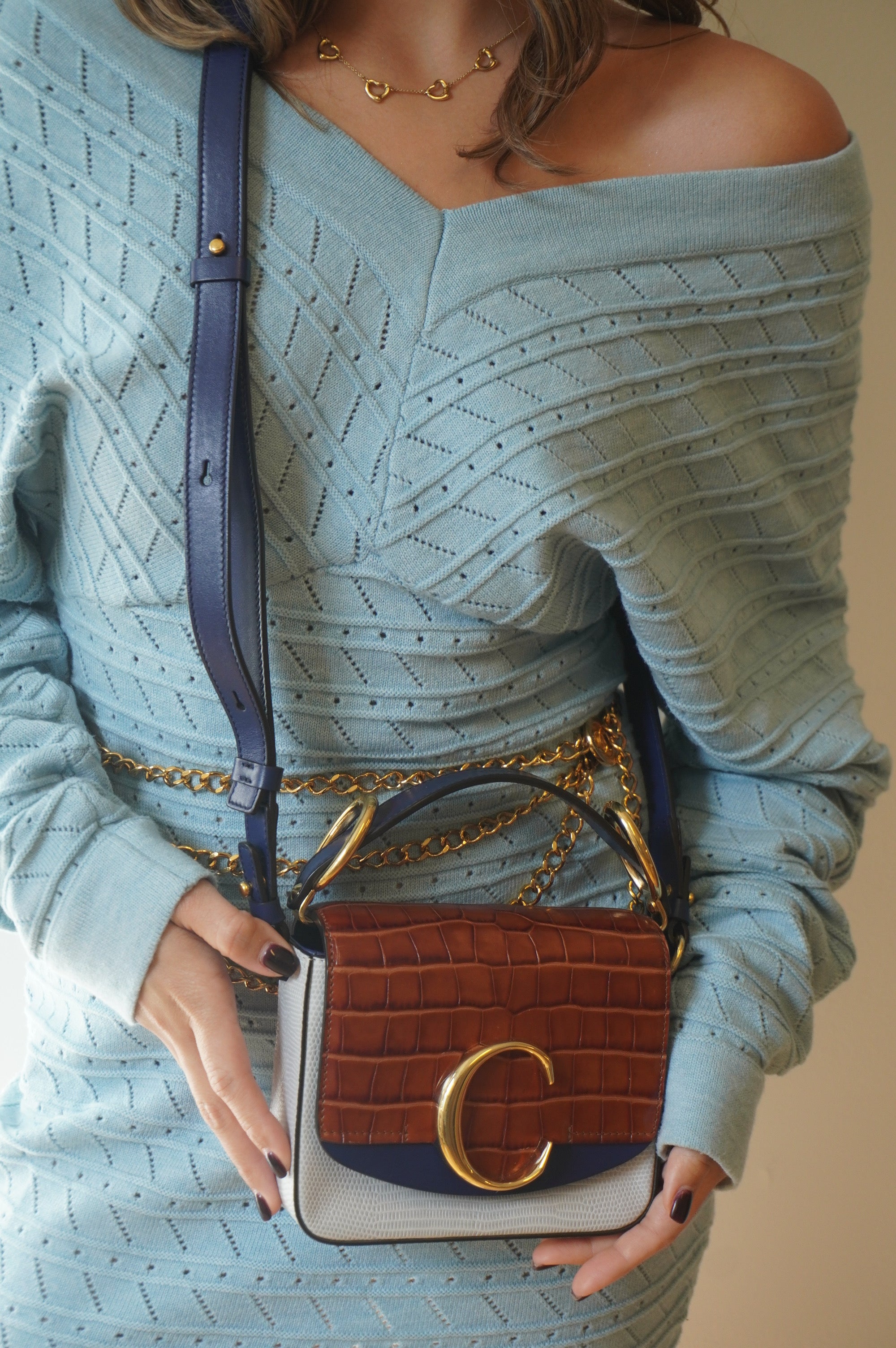 CHLOE - Mini C Double Carry Calfskin Crocodile Lizard Embossed Shoulder Bag