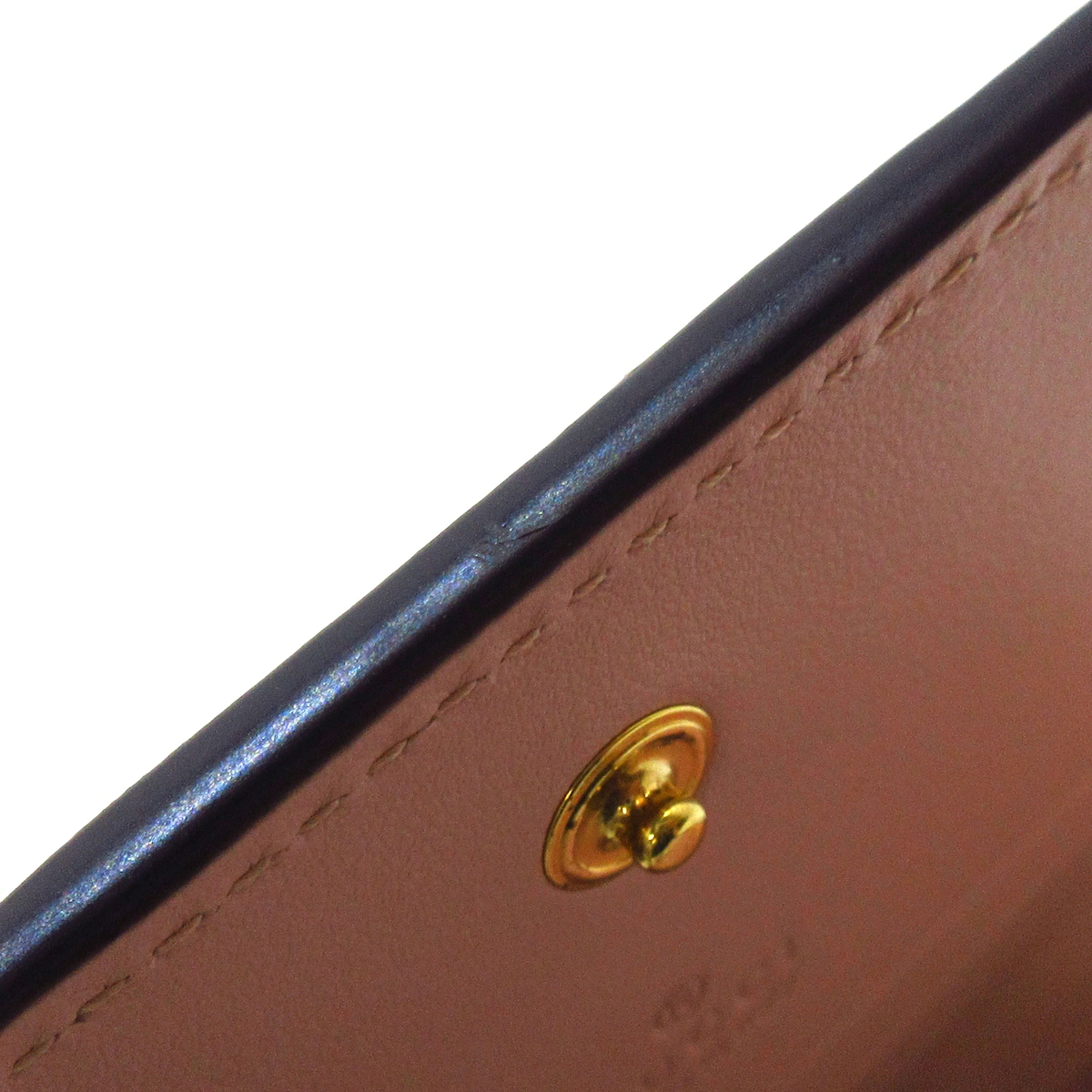 The exterior of the wallet shows some signs of wear on the corners and light scratches, while the interior has small dirt marks in the main opening and scratches on the outside coin pocket. This GUCCI card case wallet is authenticated by Entrupy, ensuring its quality and authenticity.